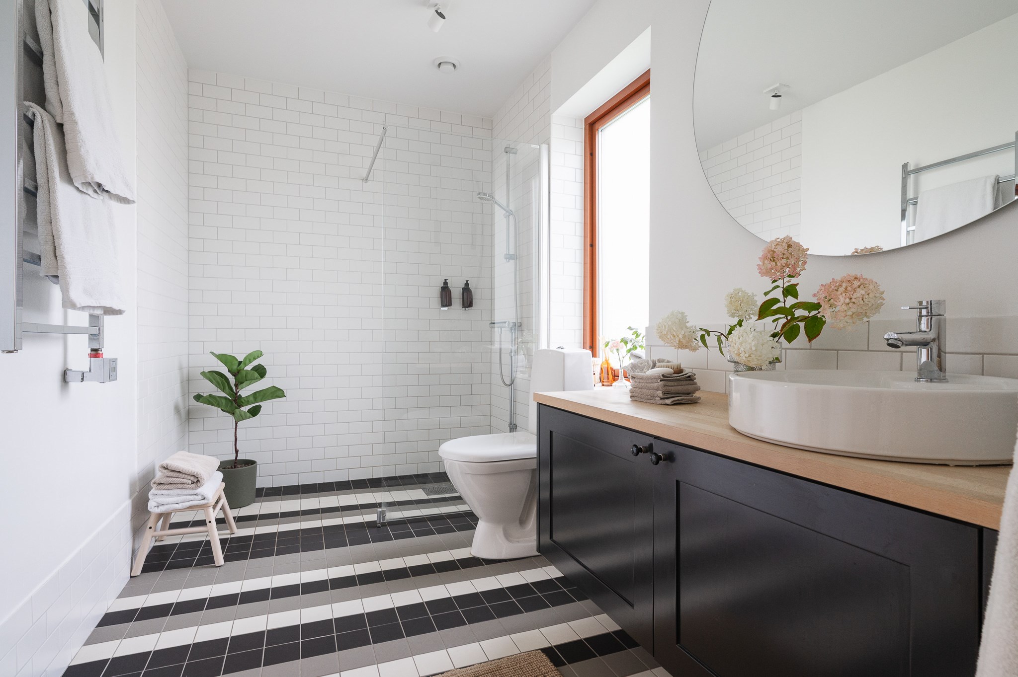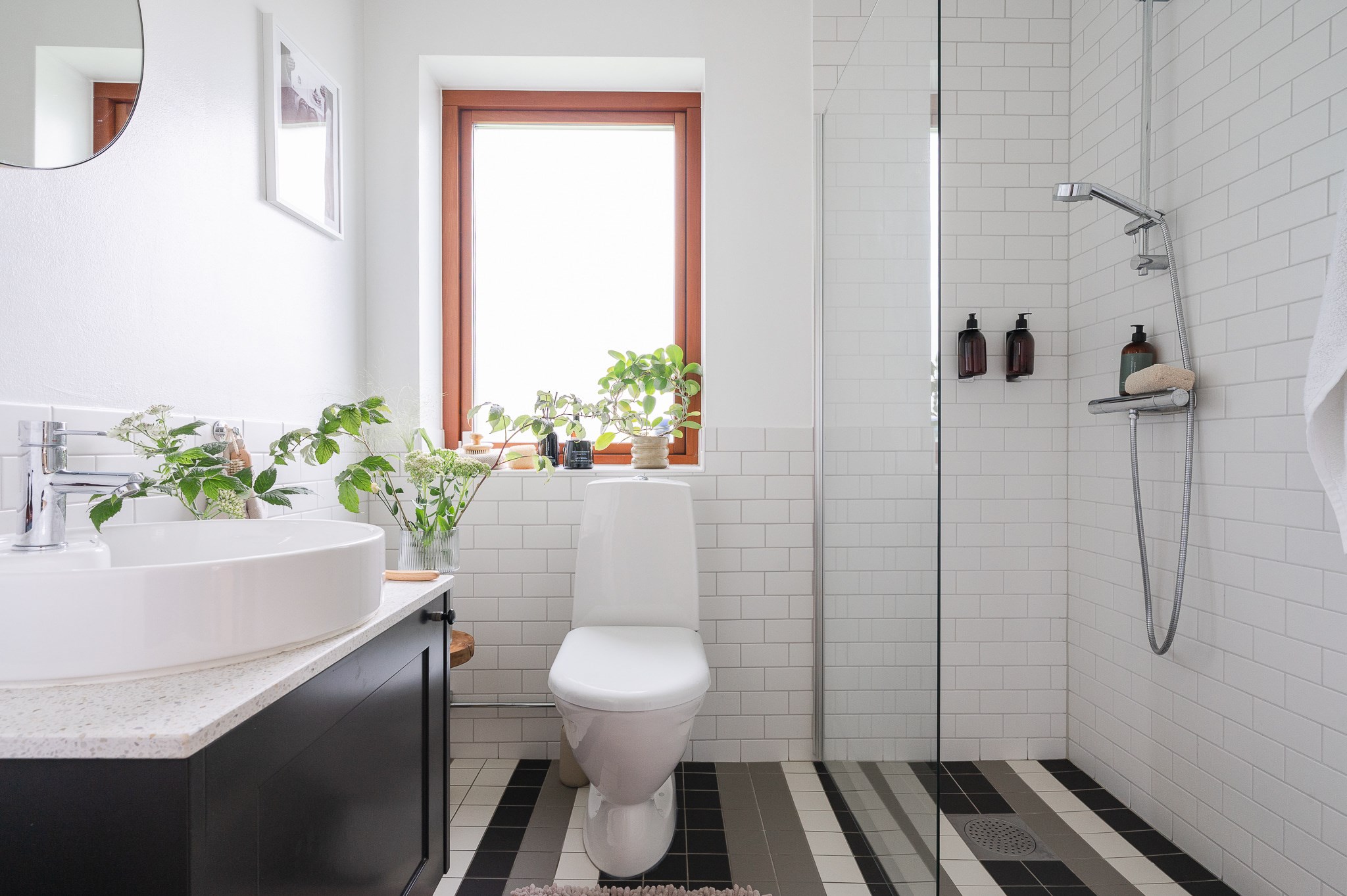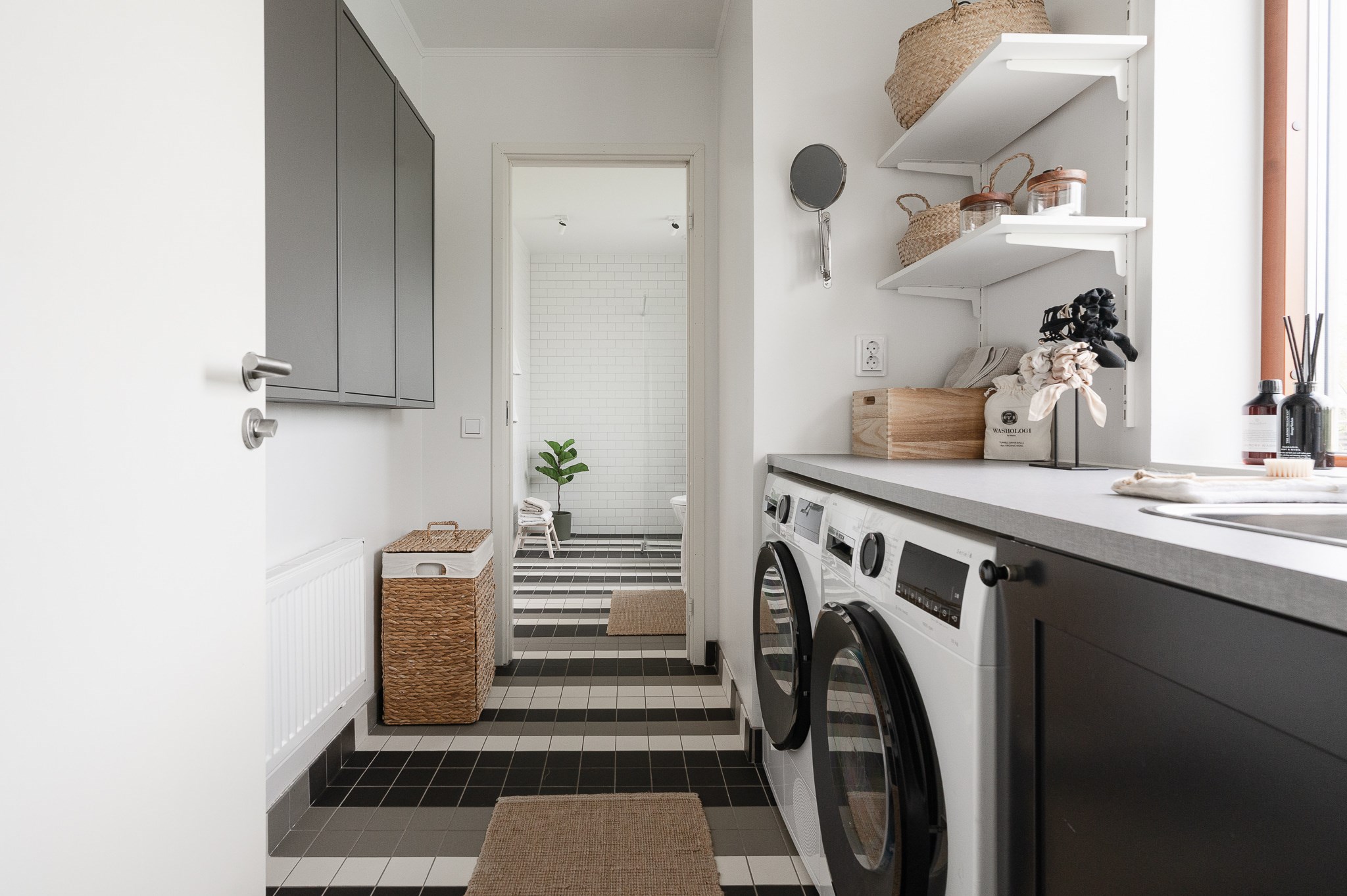 Här finns även ett stilrent badrum samt en separat tvättstuga, praktiskt placerad för vardagens behov.Utemiljö