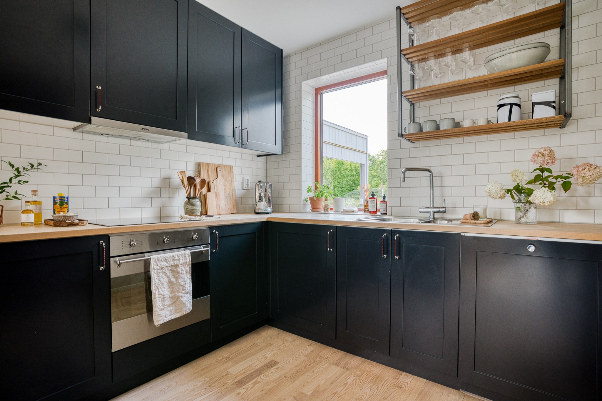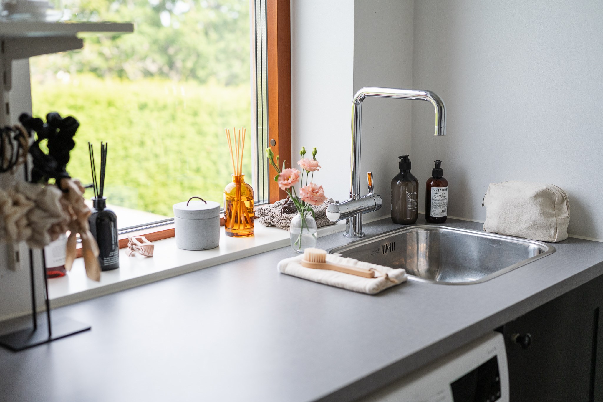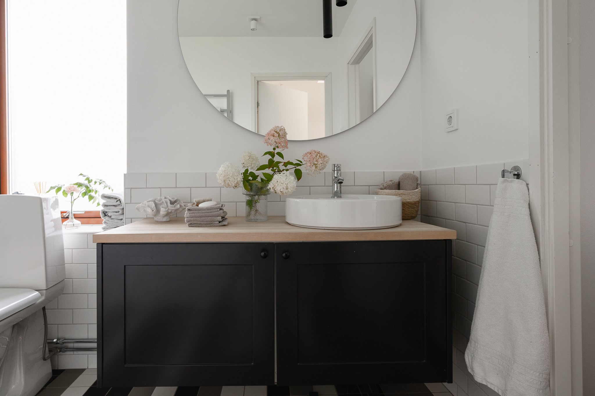 Här finns även ett stilrent badrum samt en separat tvättstuga, praktiskt placerad för vardagens behov.Utemiljö