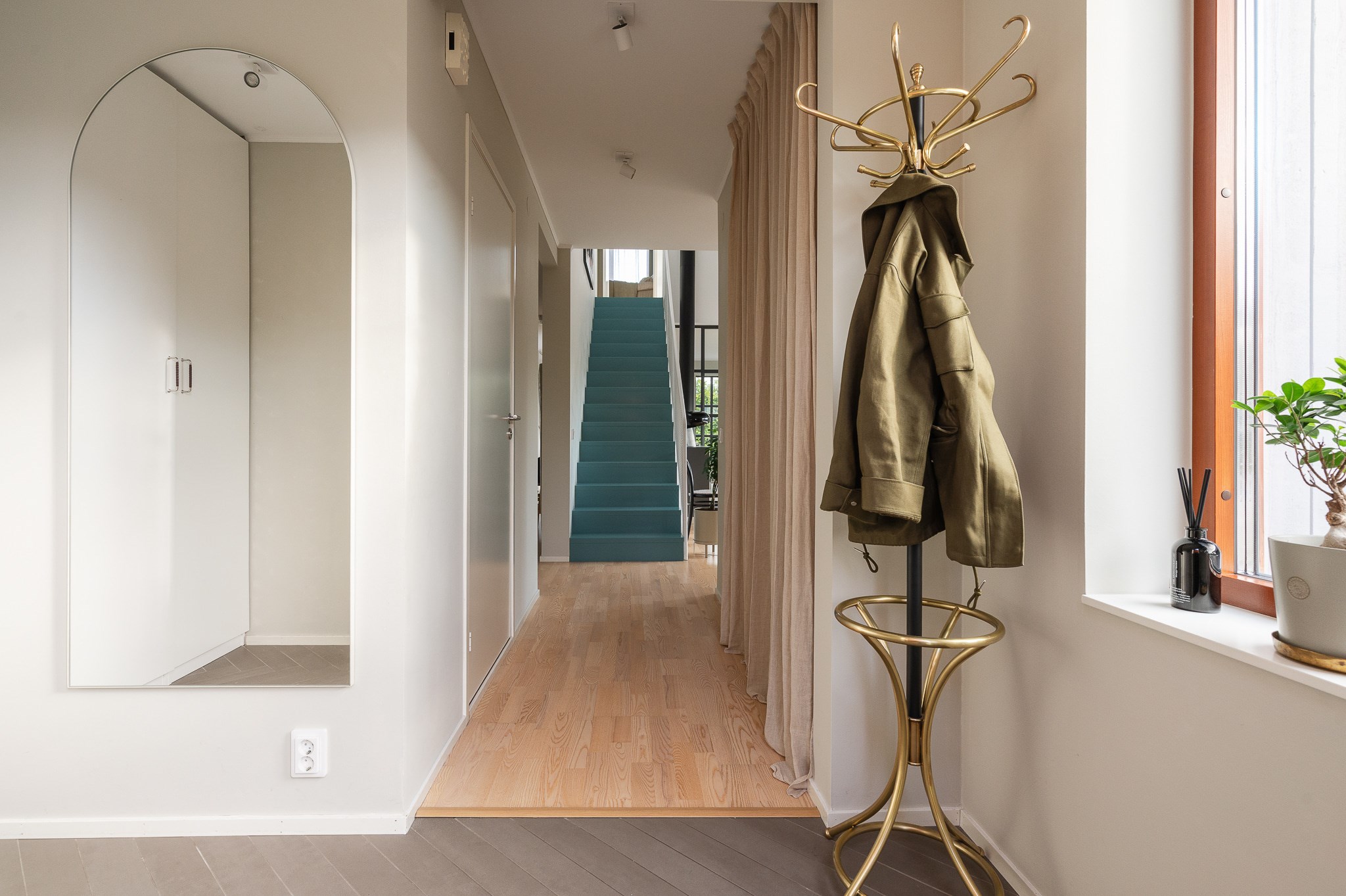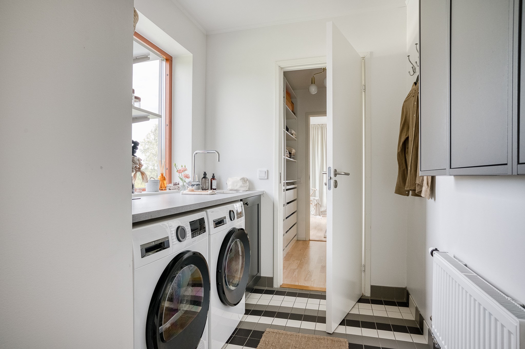 Redan i entrén möts du av ett stilrent och välkomnande intryck med goda förvaringsmöjligheter och ett naturligt flöde vidare in i bostaden.
