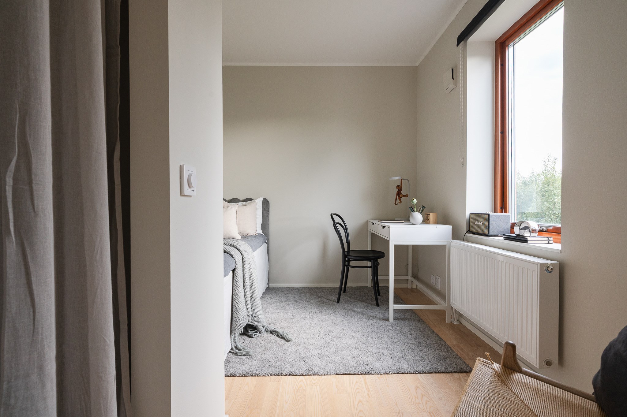 På entréplanet finns även ett badrum samt praktiska förvaringsutrymmen och möjlighet till arbetsplats eller hemmakontor.Övre plan