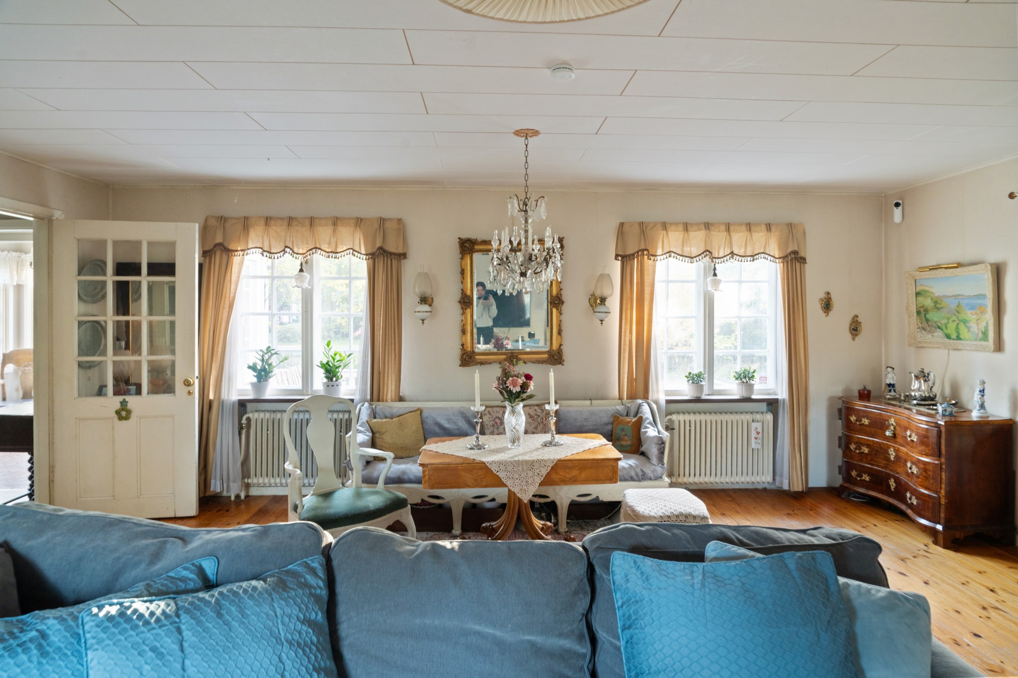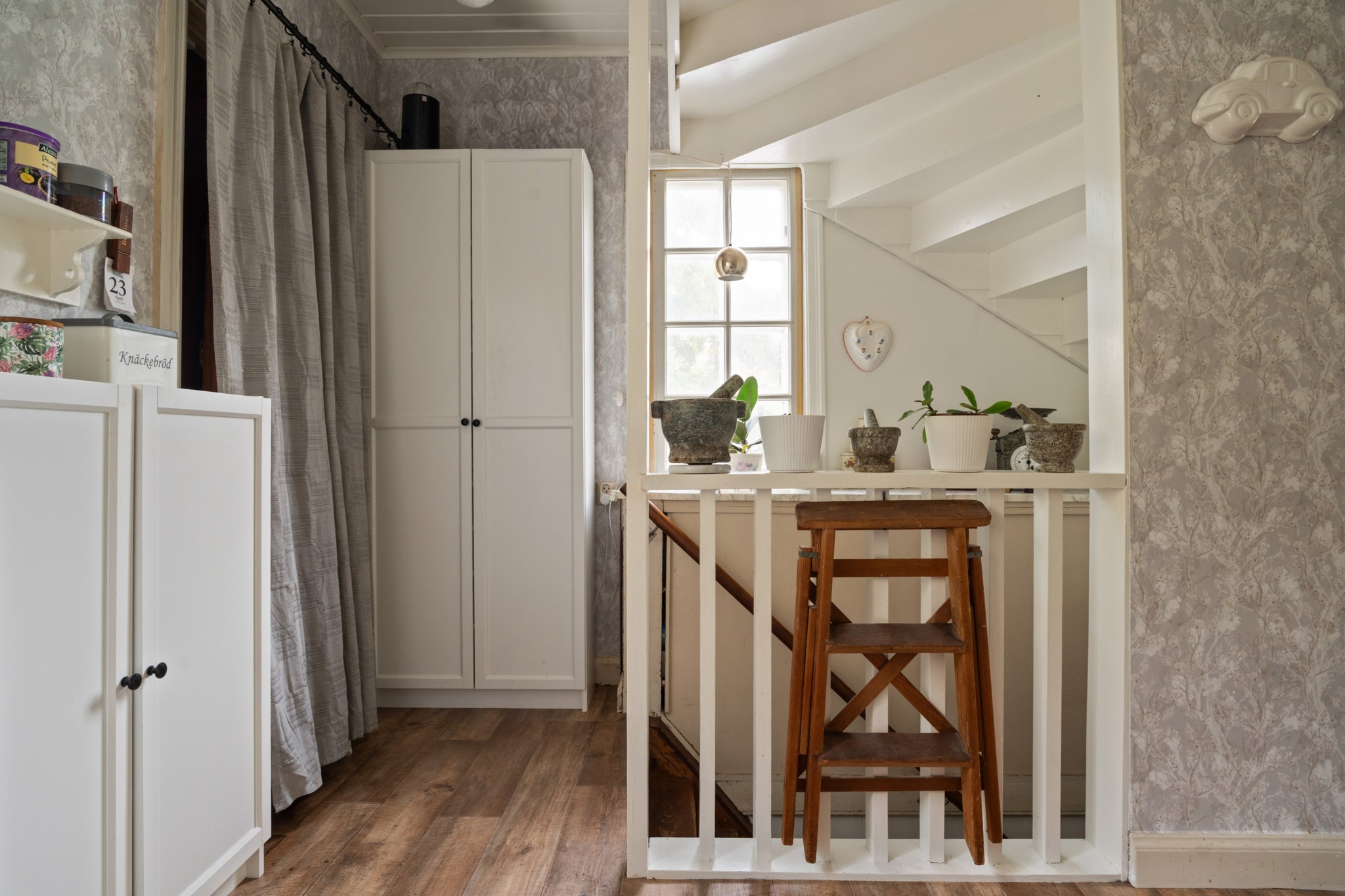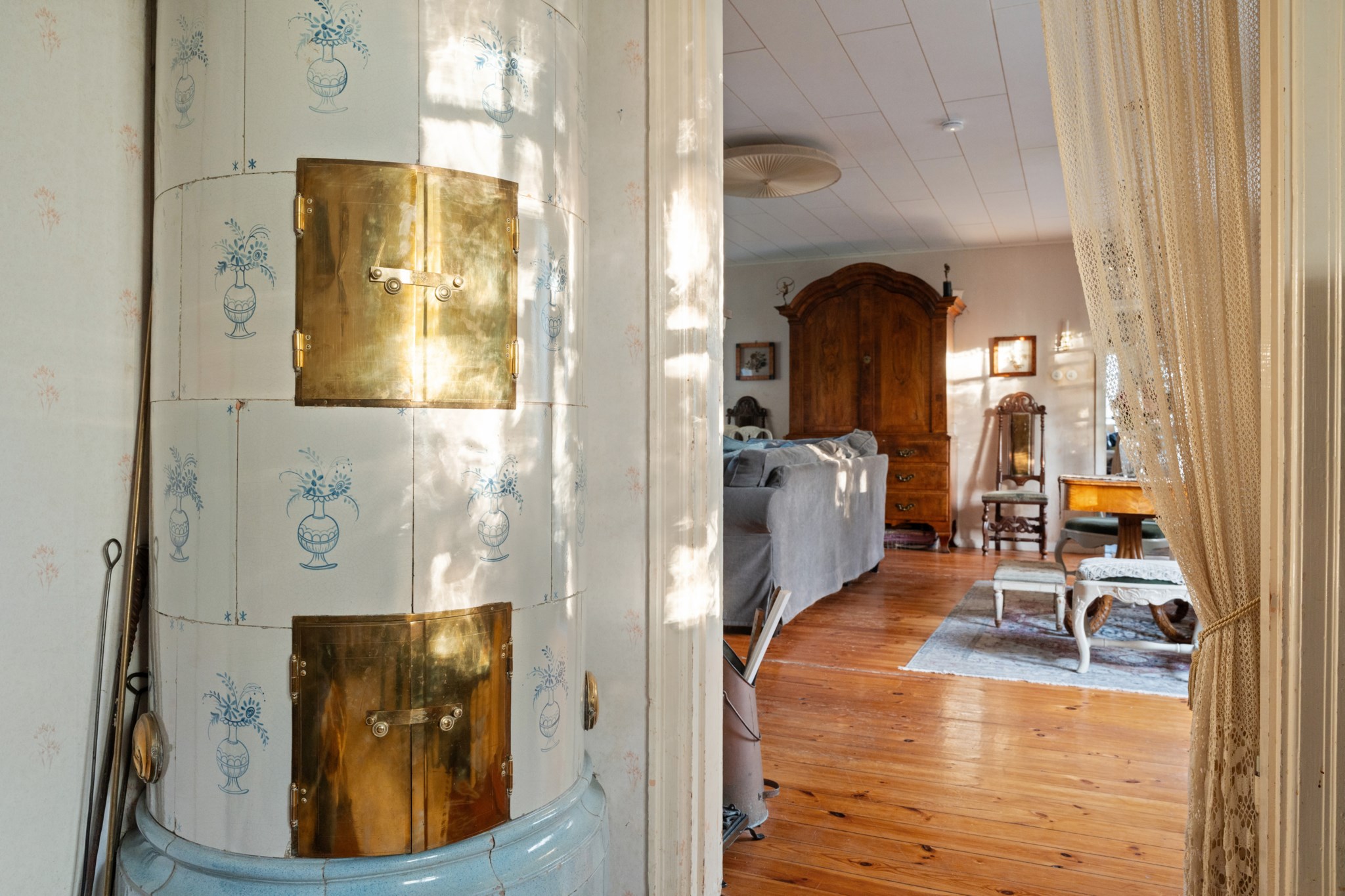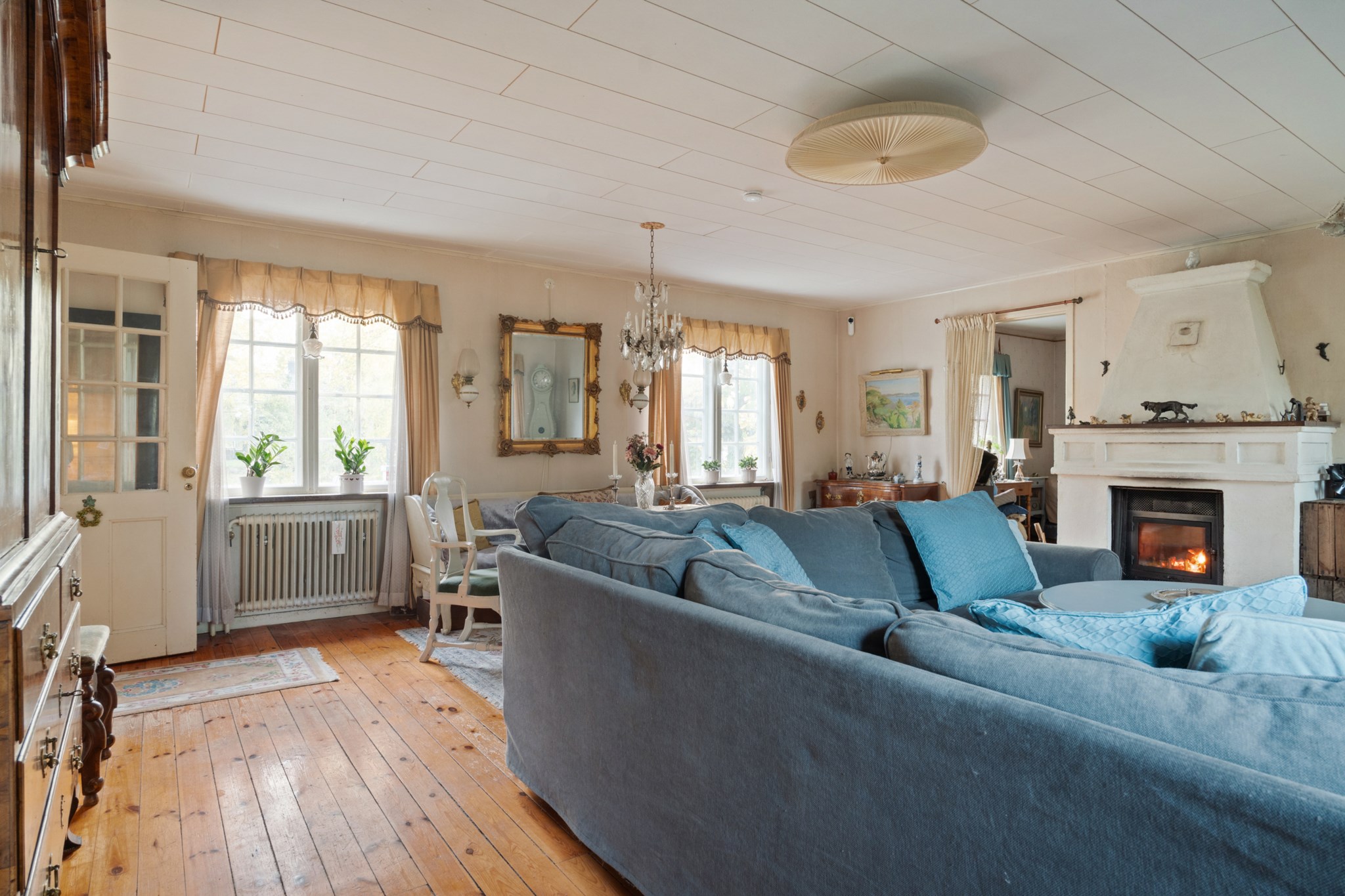 Huset präglas av charmiga detaljer såsom gamla spegeldörrar, kakelugn och öppenspis som tillsammans skapar en unik och tidstypisk känsla.ÖVERVÅNING