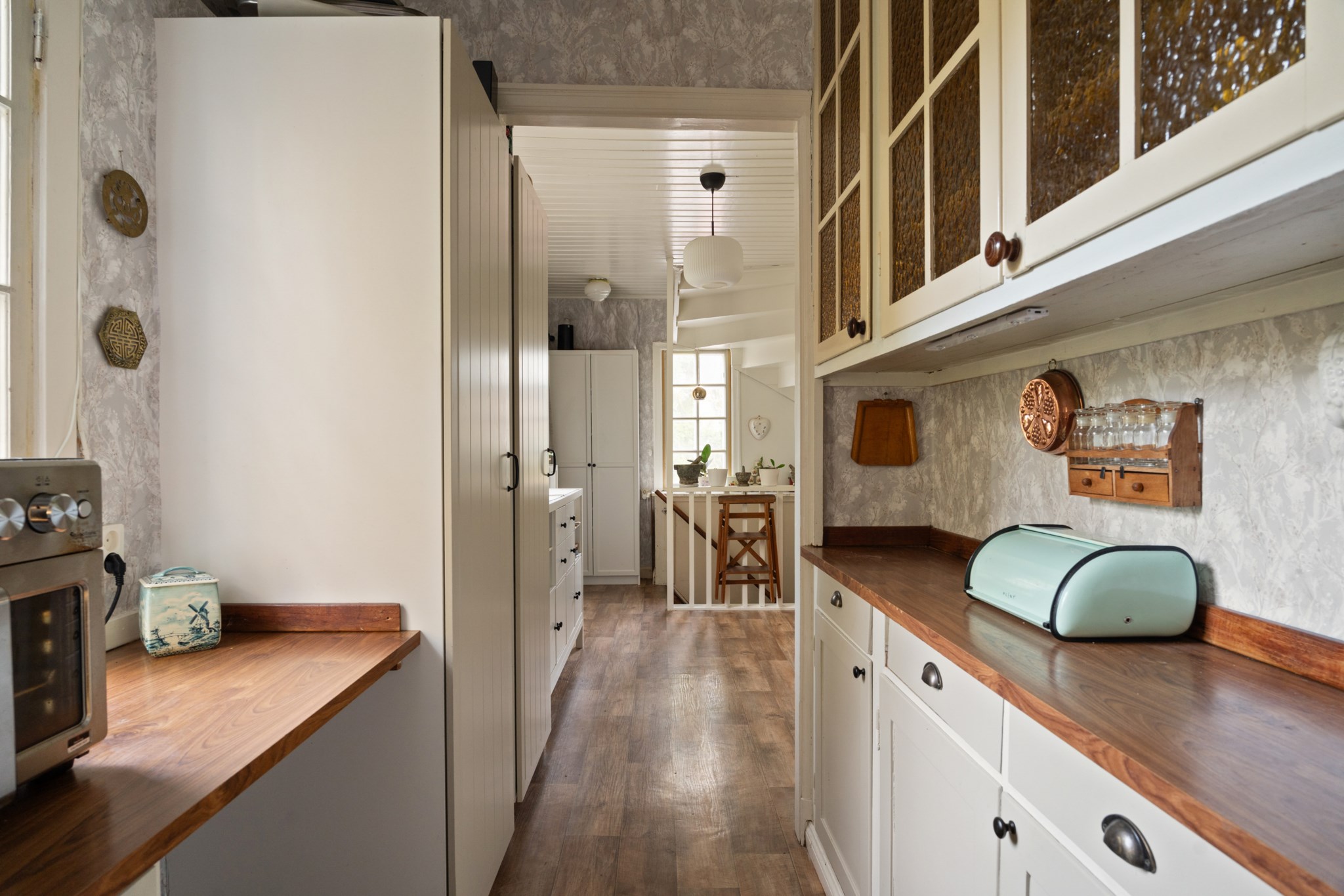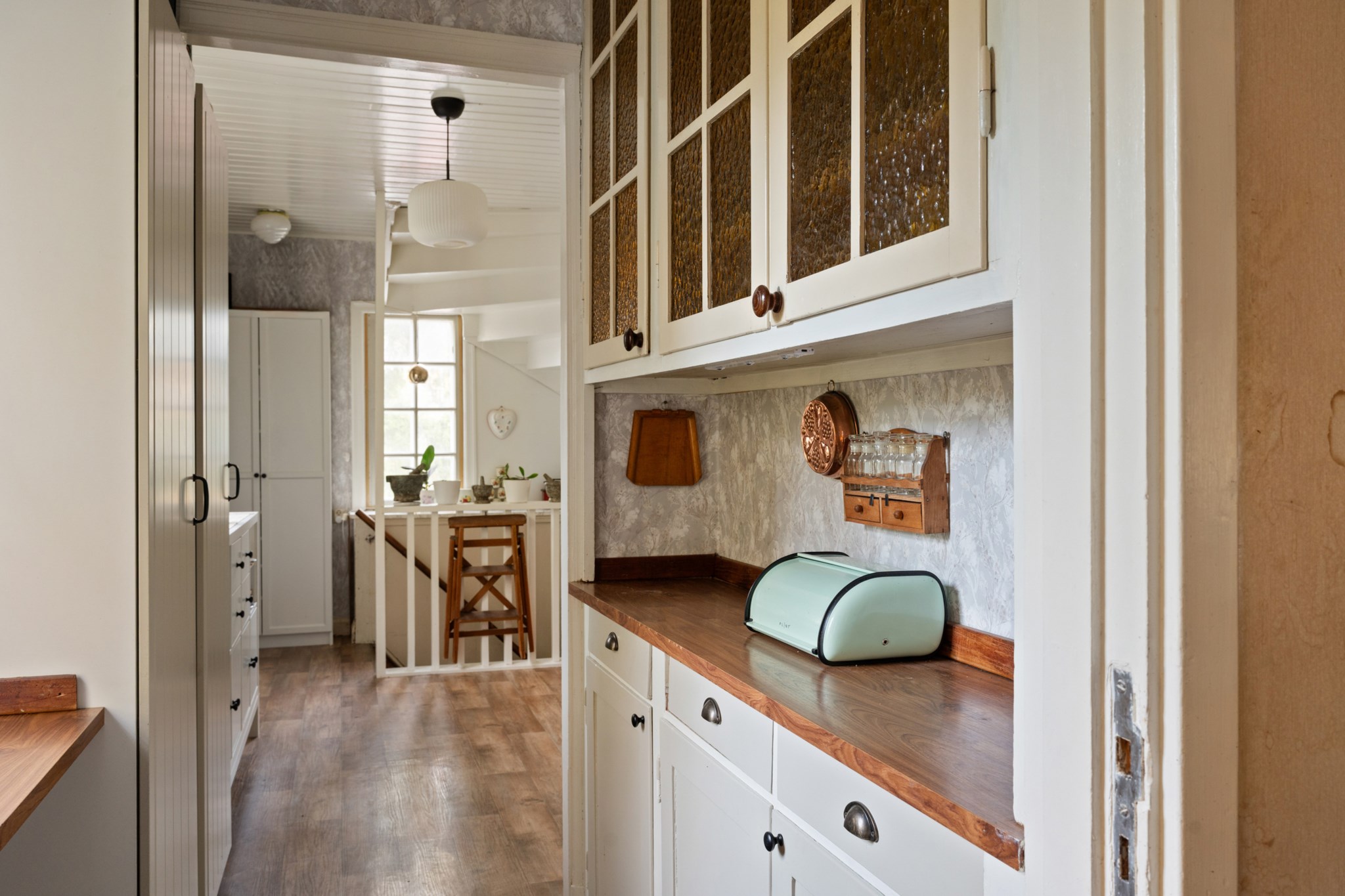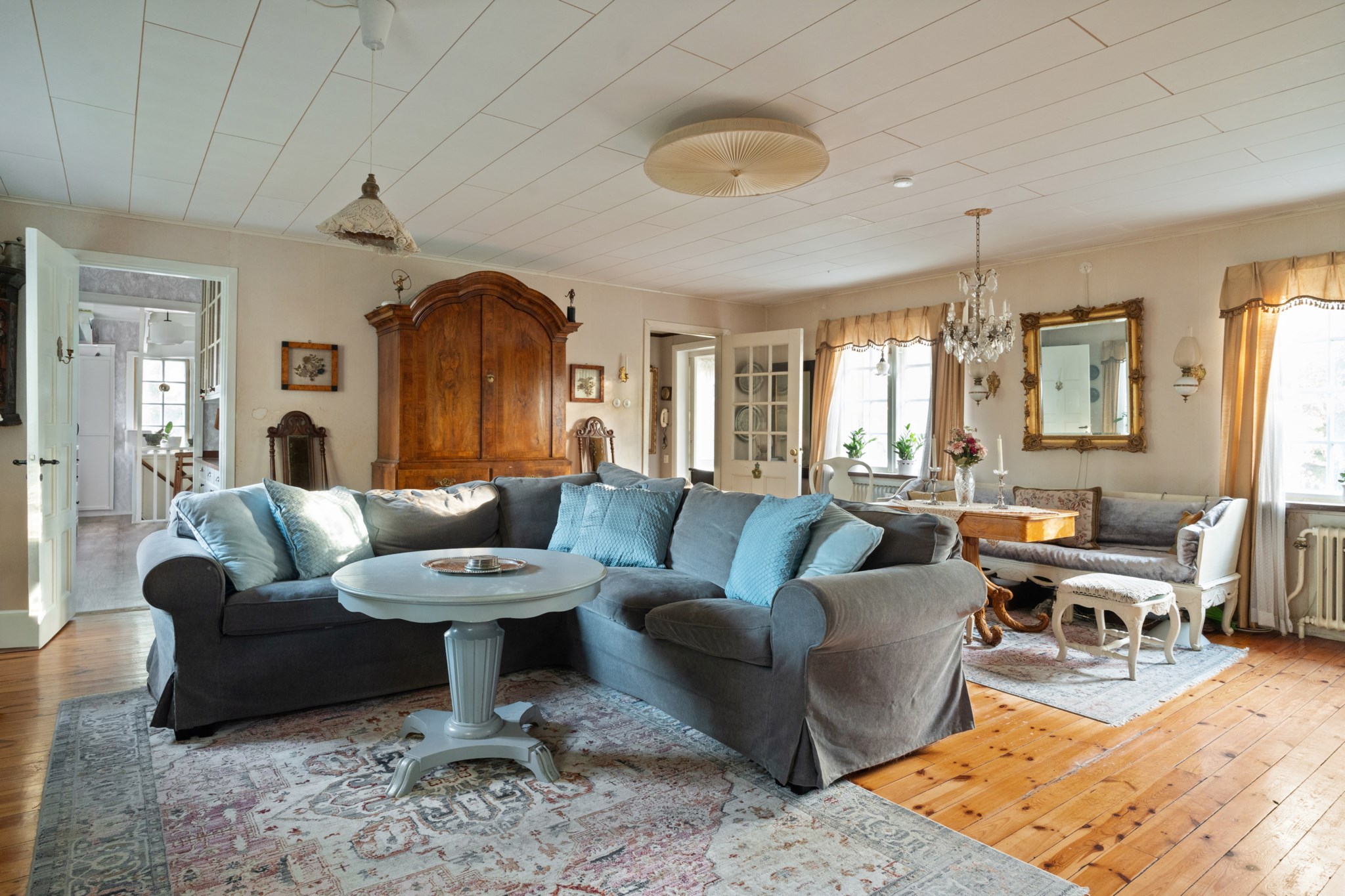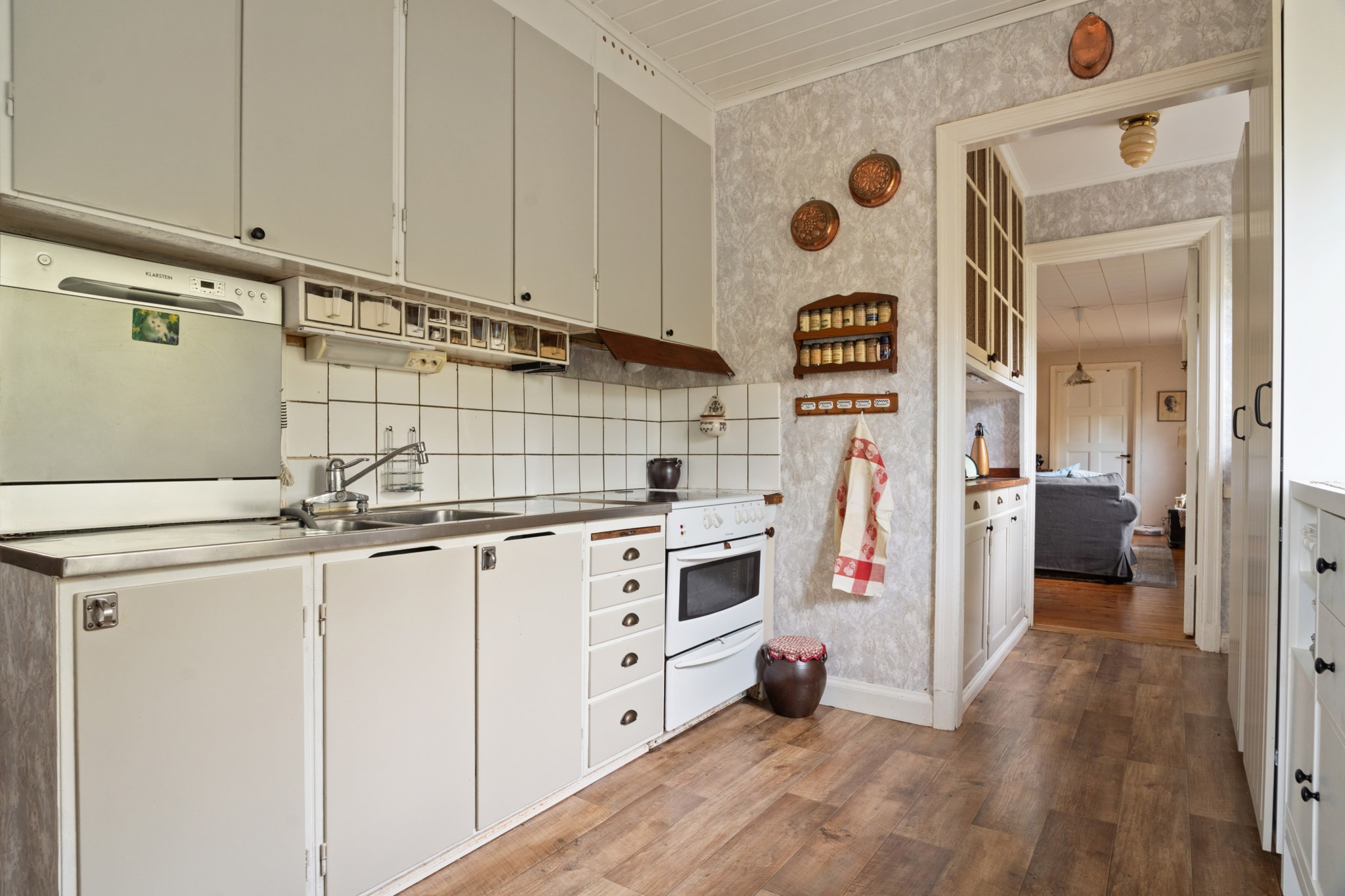Huset präglas av charmiga detaljer såsom gamla spegeldörrar, kakelugn och öppenspis som tillsammans skapar en unik och tidstypisk känsla.ÖVERVÅNING