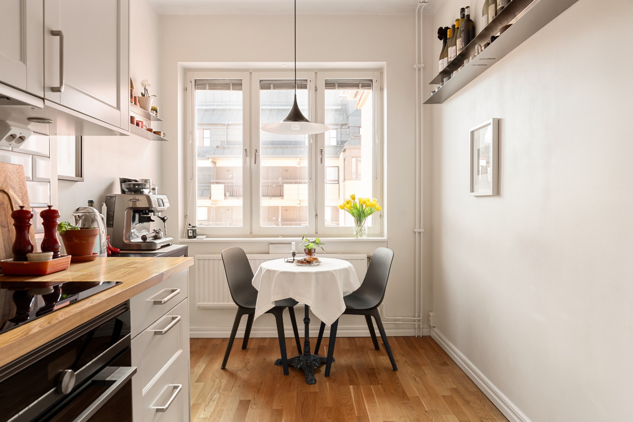 Bostaden erbjuder ett kök i toppskick med generösa arbetsytor och plats för trevliga middagar. Vardagsrummet rymmer enkelt en större soffgrupp och blir en naturlig samlingsplats för både vänner och familj. Det rymliga badrummet är smakfullt renoverat, och den separata sovalkoven har gott om plats för en större dubbelsäng. Här bor du med ett högt läge på våning 3 som erbjuder ett rikligt ljusinsläpp.