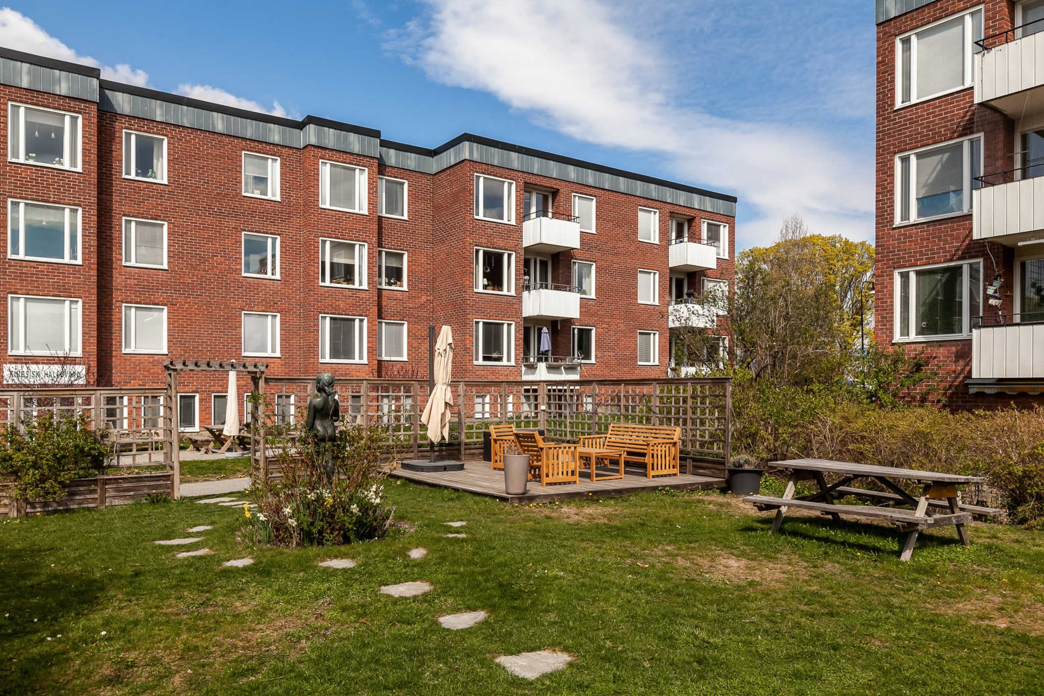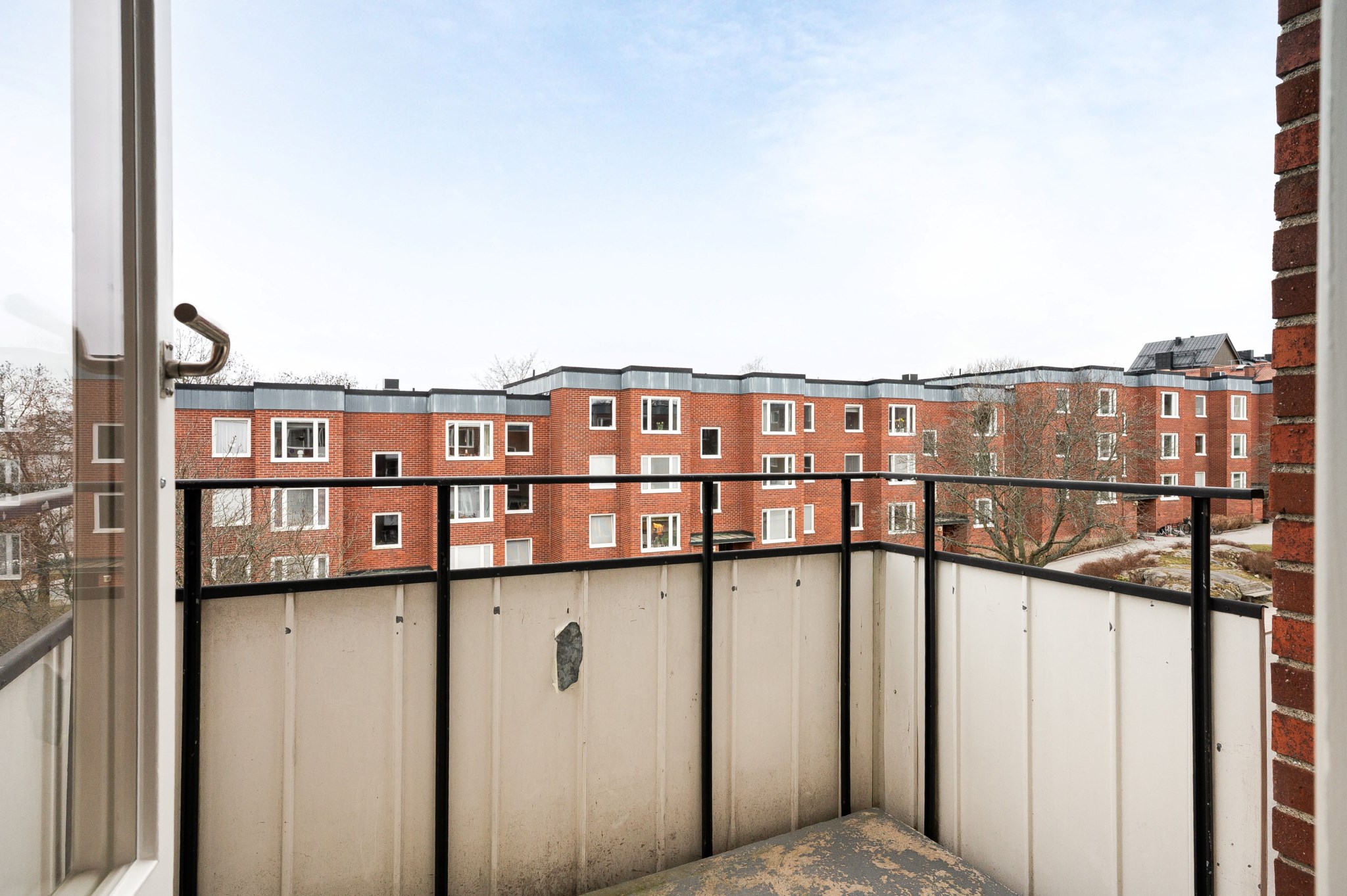 Till bostaden hör en balkong med plats för utemöbler samt fri vy över grönområde och Artemisgatan.