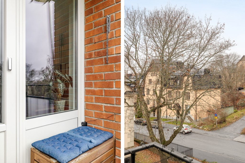 Till bostaden hör en balkong som erbjuder utrymme för både balkongmöbler och växter med en lugn och rogivande utsikt.