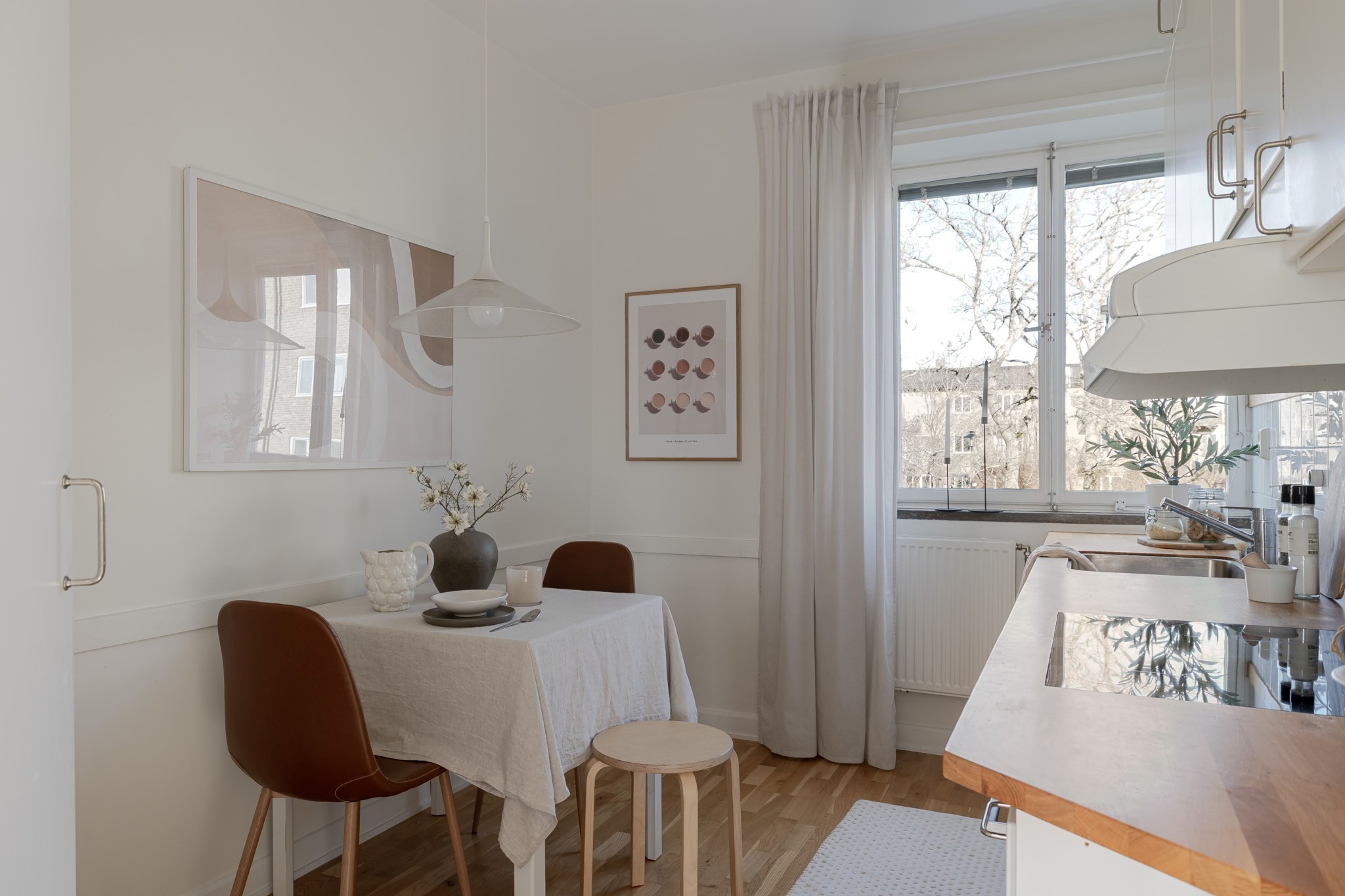 Välkommen till denna ljusa och välplanerade tvåa, fint belägen på andra våningen på attraktiva Artemisgatan 83. Här erbjuds ett smakfullt renoverat hem med genomtänkt planlösning och härligt ljusinsläpp som skapar en trivsam och inbjudande atmosfär. Bostaden präglas av stilrena materialval och väl omhändertagna ytor. Det rymliga vardagsrummet erbjuder gott om plats för både soffgrupp och matplats och har utgång till den trevliga balkongen i bästa solläge, en perfekt plats för morgonkaffet eller avkopplande kvällar under årets varmare månader.