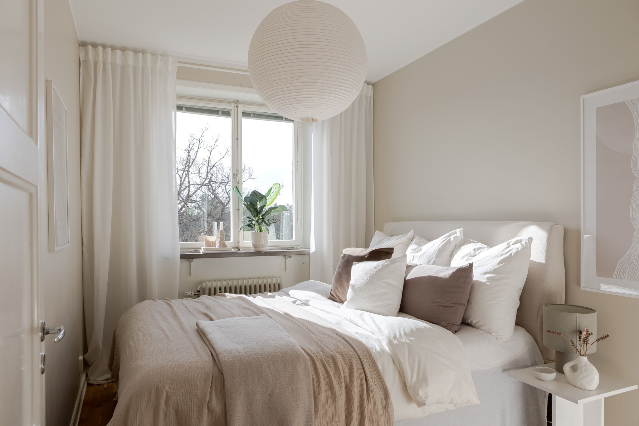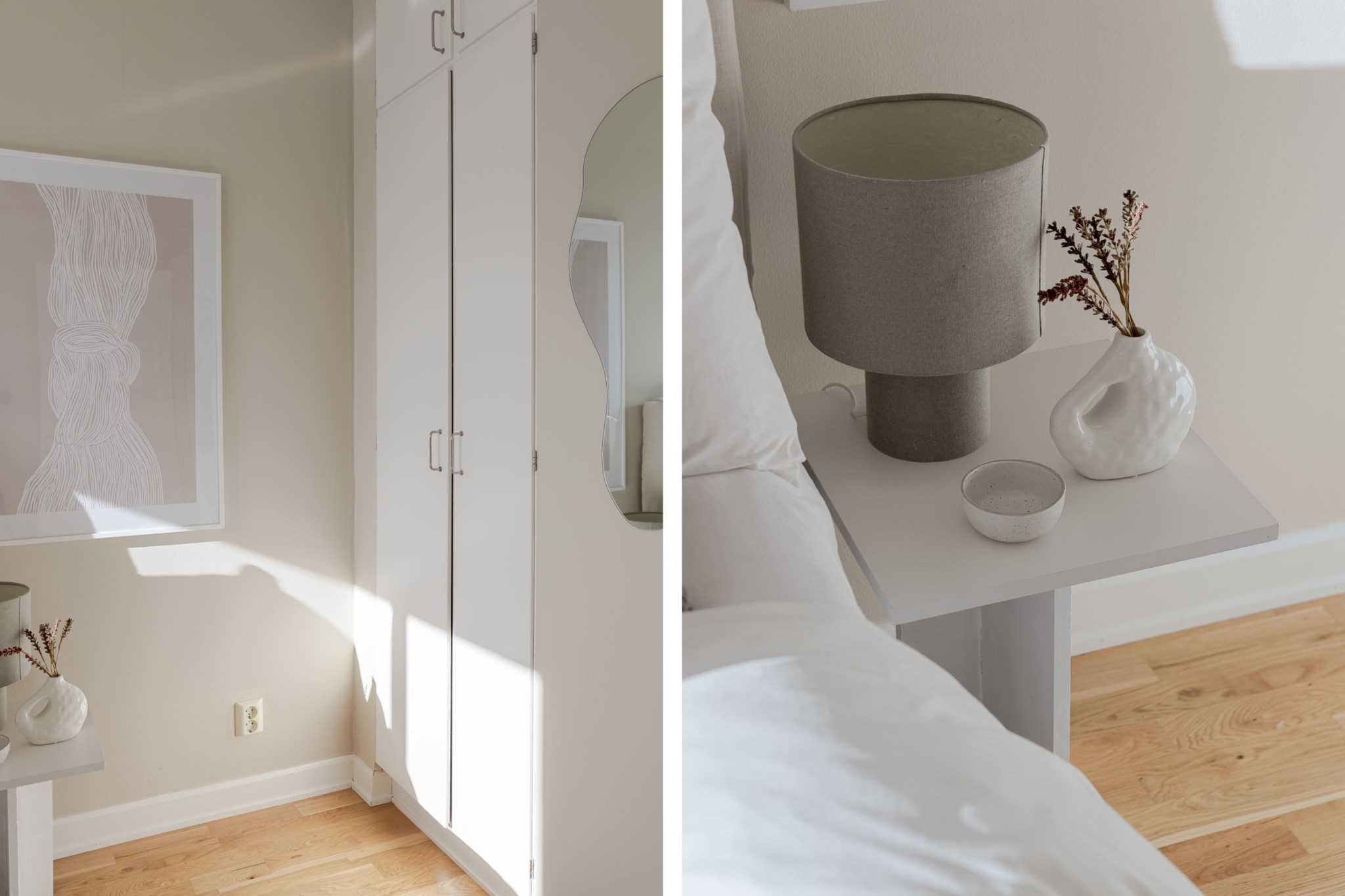 Köket är smakfullt renoverat och funktionellt utformat med bra arbetsytor och förvaring. Sovrummet är rofyllt och väl tilltaget med plats för dubbelsäng och förvaring.