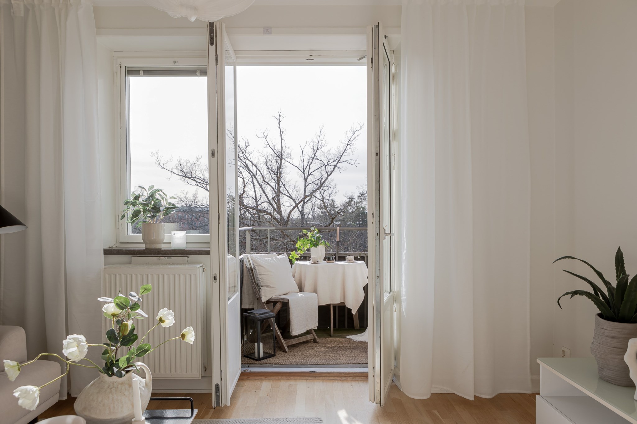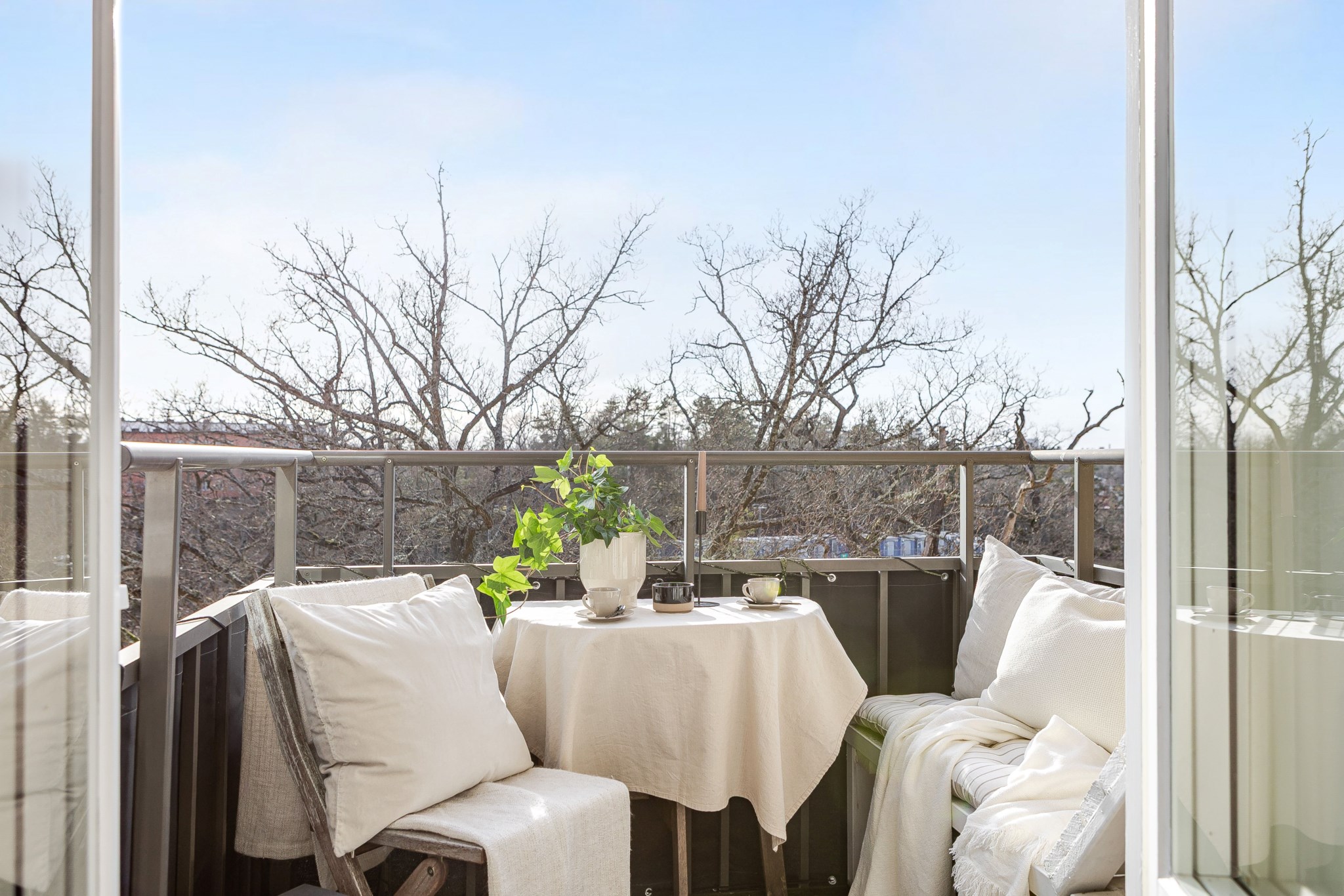 Till bostaden hör en balkong med plats för balkongmöbler och växter, med goda möjligheter att skapa en trivsam utomhusmiljö.