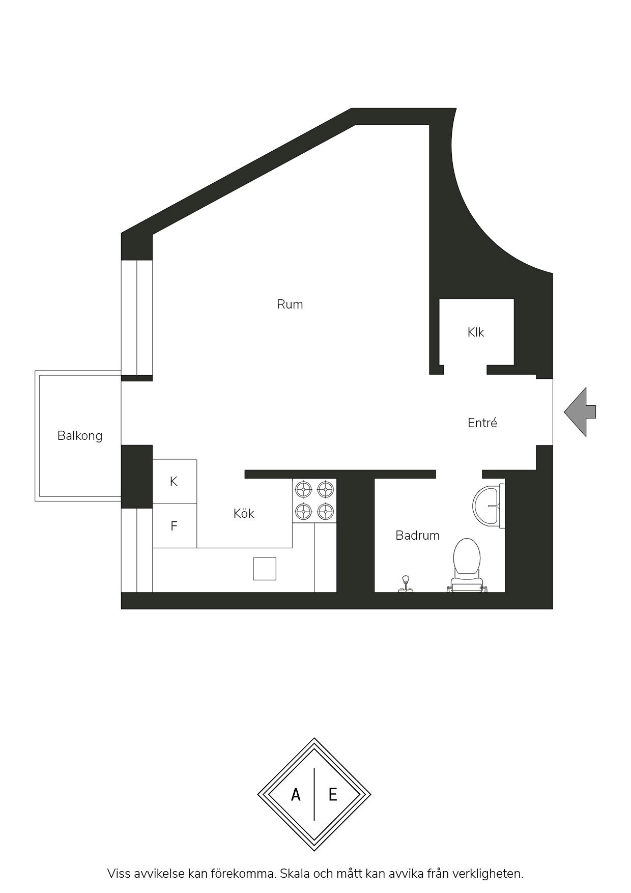 Bostaden erbjuder en välkomnande hall med god förvaring, ett rymligt helkaklat badrum med dusch, en modern och stilren köksdel samt ett lättmöblerat allrum med direkt utgång till balkongen. Planlösningen är smart och harmonisk – ett hem som känns både öppet och ombonat, perfekt för såväl vardag som avkoppling.