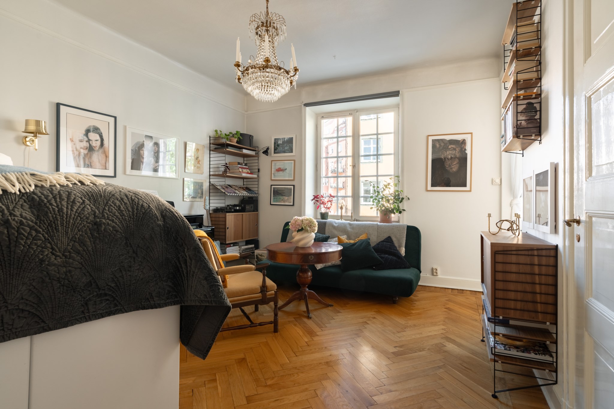 Varmt välkomna till denna välplanerade 20-talspärla med härligt ljusinsläpp mot en lugn och grönskande gata. Här bor ni i bevarade originaldetaljer så som högt i tak, stora fönsterpartier samt vacker fiskbensparkett. Välplanerat kök och badrum, låg avgift och bra förvaring gör detta till den perfekta ettan att flytta direkt in i. Välskött förening med stabil ekonomi ihop med sitt perfekta läge gör detta till ett riktigt trivsamt boende. Gemensamma balkonger som ger dig möjlighet att njuta av solens strålar hela dagen.