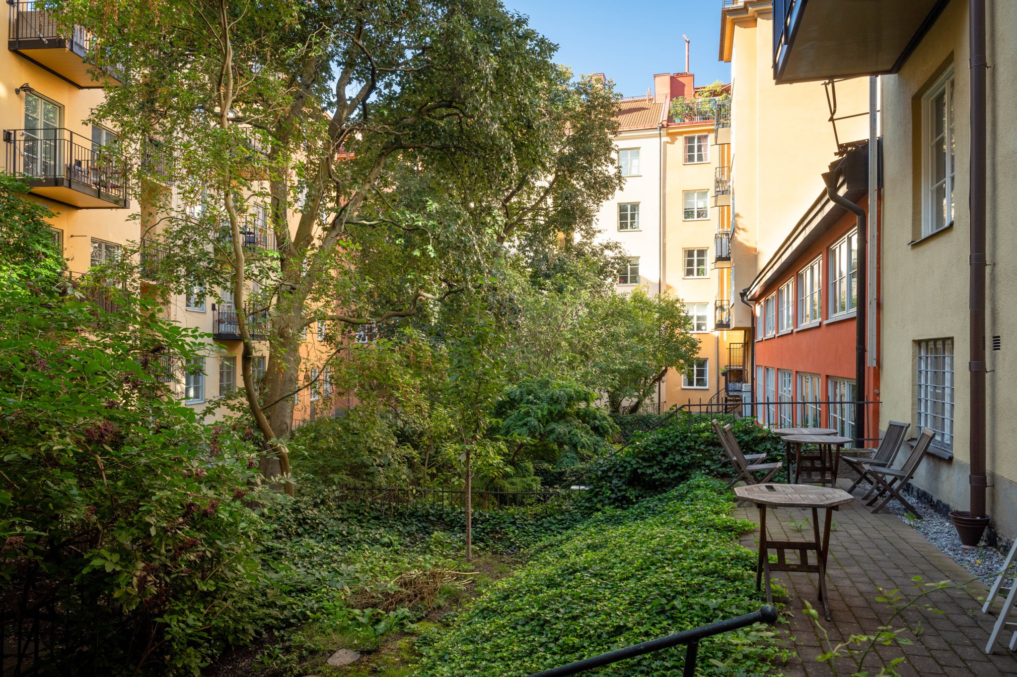 Föreningen planerar renovering av kungsbalkonger under de närmsta åren, ej fastställt tidsplan.GårdsplatsFöreningen har en trevlig innergård med trädgårdsmöbler där grillmöjligheter finns. Även vädringsbalkonger finns på varje våningsplan att nyttja av föreningens medlemmar. Föreningen har obligatorisk städdag som medlemmar bör medverka på.ParkeringI området råder boendeparkering enligt Stockholm stads bestämmelser.Gemensamma utrymmen- Gemensamma tvättstuga som är belägen i källarplan och utrustad med två tvättmaskiner, en torktumlare, torkskåp och mangel.