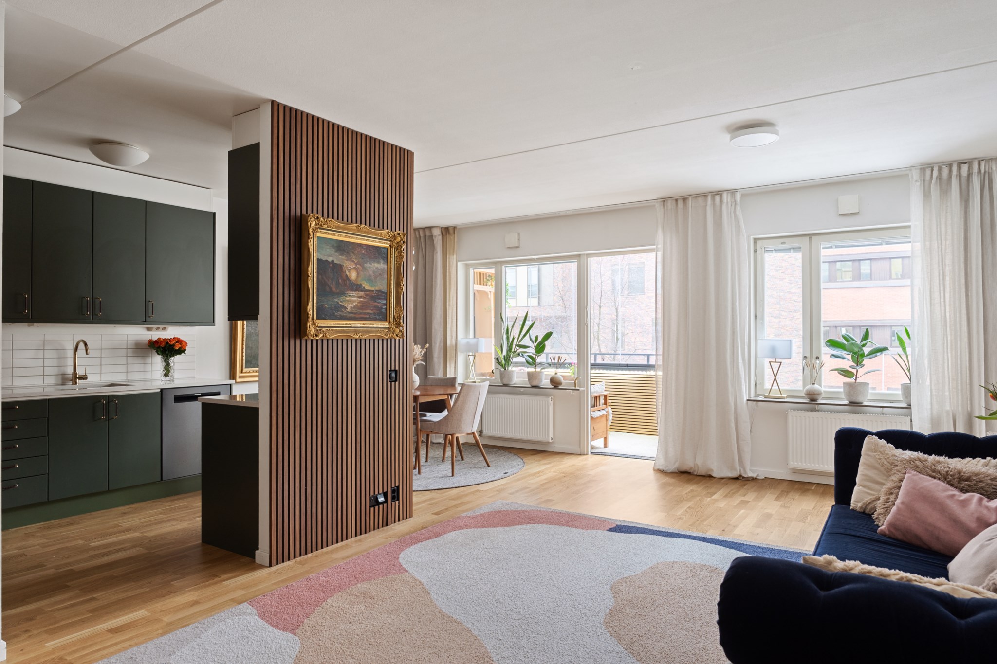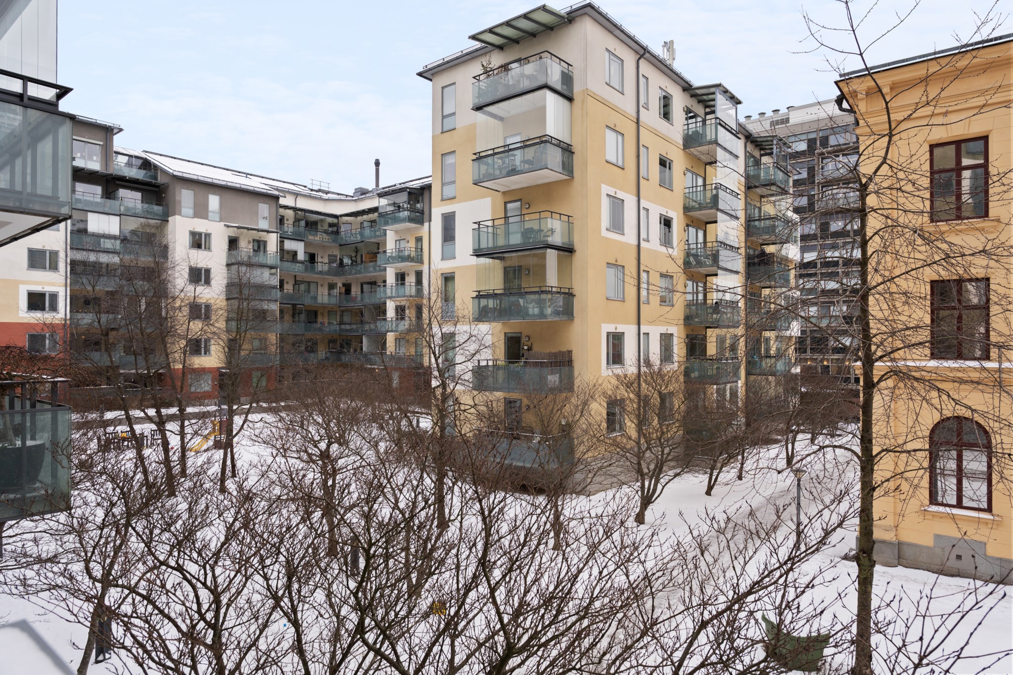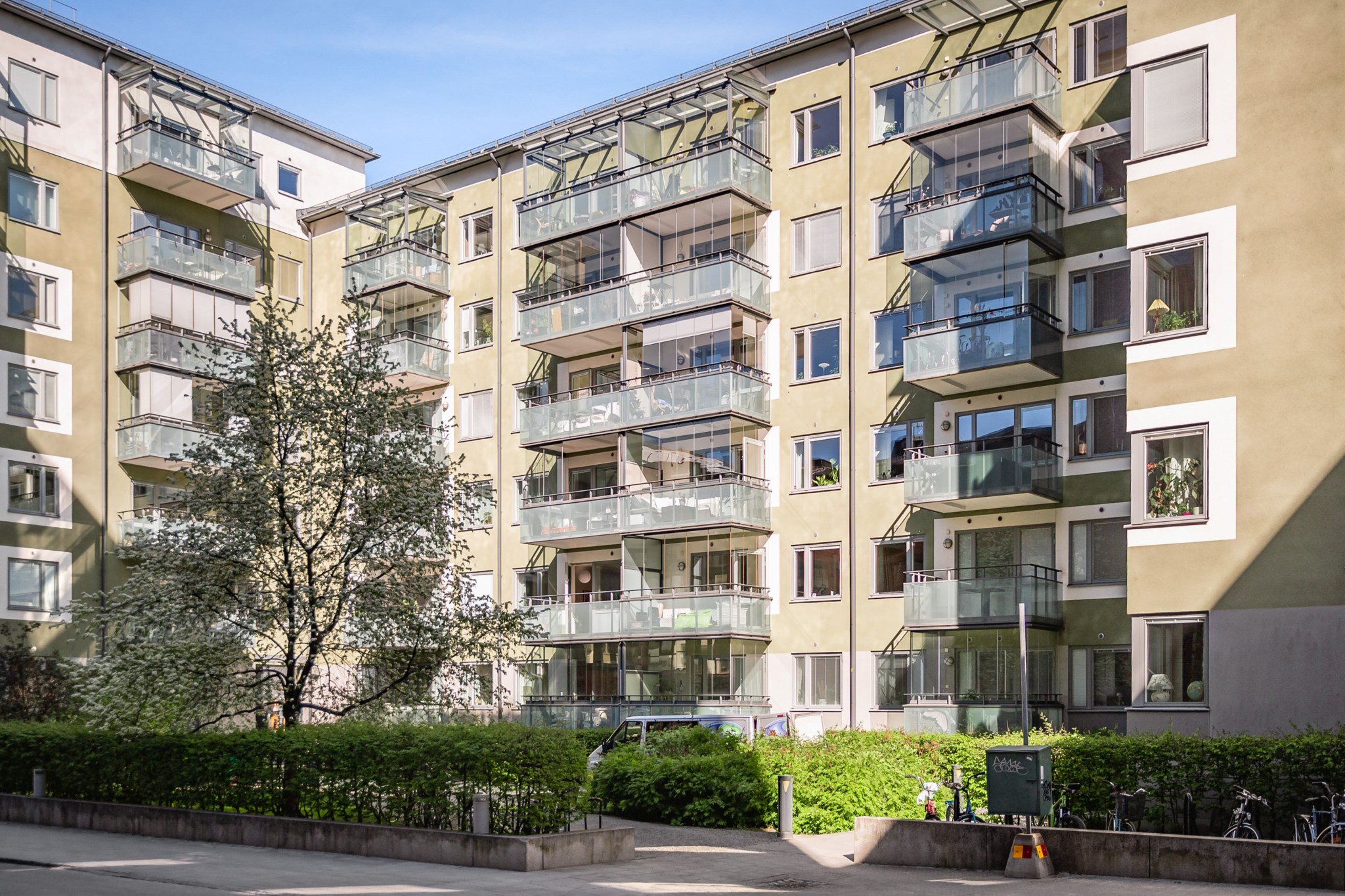 Välkommen till denna välplanerade trea med en solig balkong! Här finner du generösa och öppna sociala ytor samt genomgående ljus från stora fönsterpartier. Byggnaden är från 2006 vilket ger en praktisk och modern atmosfär. Det snygga köket har generösa arbetsytor. Från vardagsrummet når ni den inglasade balkongen. Bostaden har två rymliga sovrum, varav master bedroom har en fransk balkong med utsikt mot en lummig bakgård där du kan njuta av trädens skiftande färger genom året. Renoverat badrum med smakfullt kakel/klinker, golvvärme samt utrustat med både tvättmaskin och torktumlare. Vidare så har bostaden många garderober i båda sovrummen samt stor garderob i hallen.