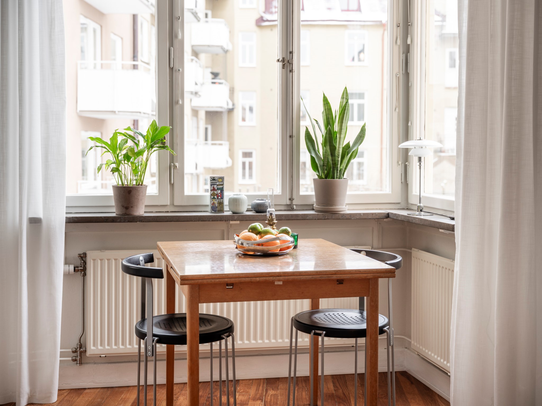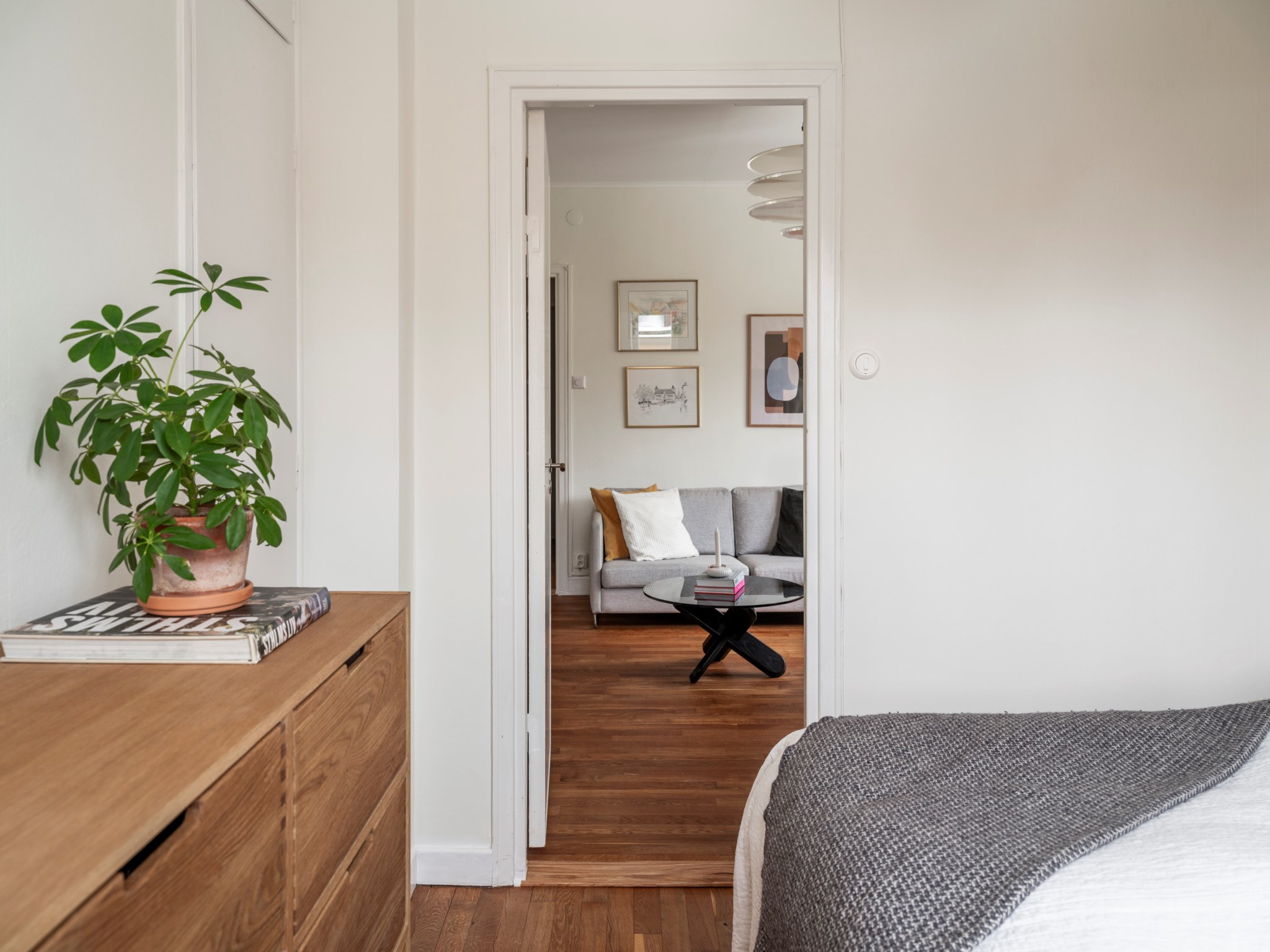 I högt och soligt läge ligger denna trivsamma bostad i hörnläge och med vackert burspråk! Lägenhetens disponering gör den perfekt för både en och två personer tack vare större sovrum med bra förvaring, vardagsrum med gott om plats för matgrupp och soffa samt välplanerat kök. Här återfinns fina funkisdetaljer så som inbyggda garderober, fönsterbrädor i sten och spanjolett-handtag i klassisk stil. Genomgående fina ytskikt och tidlöst renoverat kök och badrum skapar tillsammans med de bevarade detaljerna en fin symbios och ett hem man trivs i!