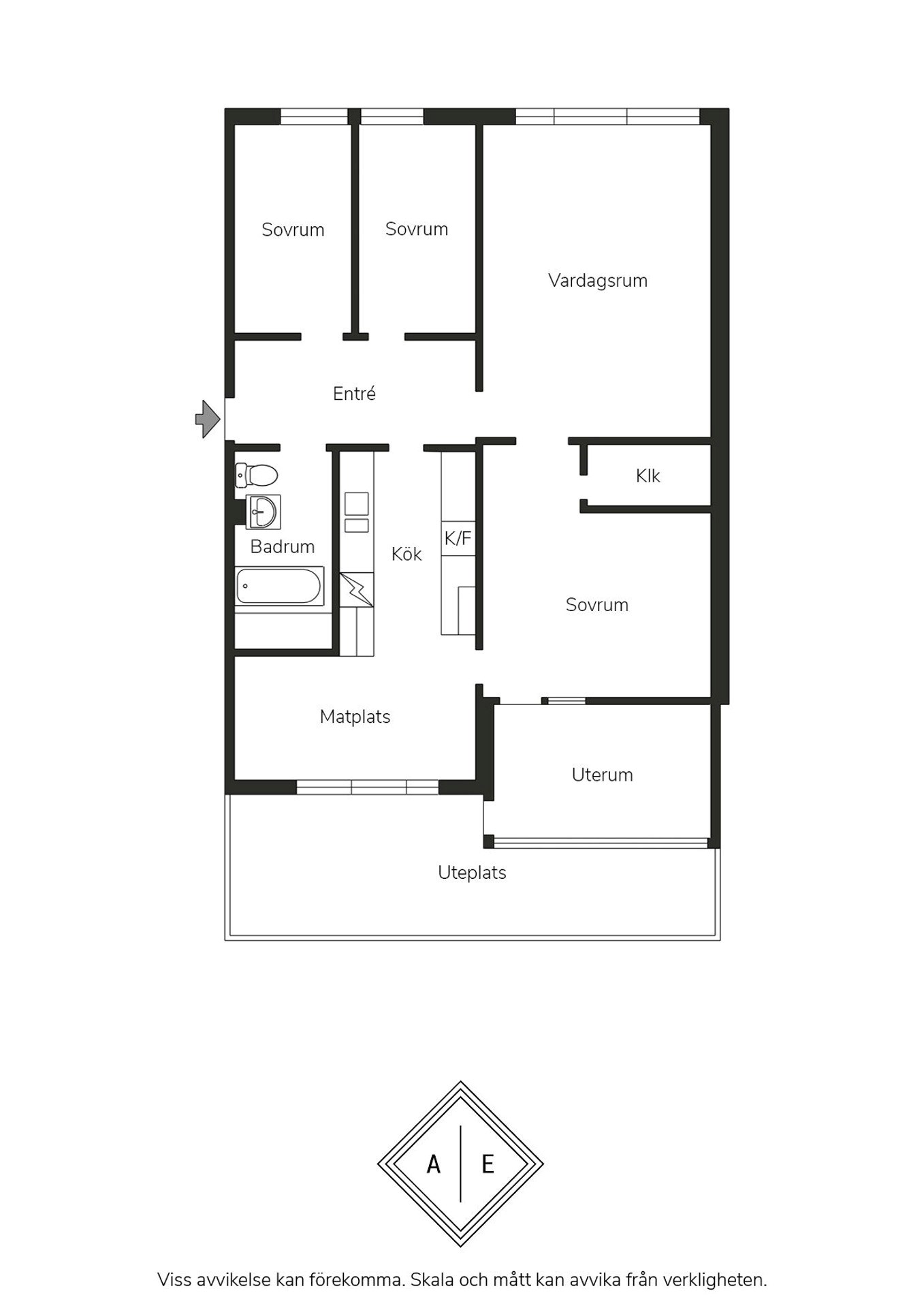 Välplanerad 4 rok med uterum och uteplats i bästa läge