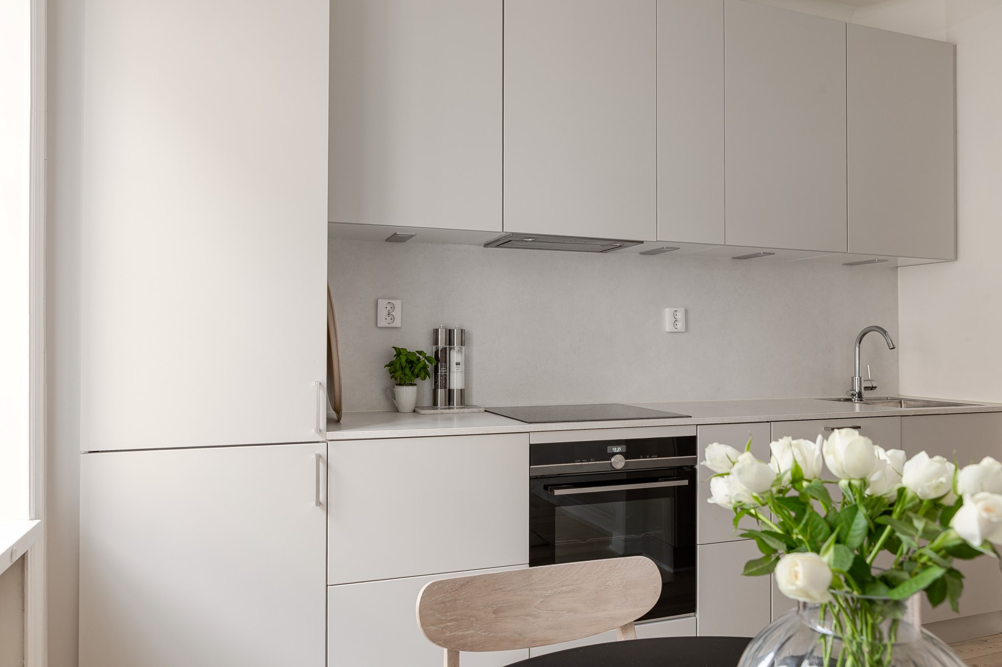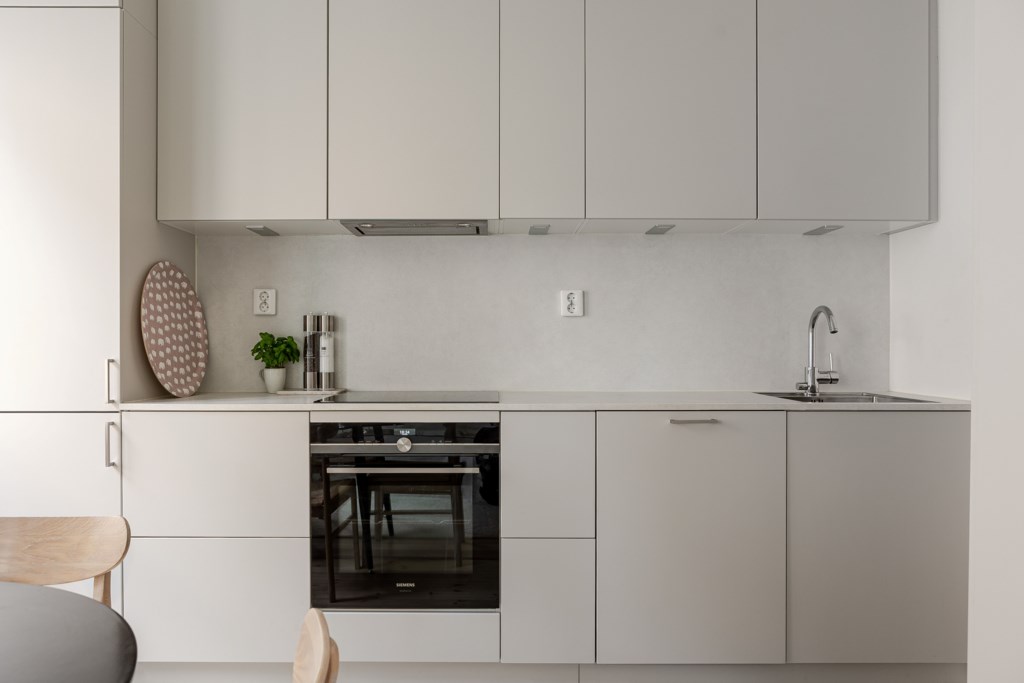 Bostaden präglas av ett fantastiskt ljusinsläpp tack vare stora fönster i kombination med generös takhöjd, vilket skapar en luftig och inbjudande känsla. Den smarta planlösningen rymmer allt du behöver: ett stilrent kök i öppen anslutning till vardagsrum, en rymlig sovalkov med plats för större säng, samt ett smakfullt helkaklat badrum. Här finns också gott om förvaring i inbyggda lösningar.
