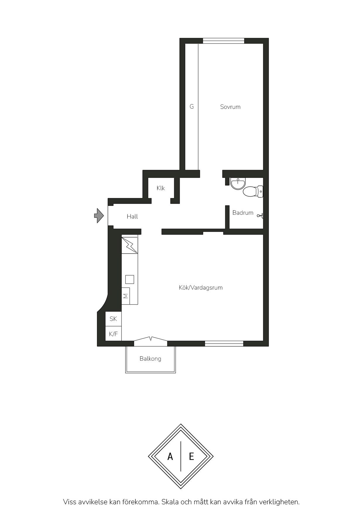 Genomgående och välplanerad tvåa med balkong mot en lugn innergård!