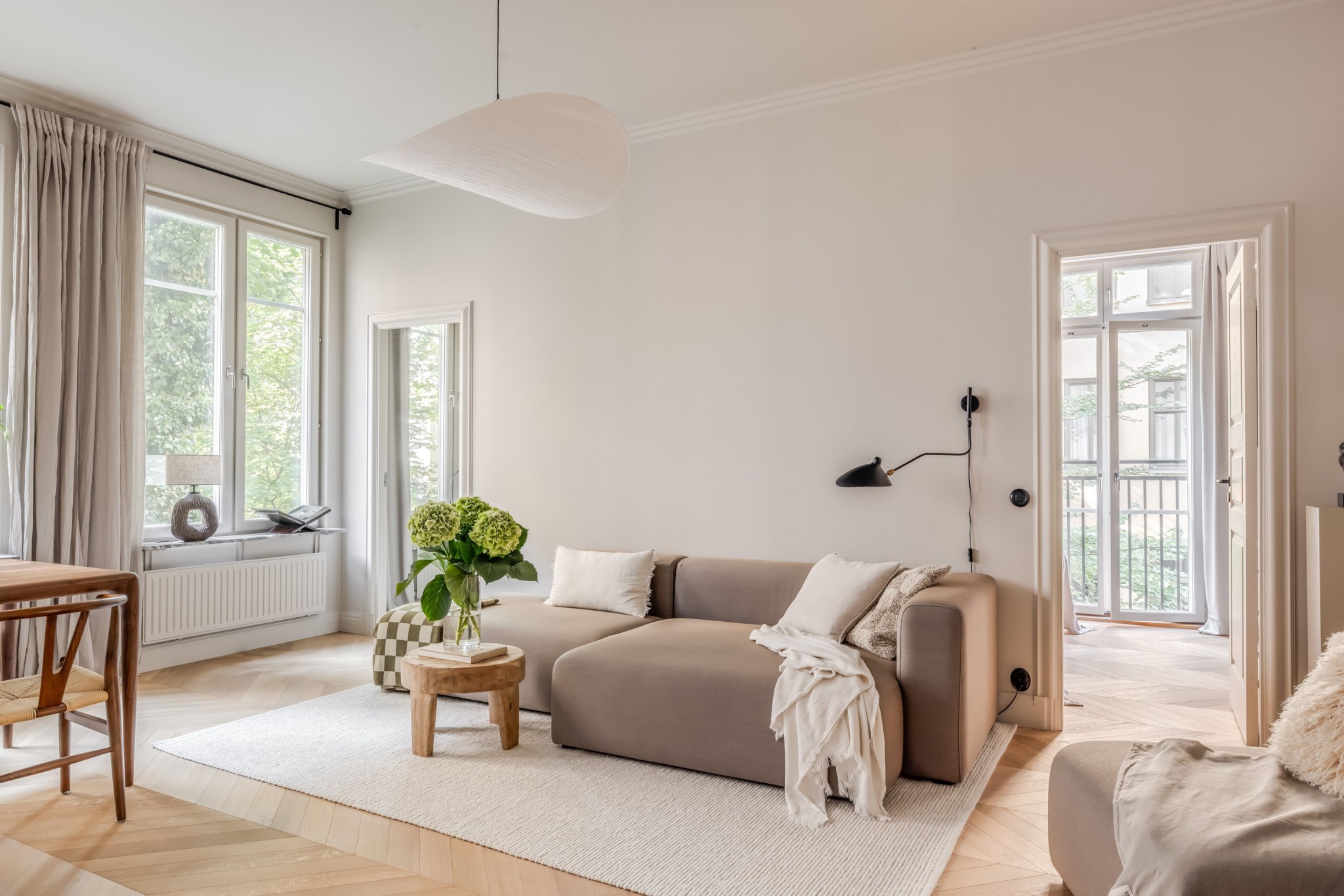 Här bor ni i en magisk topprenoverad trerummare med gedigen takhöjd om 3m, fransk balkong, öppen planlösning och extremt bra förvaringsmöjligheter. Centralt och attraktiv adress i Vasastan men från lägenheten hörs enbart fågelkvitter och utsikten vetter mot vackra träd vilket ger en lummig känsla i lägenheten.