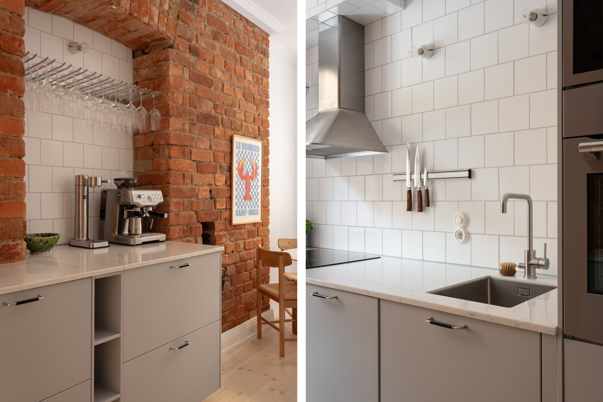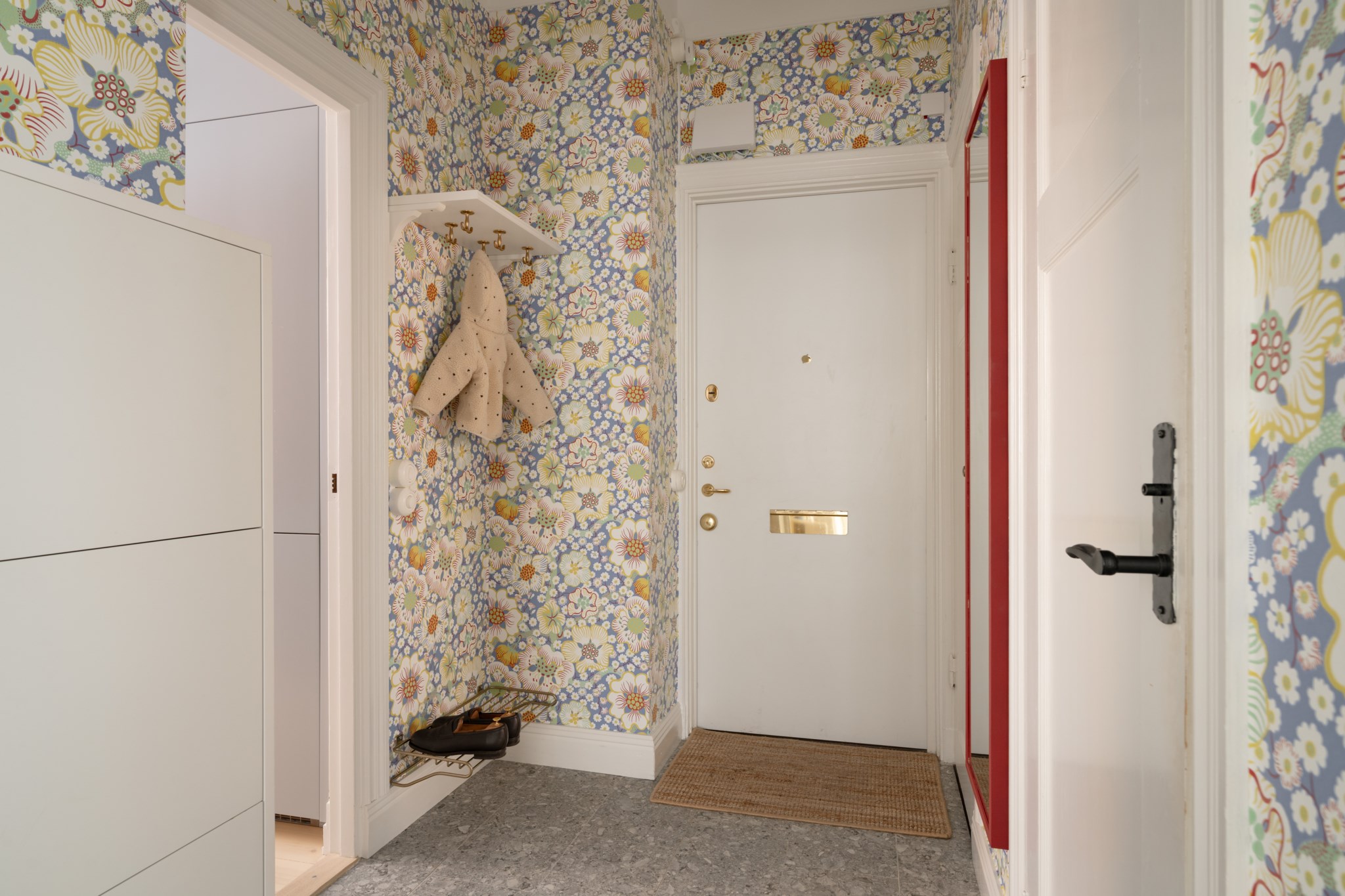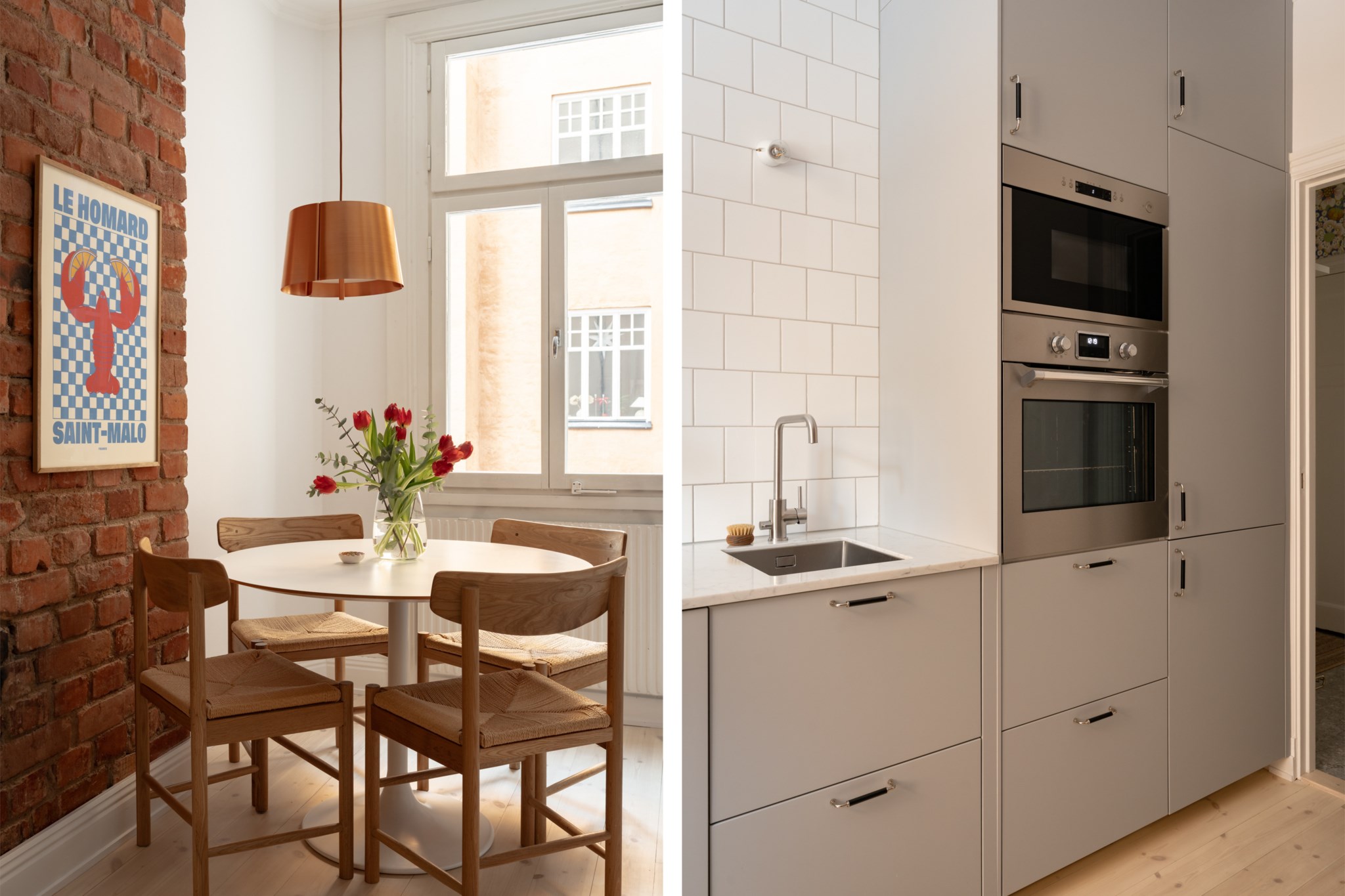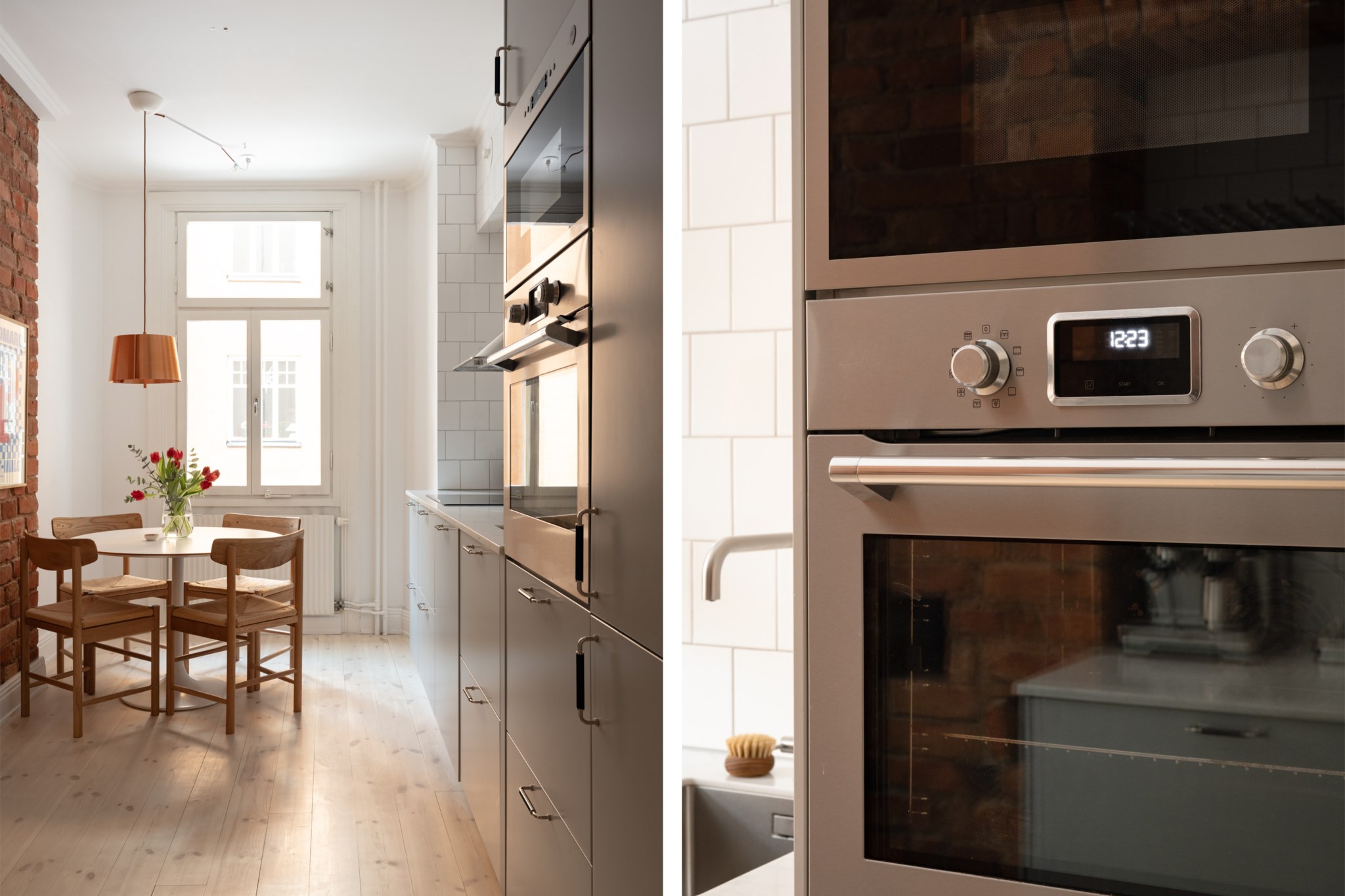 Vardagsrummet ligger i eftertraktat hörnläge och rymmer både soffgrupp och matplats. Här finns en av bostadens två fungerande kakelugnar samt utgång till balkongen i sydvästläge med härlig eftermiddagssol. Ljusa trägolv och harmoniska färgval skapar en varm och inbjudande atmosfär. Hallen välkomnar med eleganta tapeter från Svenskt Tenn som sätter tonen för bostadens tidlösa karaktär. Köket är stilrent med grå skåpsluckor, ljusa arbetsytor och klassiskt kakel. Matplatsen vid fönstret ramas in av en charmig tegelvägg som ger rummet karaktär. Sovrummet är rofyllt och rymligt med plats för dubbelsäng och förvaring samt ytterligare en fungerande kakelugn. Det helkaklade badrummet är utfört i vitt kakel med tidlöst svartvitt chackmönstrat golv. En välplanerad och mycket trivsam sekelskifteslägenhet med balkong, kakelugnar och ett oslagbart läge på Birger Jarlsgatan – ett hem med både själ och stil.