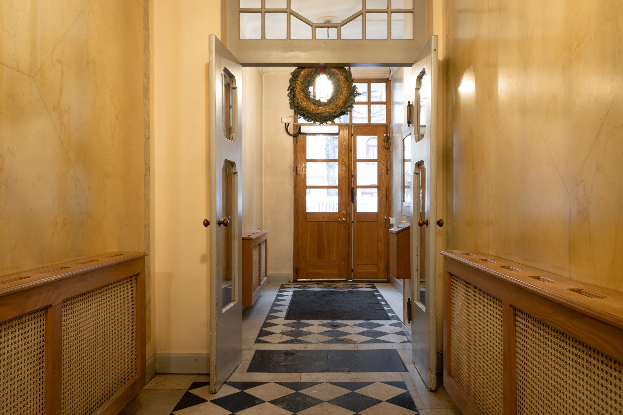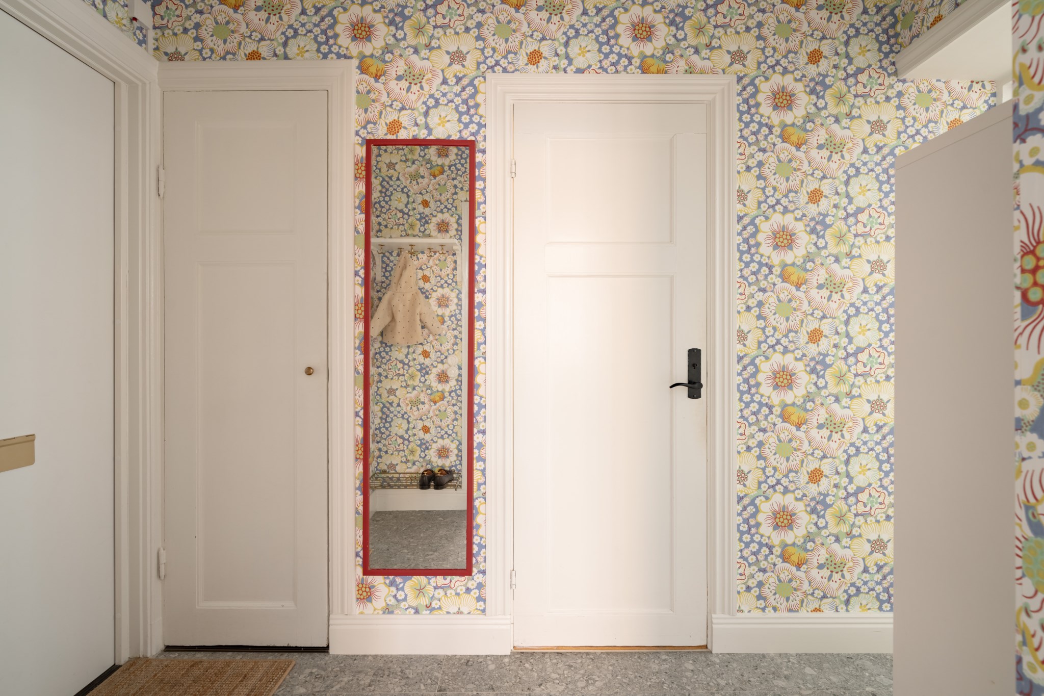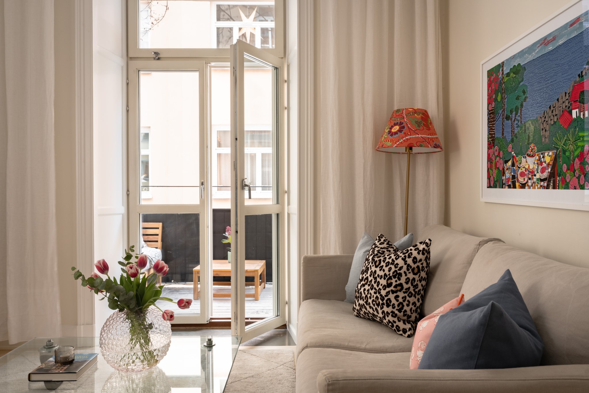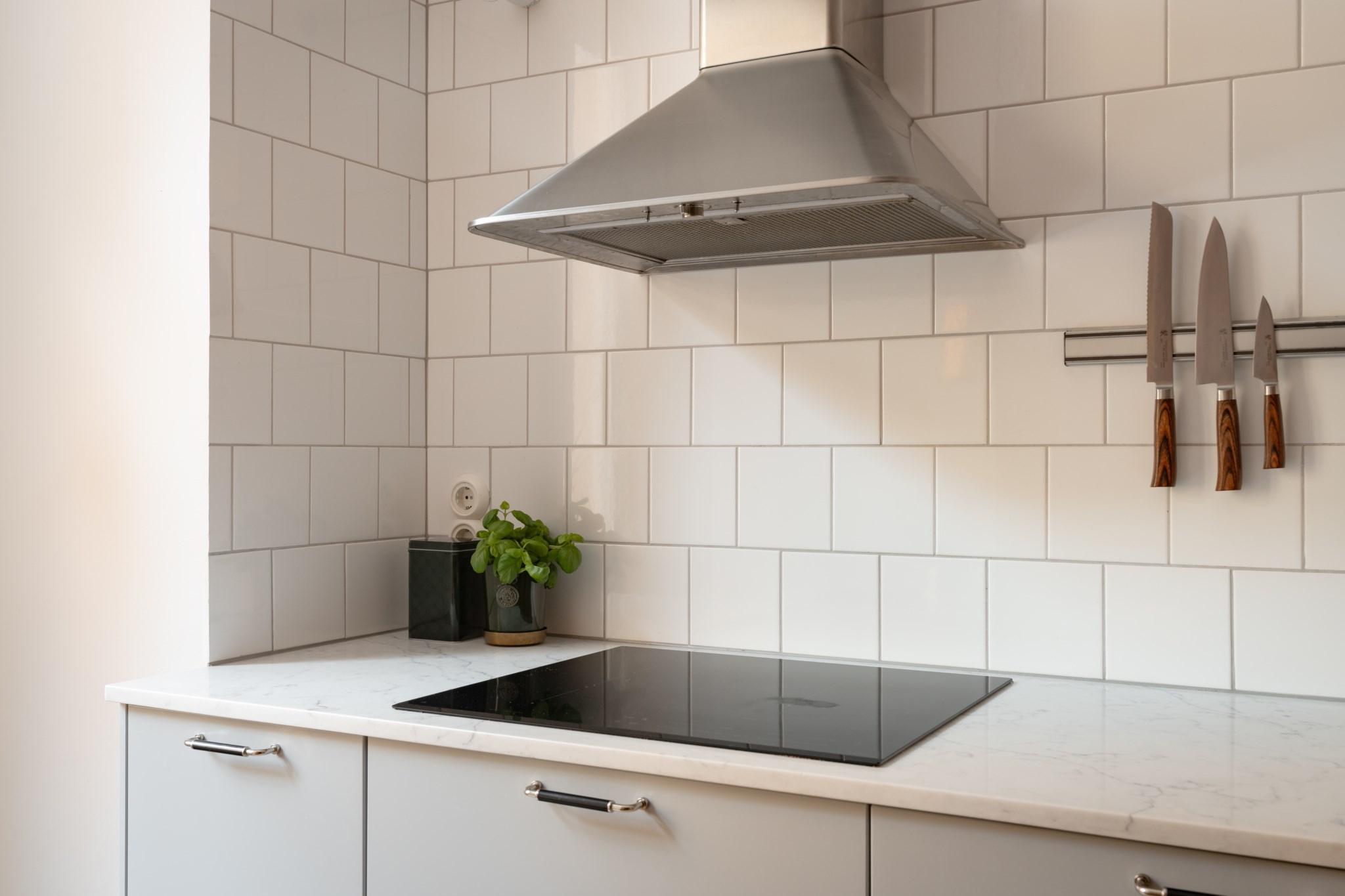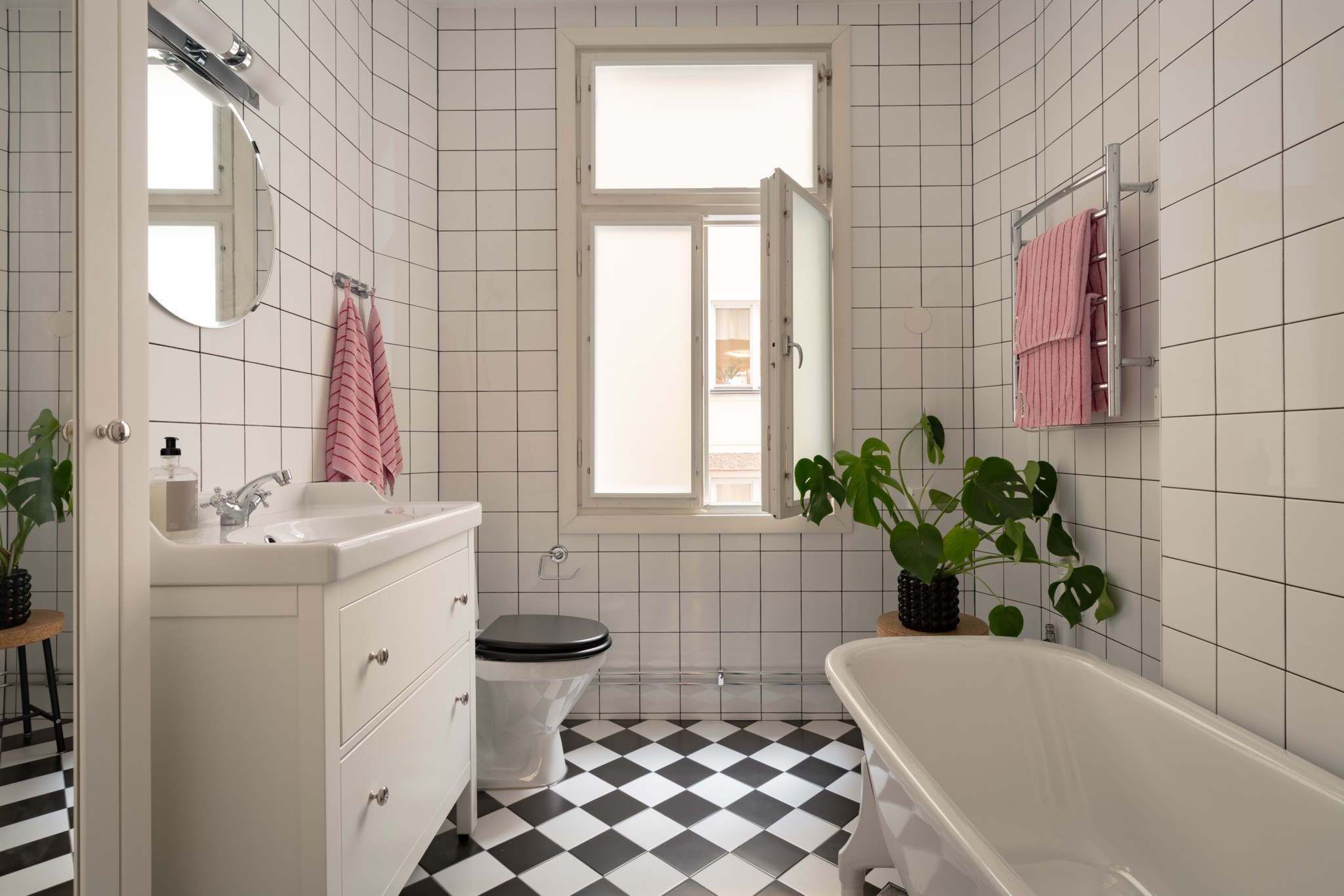 Vardagsrummet ligger i eftertraktat hörnläge och rymmer både soffgrupp och matplats. Här finns en av bostadens två fungerande kakelugnar samt utgång till balkongen i sydvästläge med härlig eftermiddagssol. Ljusa trägolv och harmoniska färgval skapar en varm och inbjudande atmosfär. Hallen välkomnar med eleganta tapeter från Svenskt Tenn som sätter tonen för bostadens tidlösa karaktär. Köket är stilrent med grå skåpsluckor, ljusa arbetsytor och klassiskt kakel. Matplatsen vid fönstret ramas in av en charmig tegelvägg som ger rummet karaktär. Sovrummet är rofyllt och rymligt med plats för dubbelsäng och förvaring samt ytterligare en fungerande kakelugn. Det helkaklade badrummet är utfört i vitt kakel med tidlöst svartvitt chackmönstrat golv. En välplanerad och mycket trivsam sekelskifteslägenhet med balkong, kakelugnar och ett oslagbart läge på Birger Jarlsgatan – ett hem med både själ och stil.