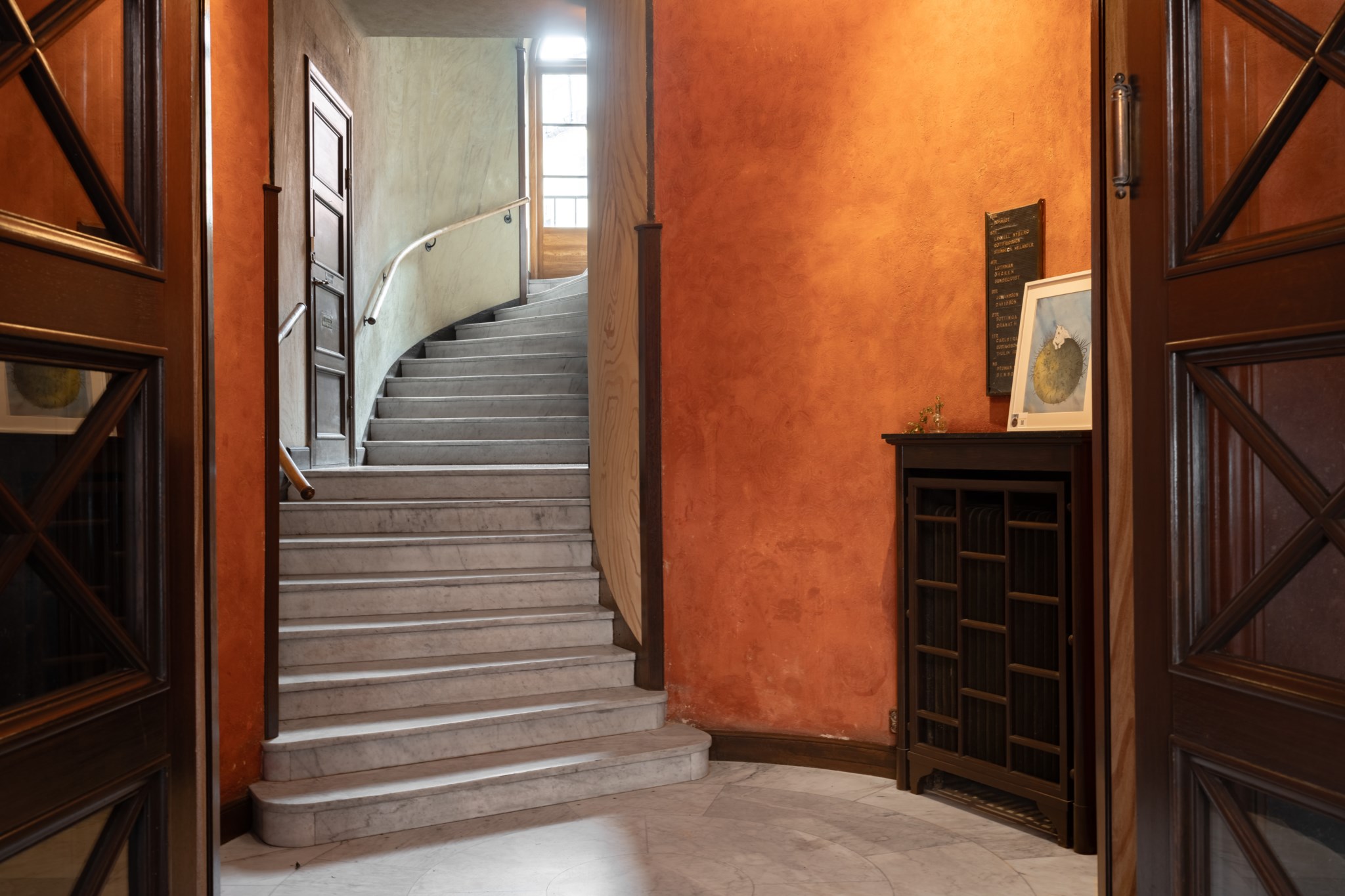 Mot innergården motsvarar lägenheten ett våningsplan på 1,5, medan den i trapphuset ligger på 0,5 trappa. Lägenheten bjuder på ett härligt ljusinsläpp, smakfulla materialval och en välplanerad layout som gör den perfekt för både vardagsliv och sociala tillställningar.
