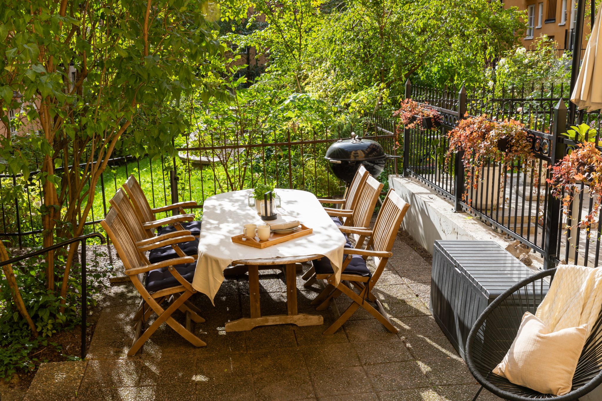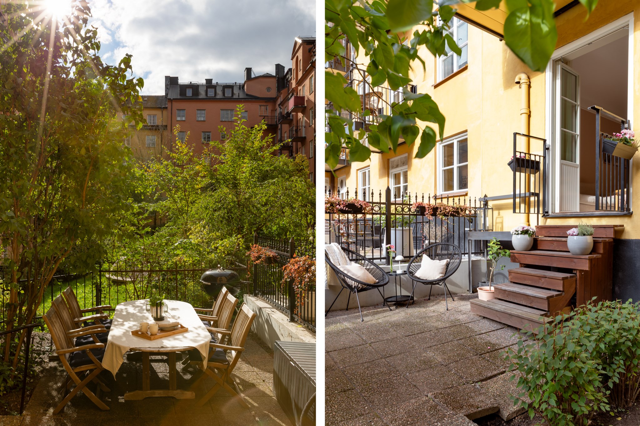 I anslutning till vardagsrummet finns en mysig uteplats.