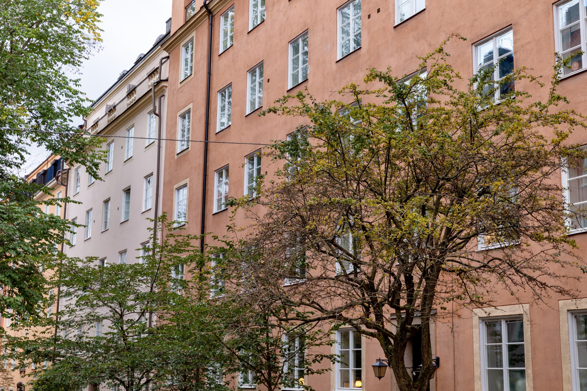 Stabil förening som äger marken och har en låg belåningsgrad på 2 827 kr/kvm (årsredovisning 2024).
