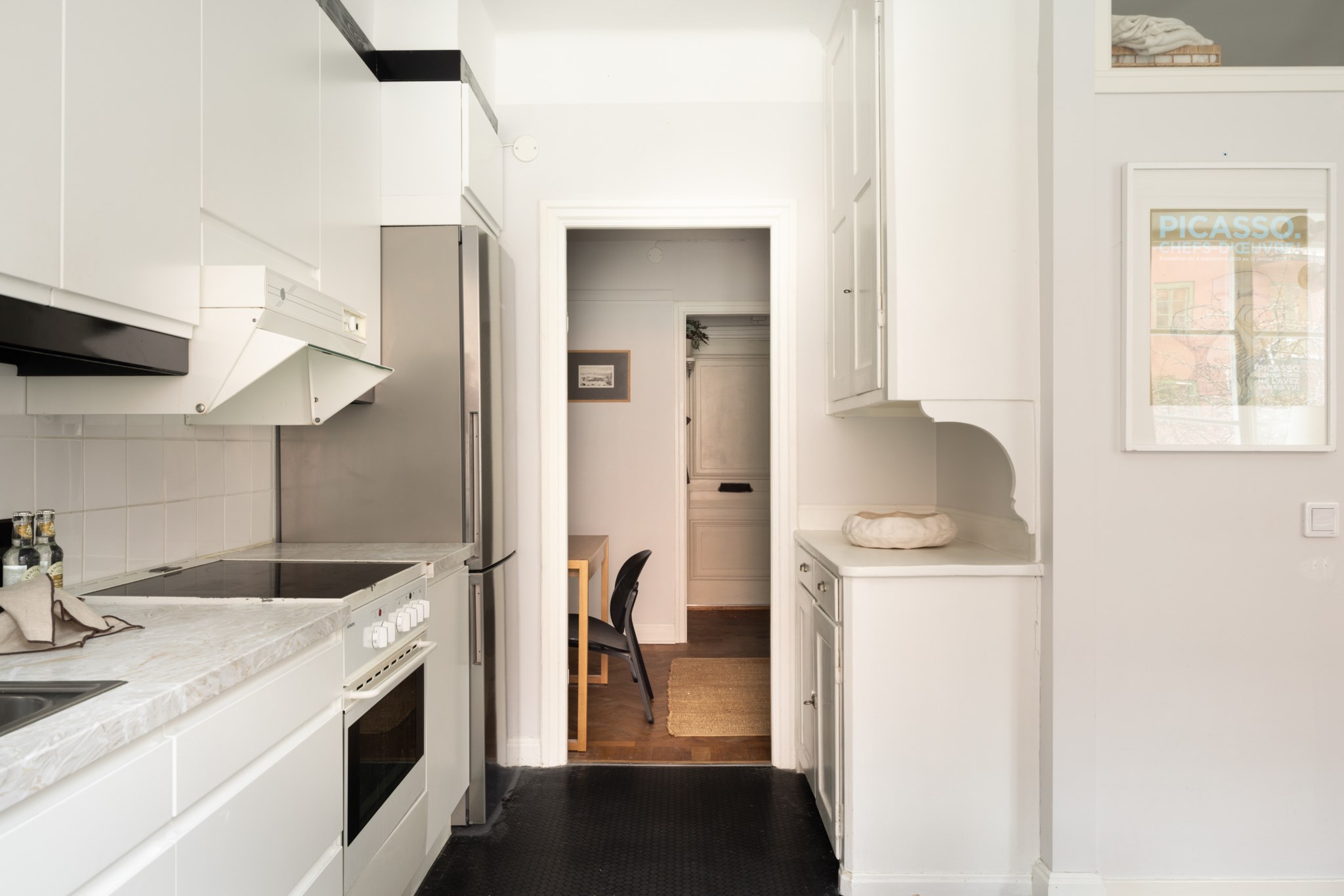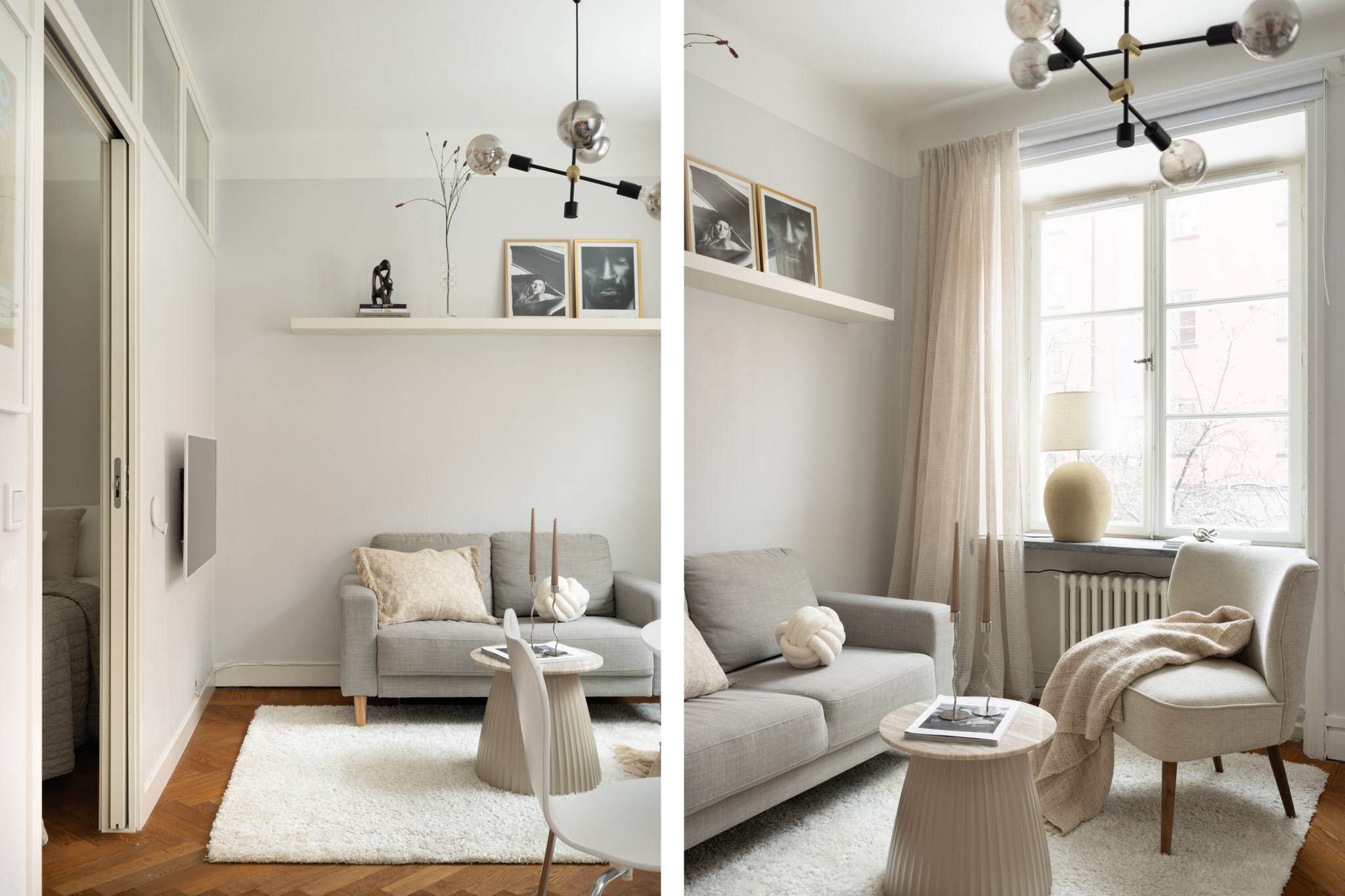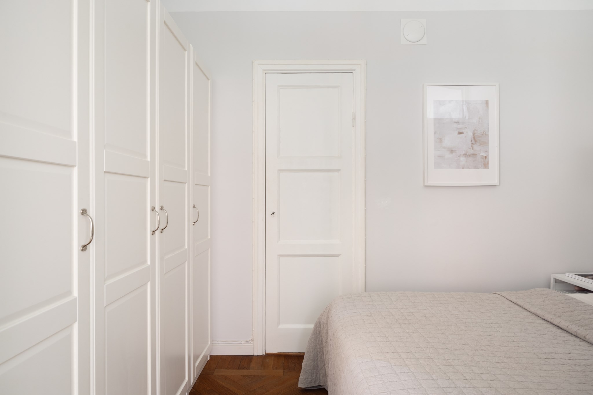 Den mysiga sovalkoven rymmer enkelt en större säng och erbjuder utmärkt förvaring i form av garderobsvägg samt klädkammare. I hallen finns dessutom plats för skrivbord – perfekt för hemmakontor eller studier. Vackra detaljer såsom fiskbensparkett, originaldetaljer och genomtänkt planlösning ger bostaden karaktär och själ.