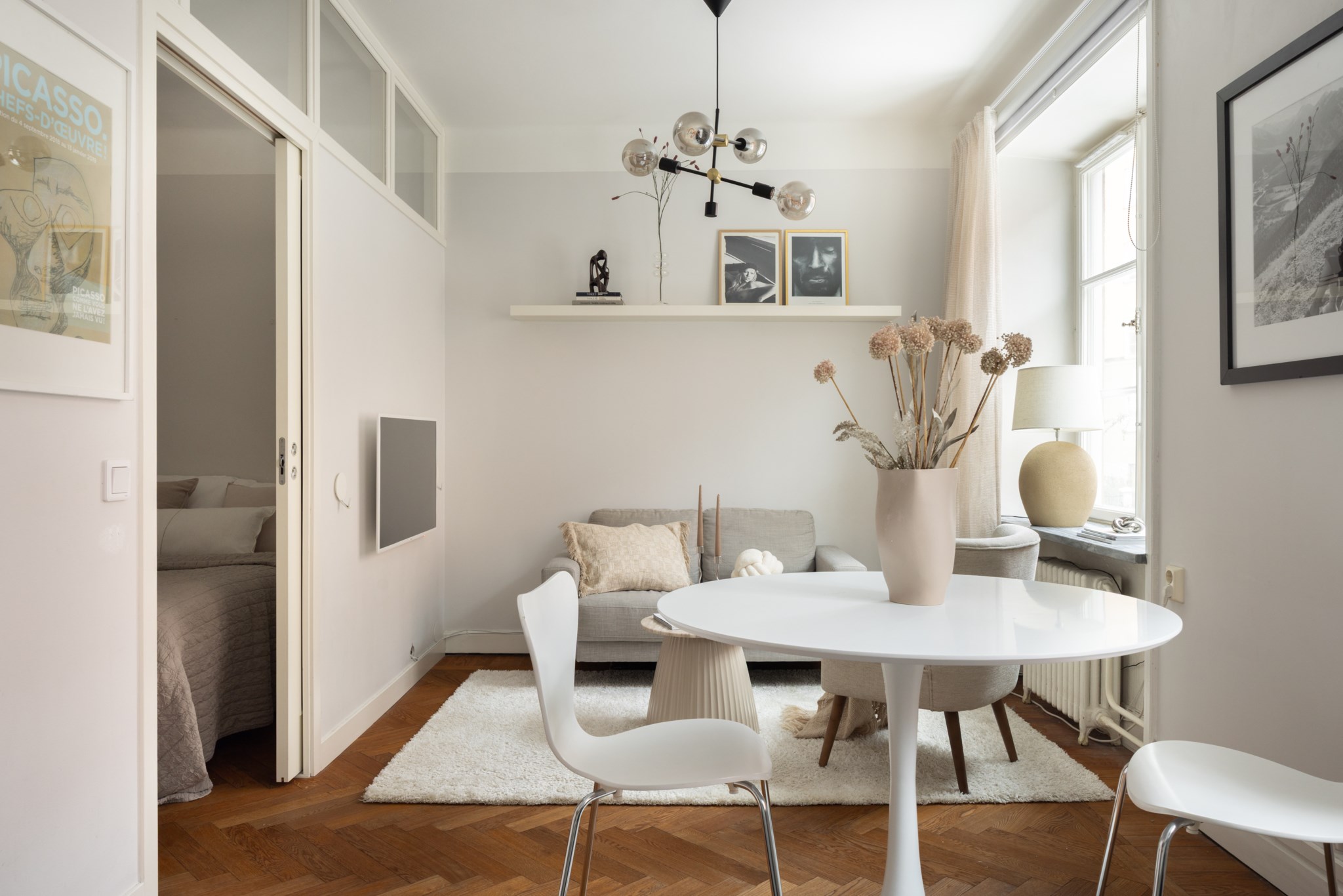 Välkommen till en mycket välplanerad och social bostad där ljus, rymd och charm samspelar på bästa sätt. De stora fönsterpartierna släpper in ett generöst ljusflöde som tillsammans med den höga takhöjden skapar en härligt luftig atmosfär.