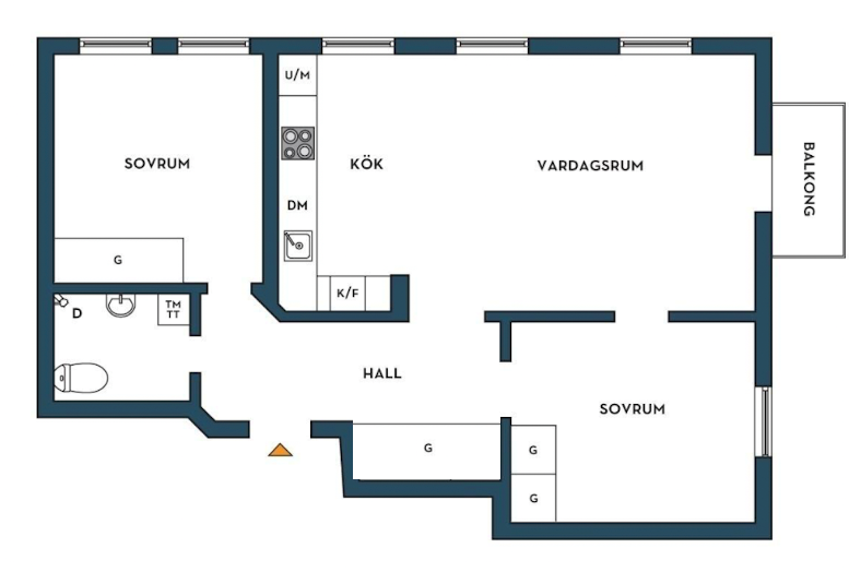Den öppna planlösningen mellan kök och vardagsrum skapar en social och inbjudande atmosfär – perfekt för både vardagsliv och middagsbjudningar. Köket är fullt utrustat med integrerade vitvaror, diskmaskin och vinkyl, vilket ger en känsla av lyx och genomtänkt design. Från vardagsrummet nås en härlig balkong i ett lugnt gårdsläge – en idealisk plats för morgonkaffet eller ett glas vin i kvällssolen.