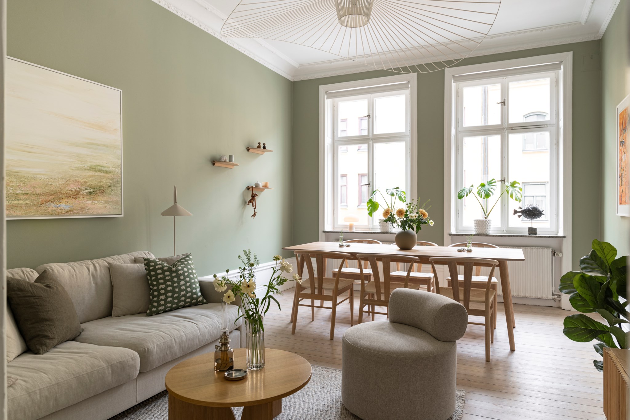 Redan vid första steget in möts du av en varm och inbjudande atmosfär där klassiska sekelskiftesdetaljer sätter tonen. Generös takhöjd, vackra originalgolv och stora fönsterpartier skapar ett fantastiskt ljusflöde och en känsla av rymd i hela bostaden. Här samsas charm och karaktär med stilrena materialval och genomtänkta lösningar.