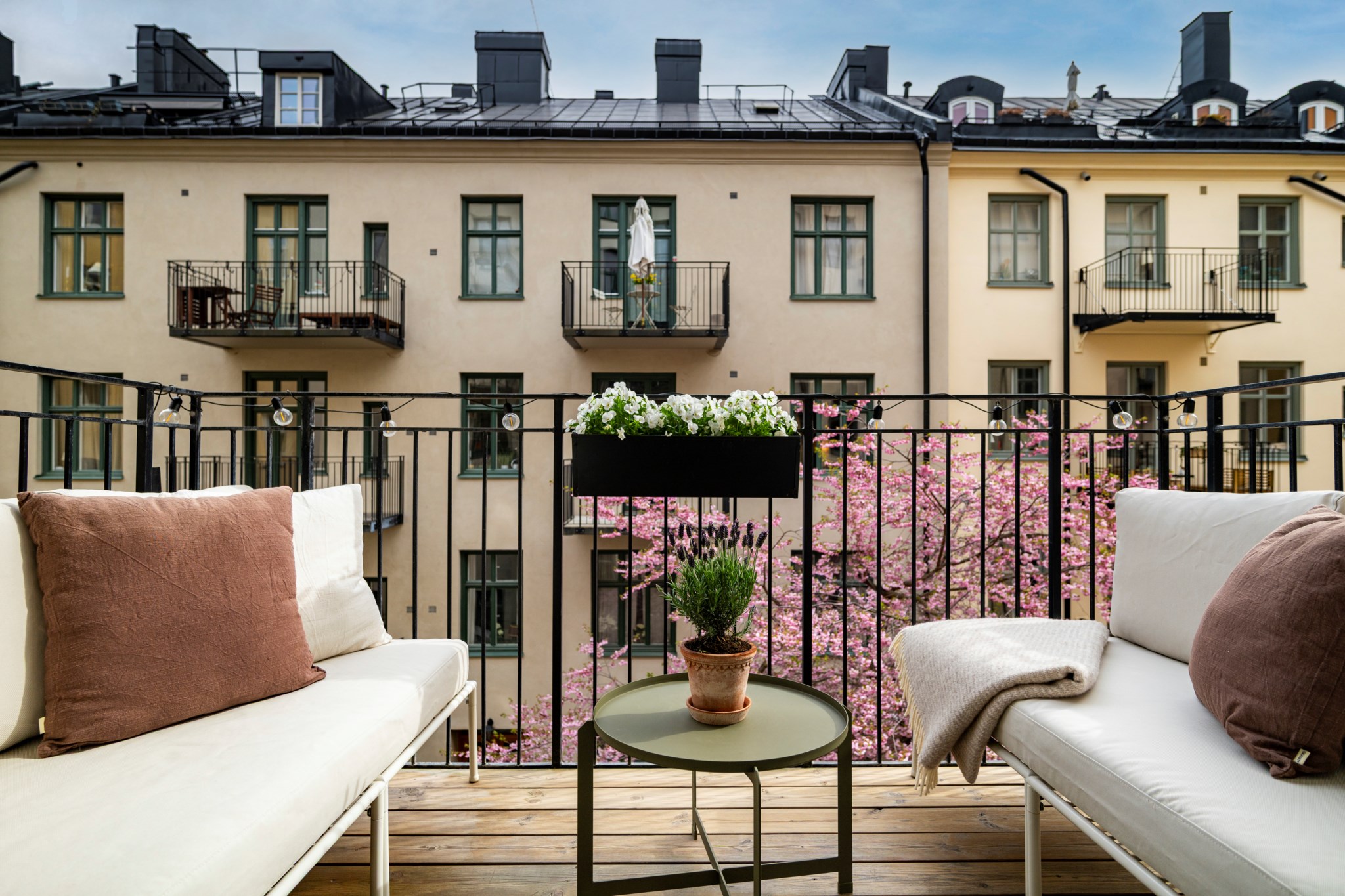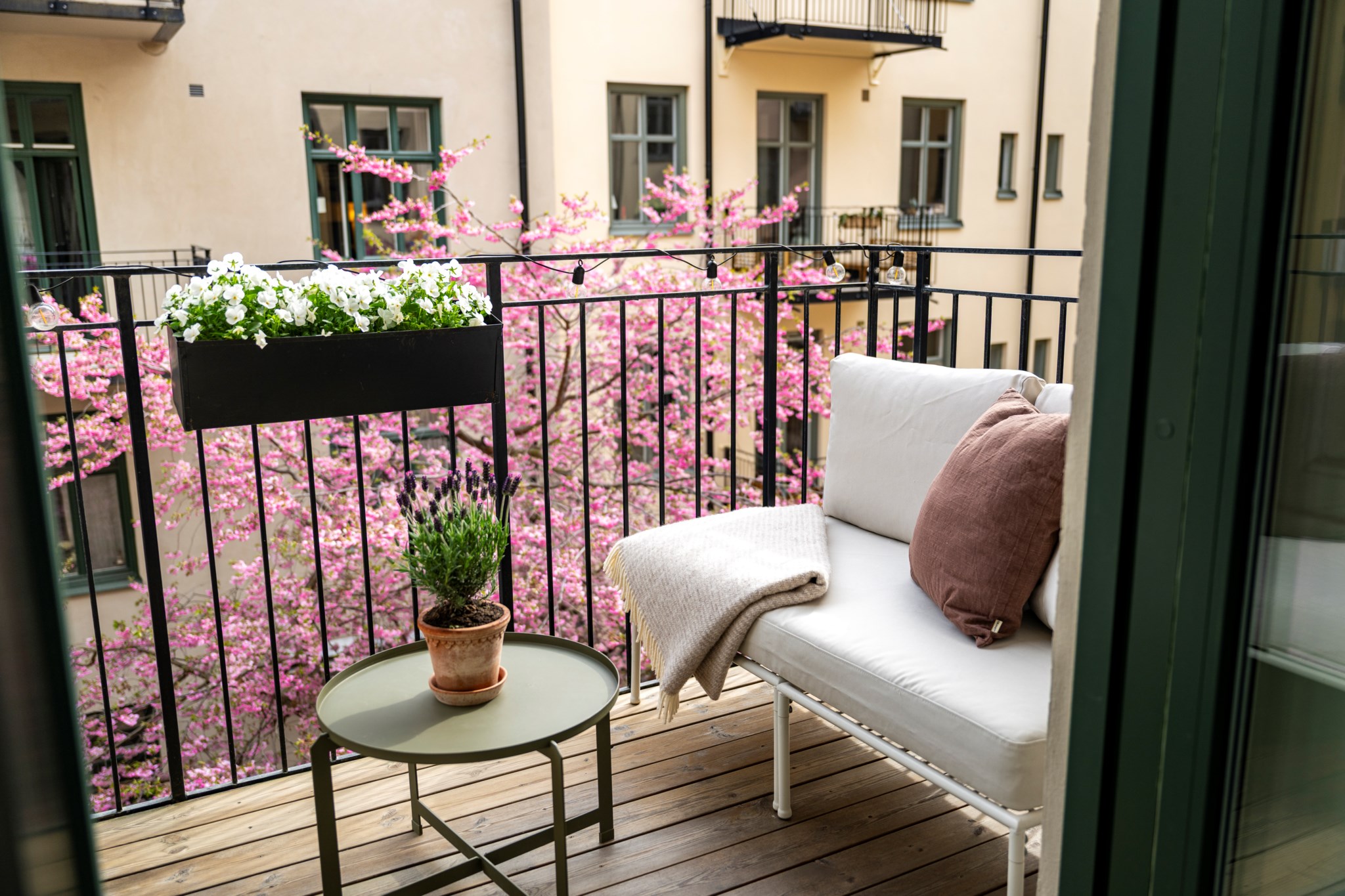 Till lägenheten hör en härlig balkong.