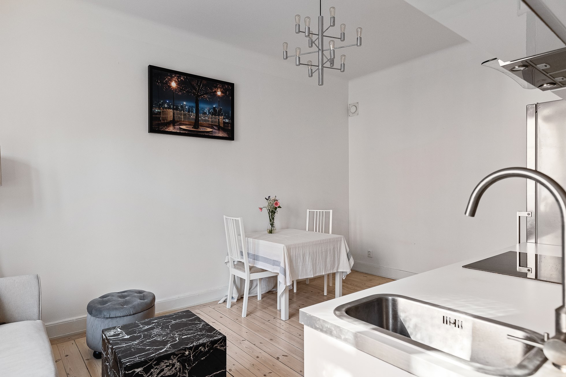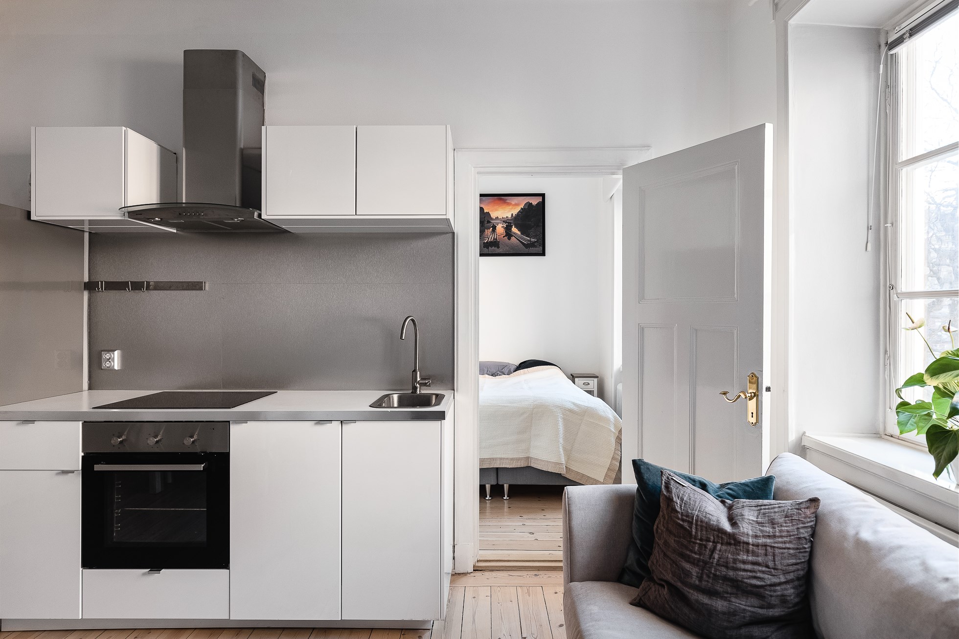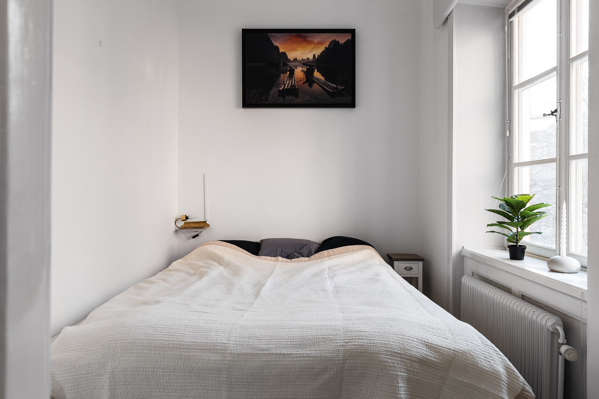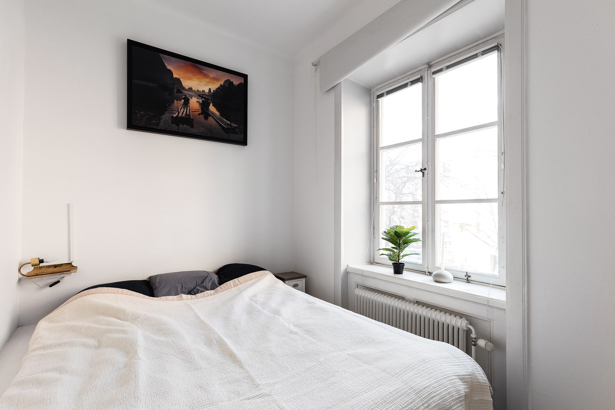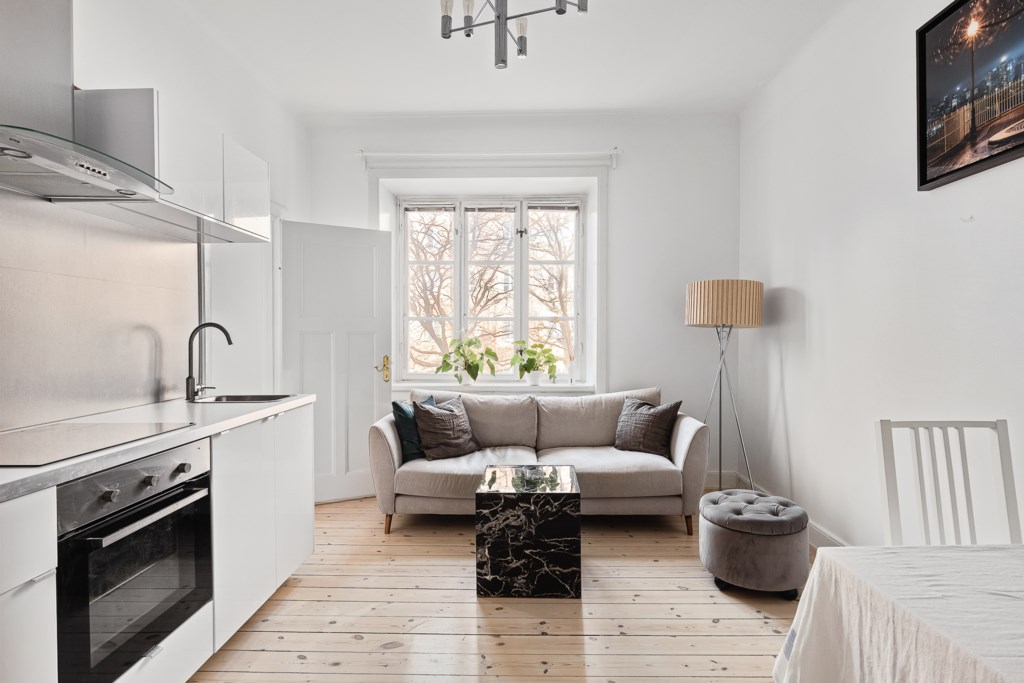 Lägenheten erbjuder ett vardagsrum med vackra trägolv, generös takhöjd på ca 3 m och fina spröjsade fönster. Ett kök med diskmaskin och ett rymligt stambytt badrum. Rogivande sovrum med plats för större säng (idag står det 1,60 säng). Här bor ni med ett bekvämt promenadavstånd till både Odenplan, S:t Eriksplan och Hagaparken. Gemensam balkong finns en halv trappa upp. Gott om förvaring via klädkammare och källarförråd. Bo ett stenkast från allt ni kan önska i form av kommunikationer, restauranger, matbutiker och grönområden. Uppgången till Citybanan/station Odenplan ligger precis runt hörnet och flygbussarna stannar alldeles i närheten.
