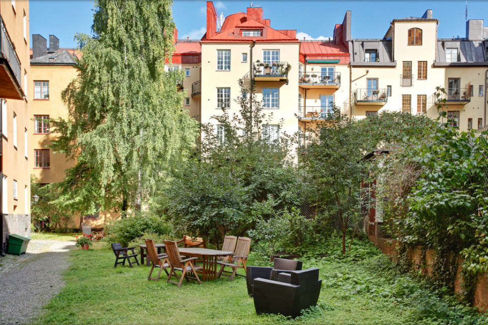 Föreningen har i övrigt inga större renoveringar planerade enligt styrelsen (kontrollerat 2026-02-03).GårdsplatsDet finns en trevlig innergård med utemöbler och grill för sköna sommarkvällar.ParkeringI området råder boendeparkering enligt Stockholm stads bestämmelser.Gemensamma utrymmen- Tre stycken gemensamma tvättstugor (Port B, D, och E). Bokning görs vid varje tvättstuga.