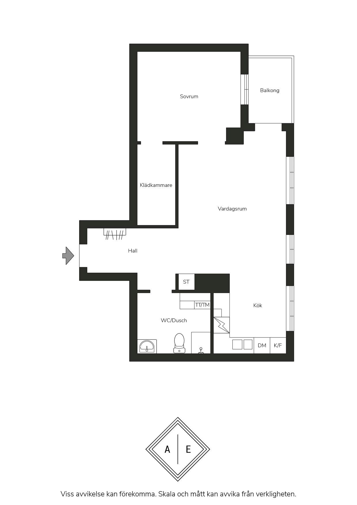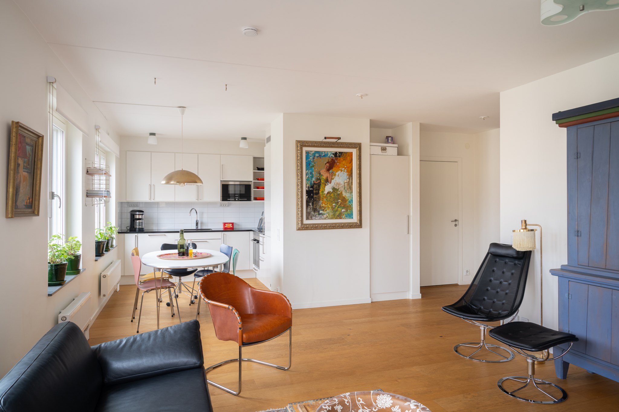 Bostaden erbjuder en öppen och social planlösning mellan kök och vardagsrum med 3 fönster i fil. Ett stor sovrum med gott om förvaring via klädkammare och badrum med tvättmaskin. Till lägenheten hör ett källarförråd.