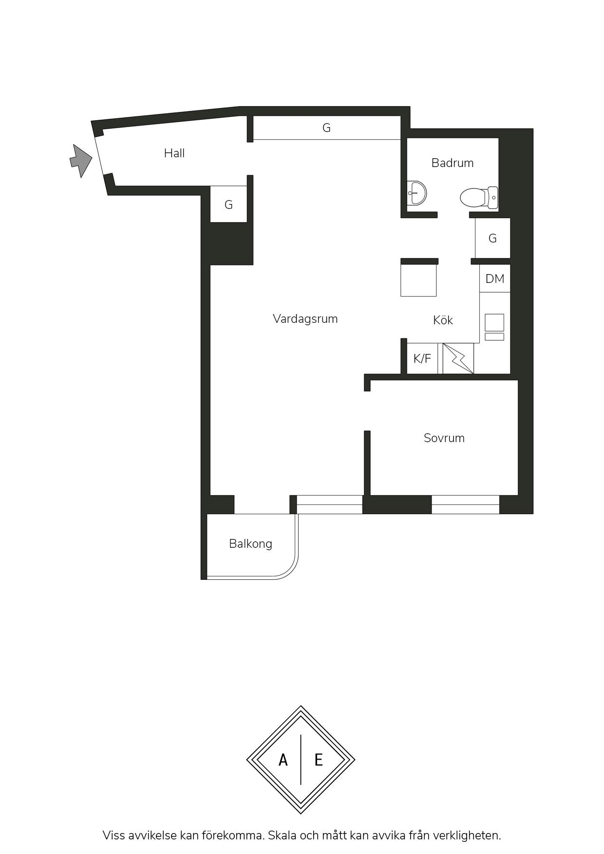 Välkomna till Disponentgatan 2 – en ljus och smart planerad 2 rok om 45 kvm med balkong i soligt läge och sjöutsikt.
