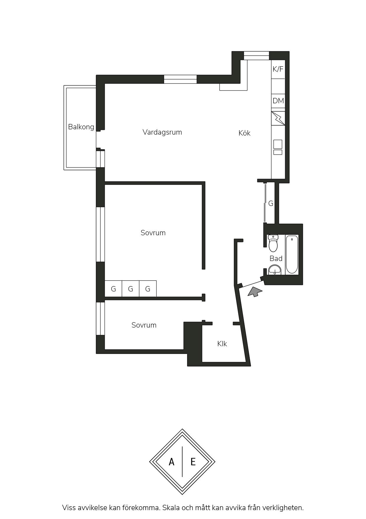 Lägenheten disponeras med två sovrum i separat och lugnt läge. Det större sovrummet rymmer enkelt dubbelsäng och förvaring, medan det andra passar utmärkt som barnrum, gästrum eller arbetsrum. Förvaringsmöjligheterna är mycket goda med flera garderober i lägenheten samt två tillhörande förråd, vilket bidrar till ett ordnat och funktionellt boende.
