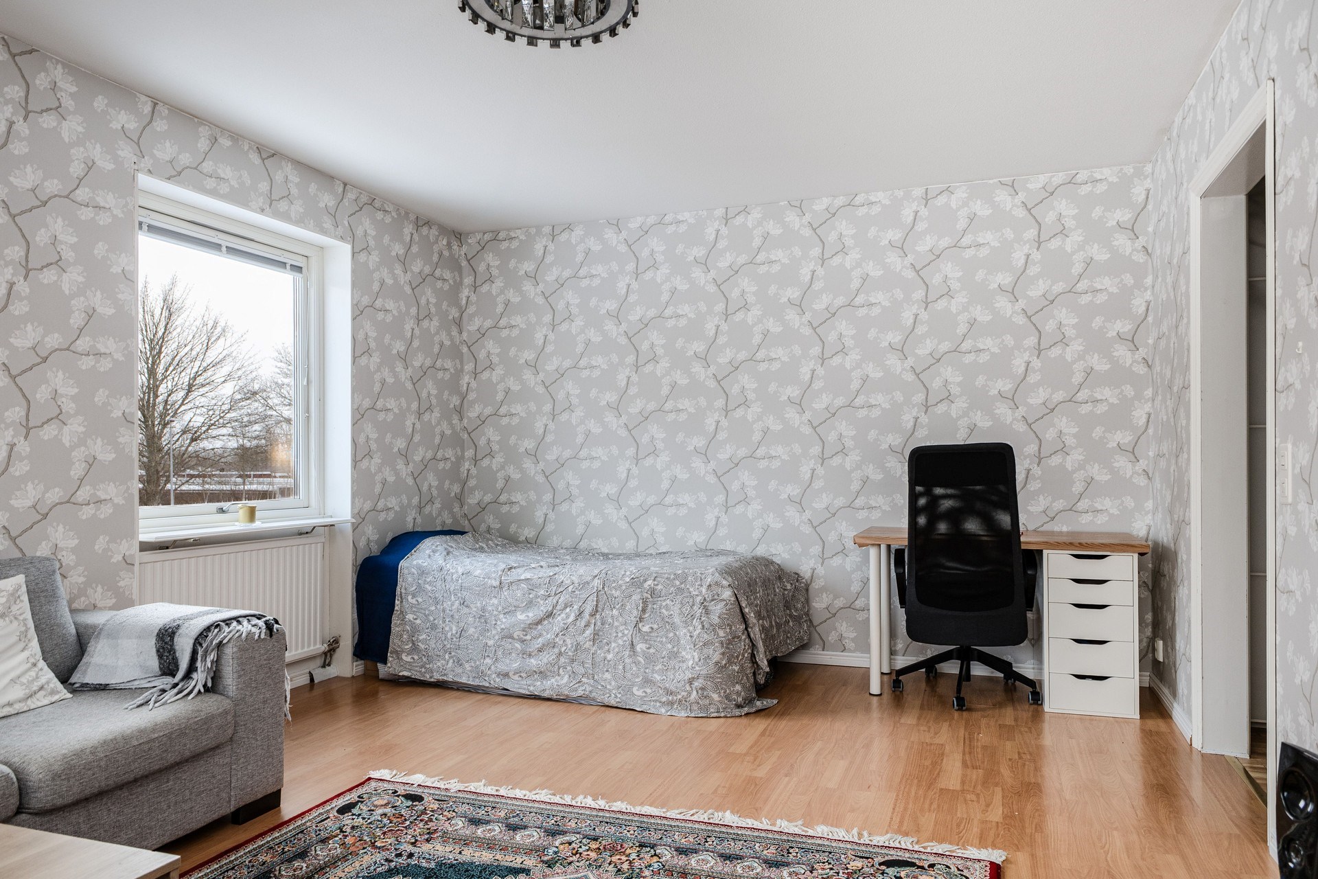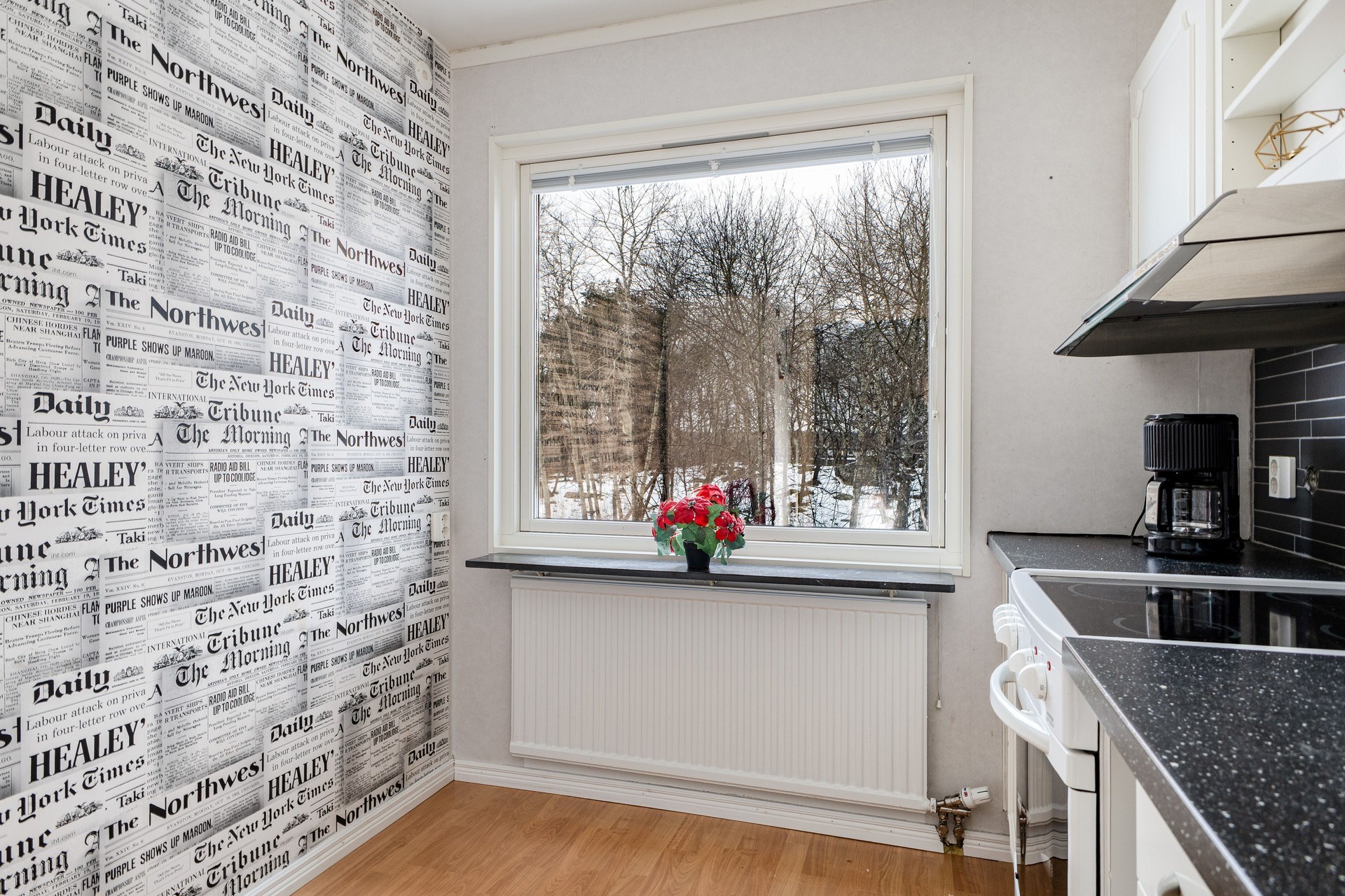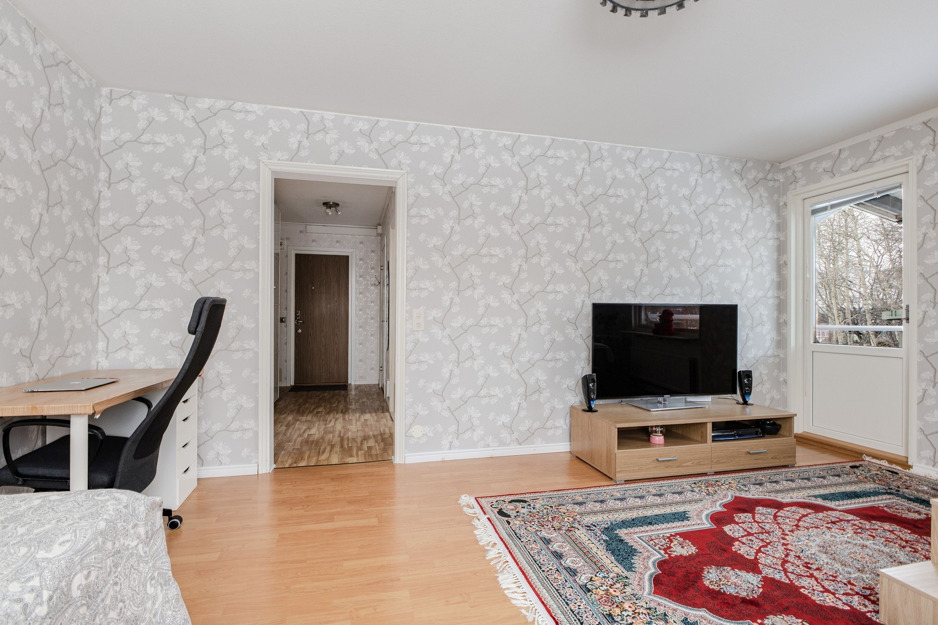 Välkommen till denna trivsamma och välskötta etta om 40,5 kvm med ett insynsskyddat hörnläge som ger både ljus och en härlig känsla av rymd. Bostaden erbjuder ett generöst och lättmöblerat allrum med direkt utgång till balkongen, där du kan njuta av ett lugnt läge och utsikt mot grönskande omgivningar.