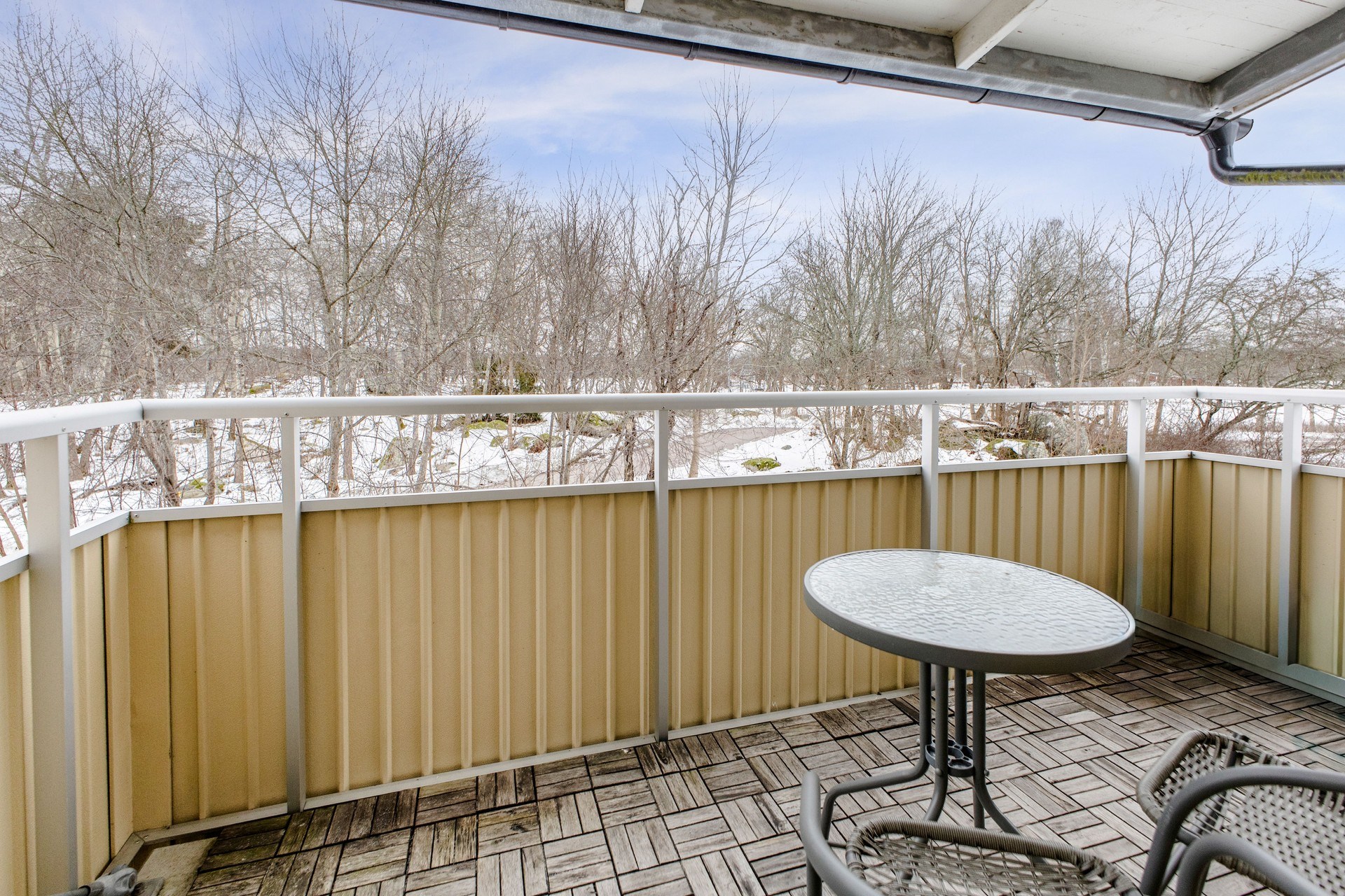 Rymlig balkong i fritt läge. Gott om plat till stolar och bord.