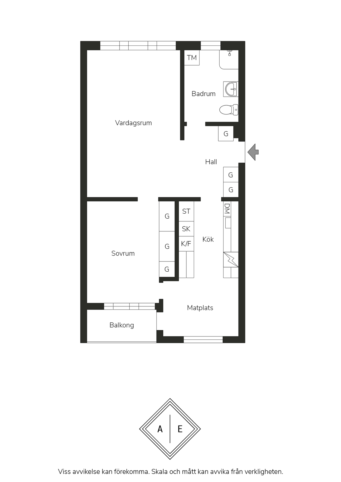 Här möts du av ett hem med ett fantastiskt ljusinsläpp från två väderstreck. Ljuset rör sig genom rummen och skapar en luftig och behaglig känsla hela dagen. Planlösningen är genomtänkt och varje yta används på ett smart sätt, vilket gör att bostaden känns större än vad kvadratmetrarna antyder.