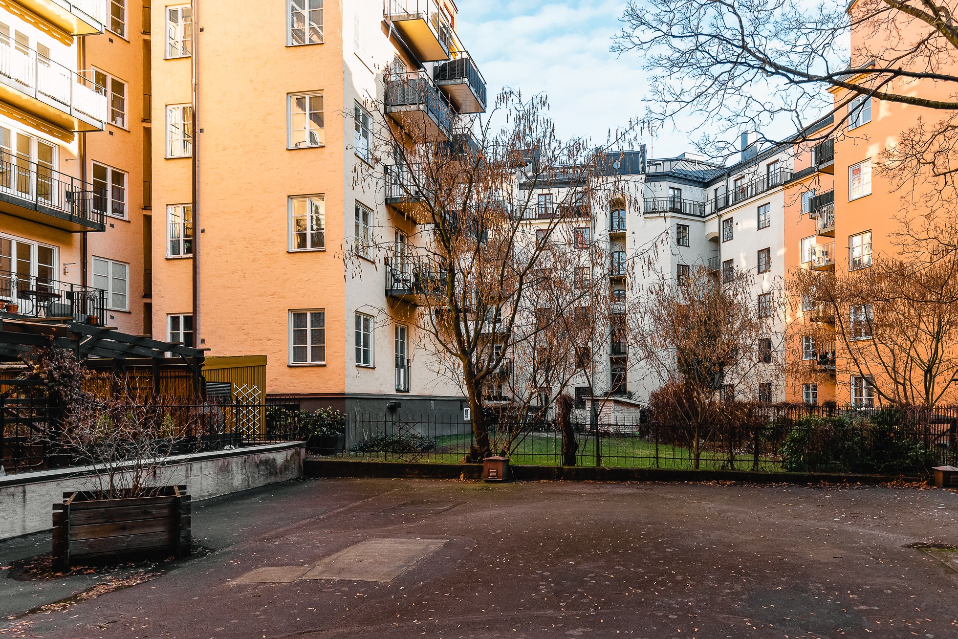 2024 Genomförd OVKGårdsplatsFöreningen har en gemensam innergård med utemöbler och grillmöjligheter.ParkeringI området råder boendeparkering enligt Stockholm stads bestämmelser.Gemensamma utrymmen- Tvättstuga i källarplan med två tvättmaskiner, en torktumlare och ett torkskåp