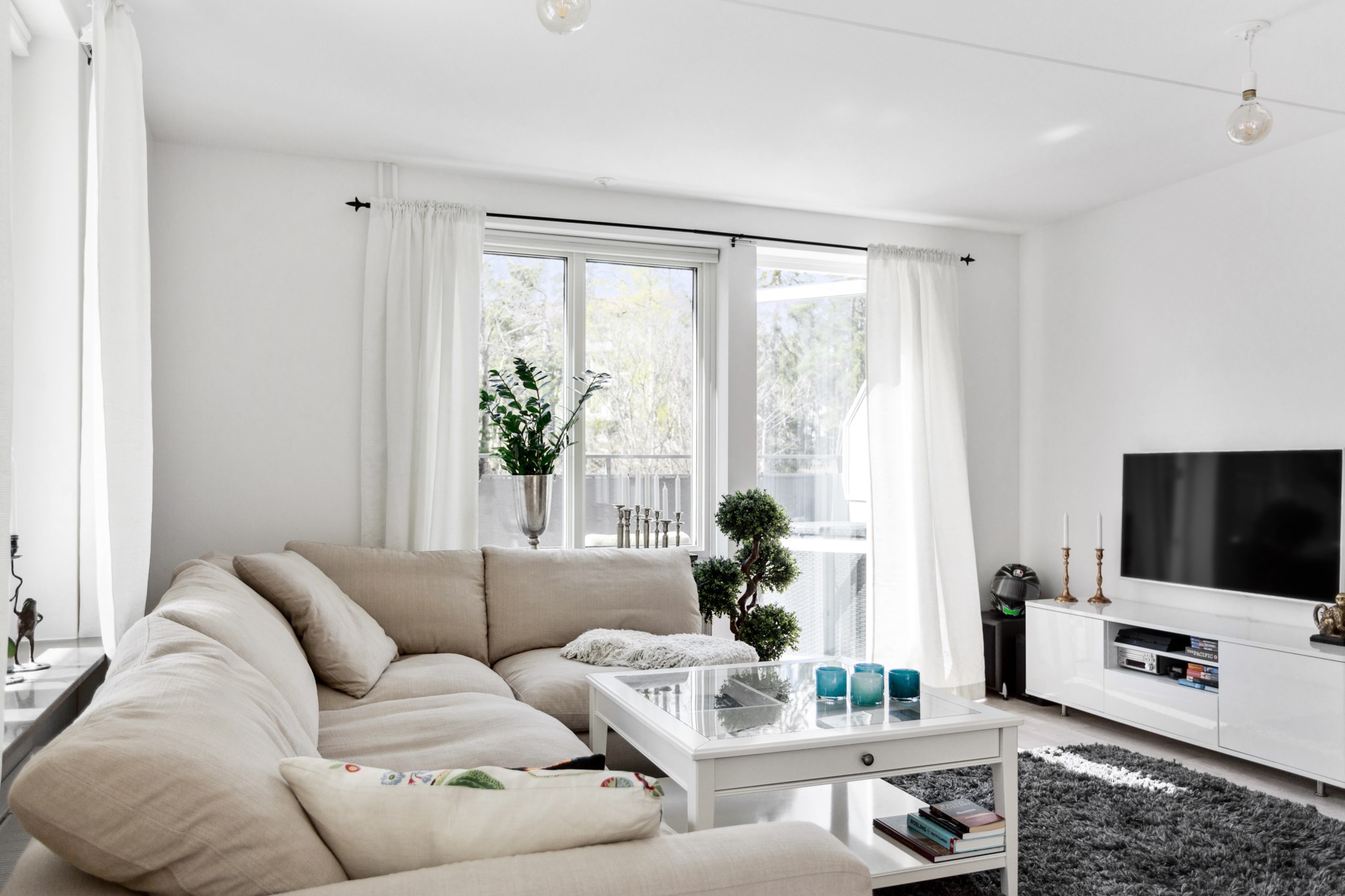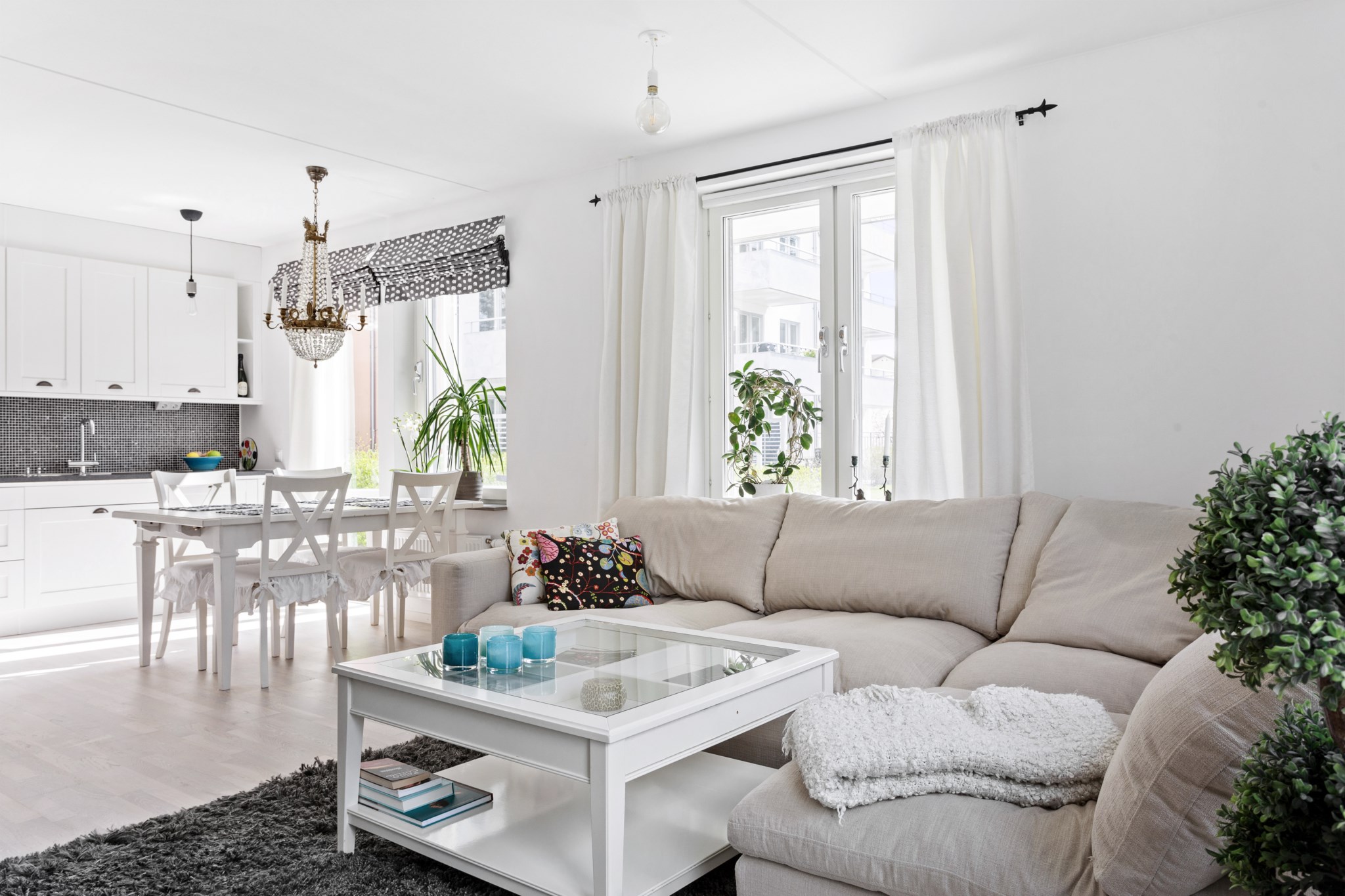 VARDAGSRUM | Rakt fram i hallen nås det lättmöblerade och sociala vardagsrummet. Här finner du plats för soffgrupp, soffbord och mediamöbel. Solens strålar går genom stora fönsterpartier i två väderstreck och gör att både vardagsrum och kök genomsyras ljus.