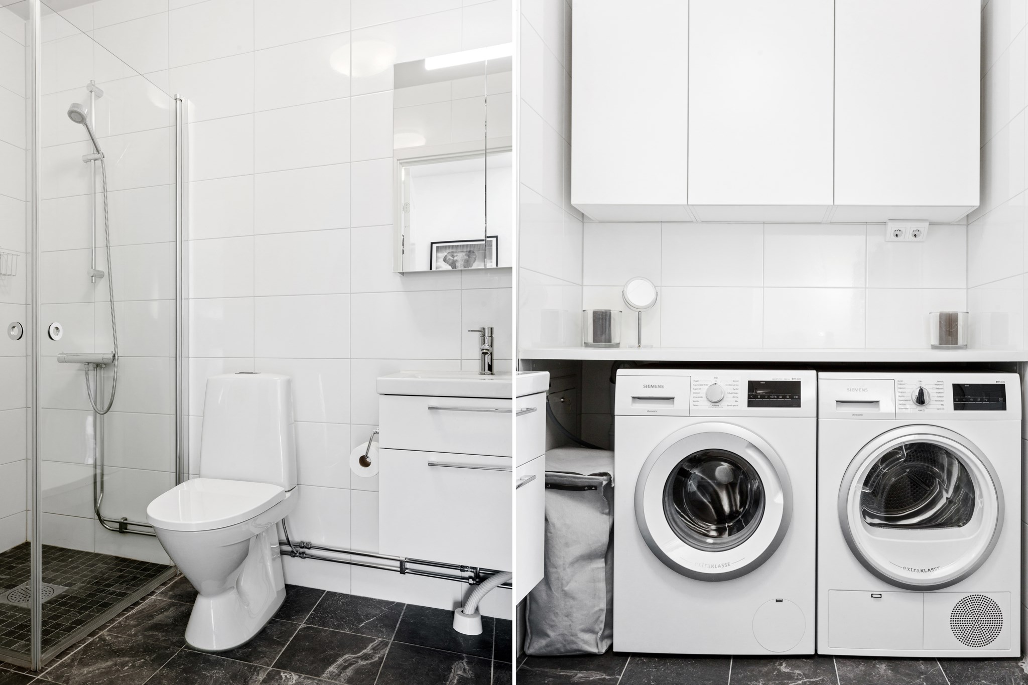 • Helkaklat badrum med tvättmaskin & torktumlare