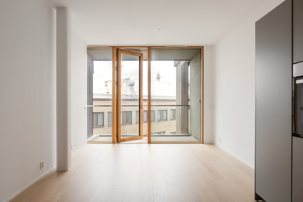 Till bostaden hör en mysig balkong med plats för balkongmöbler och en lugn utsikt över den grönskande innergården.