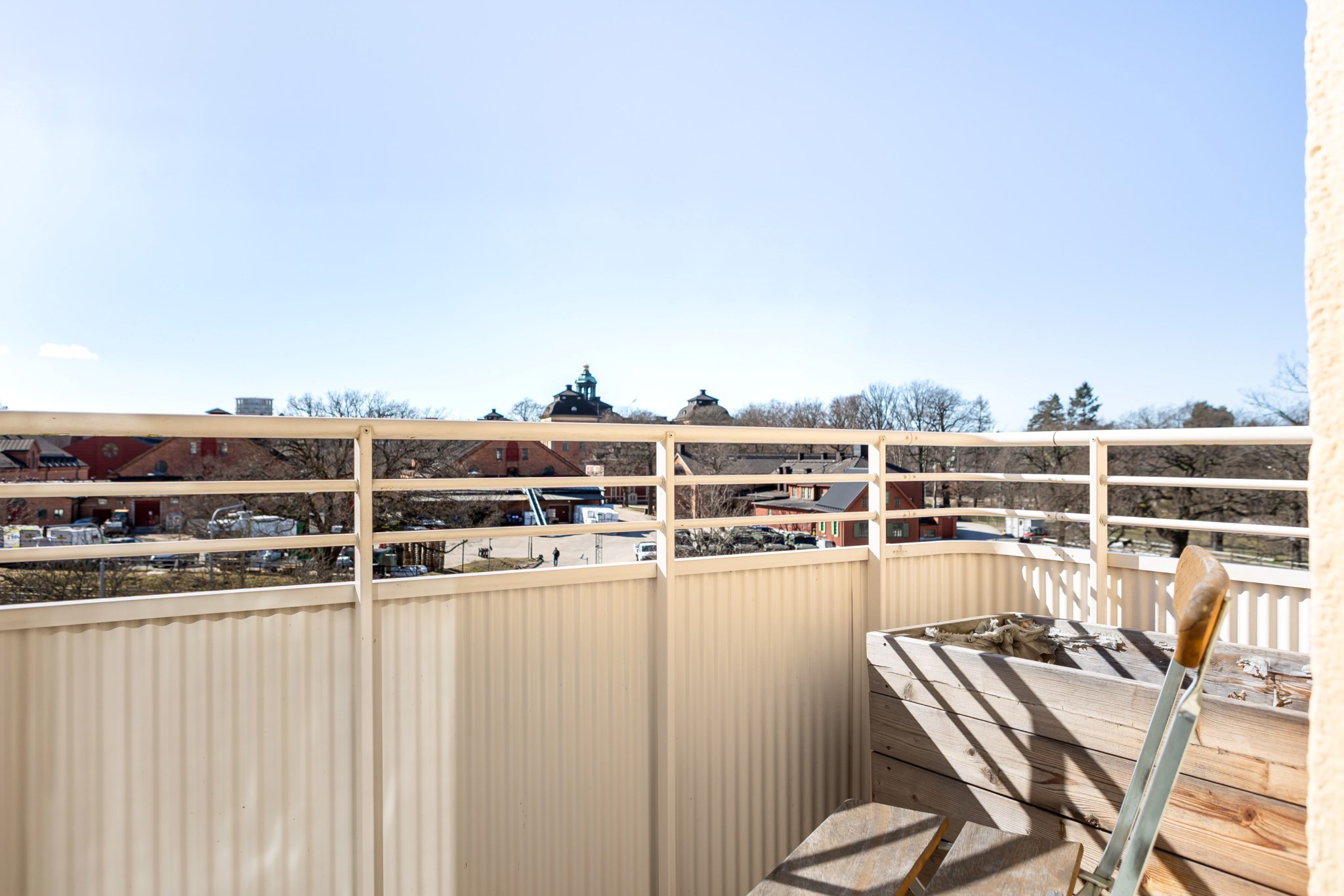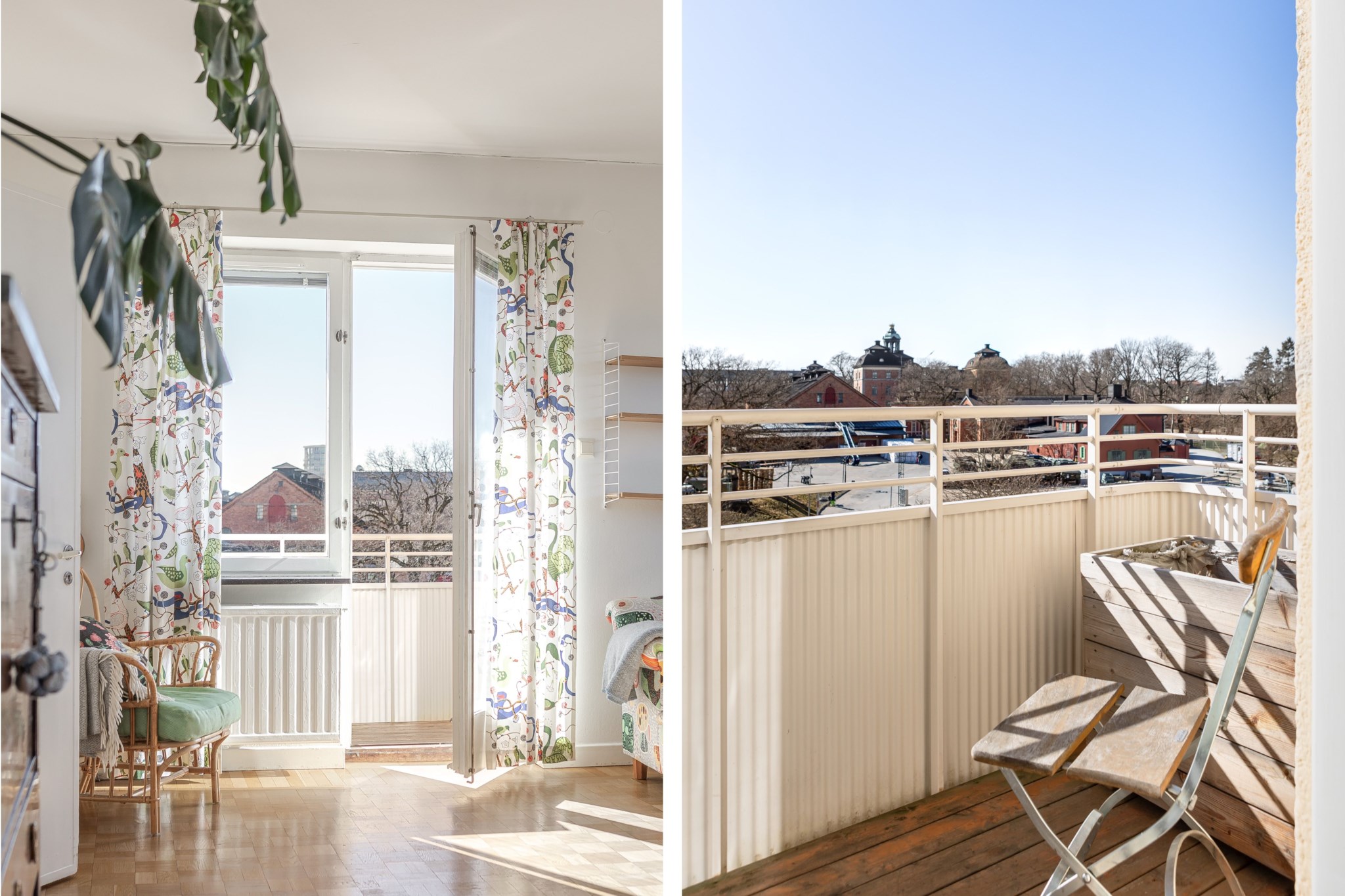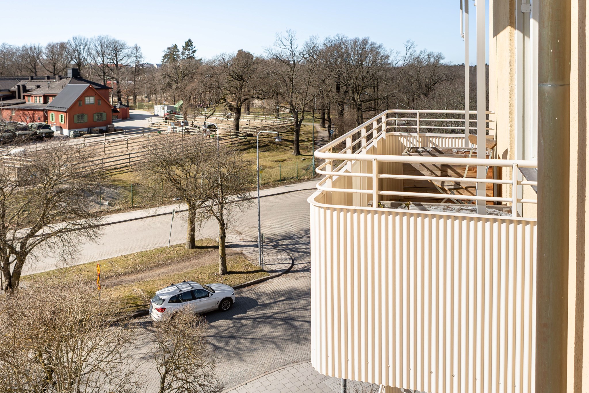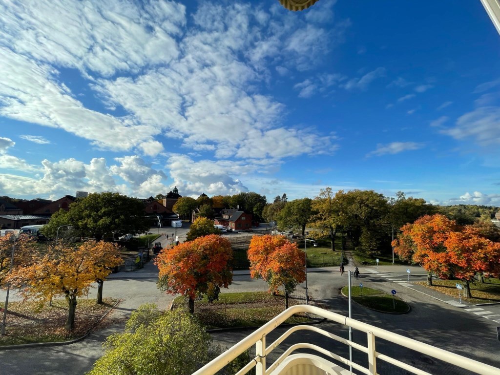 Balkongen är en av bostadens absoluta höjdpunkter. Här kan du njuta av solen större delar av dagen med en grönskande utsikt över de vidsträckta grönområdena, samtidigt som Stockholms puls finns promenad bort. Ett unikt tillfälle att kombinera storstadens bekvämligheter med naturnära lugn.