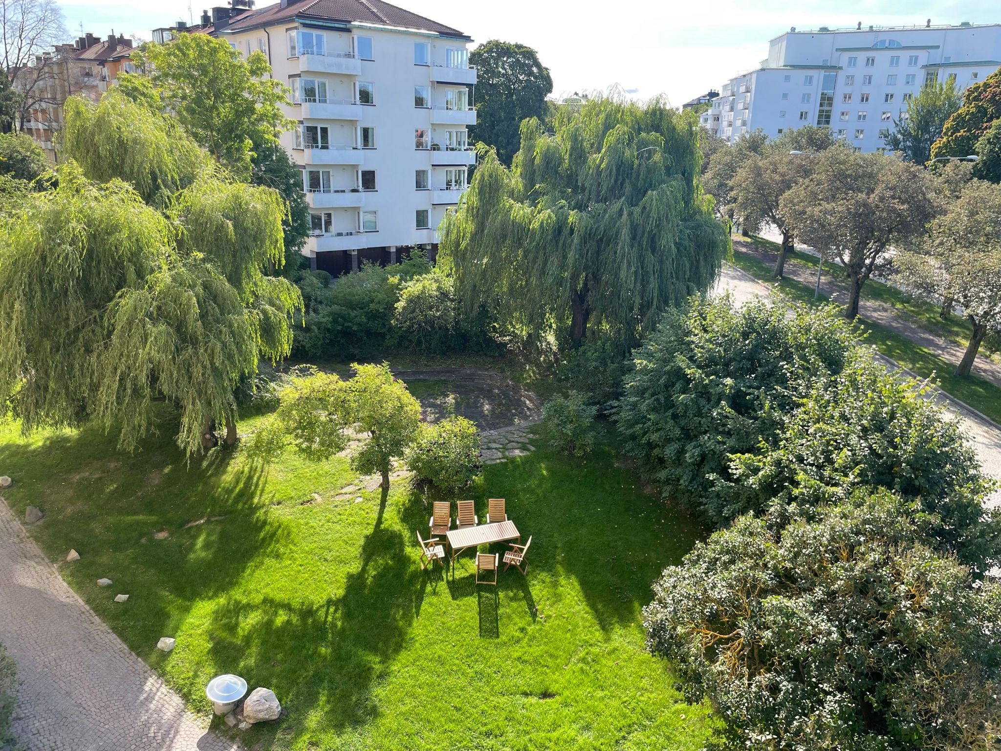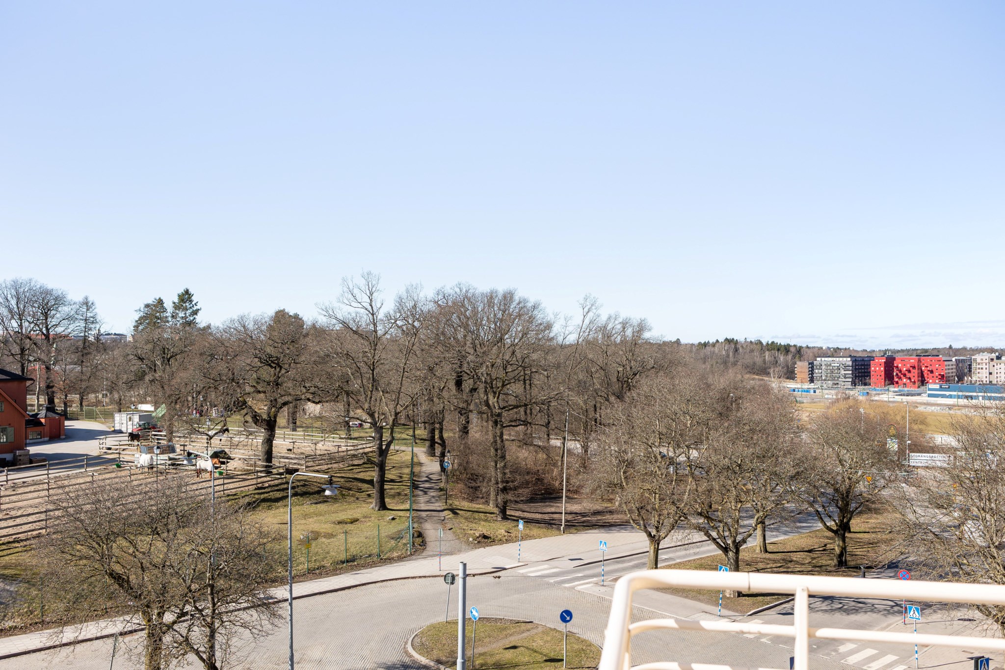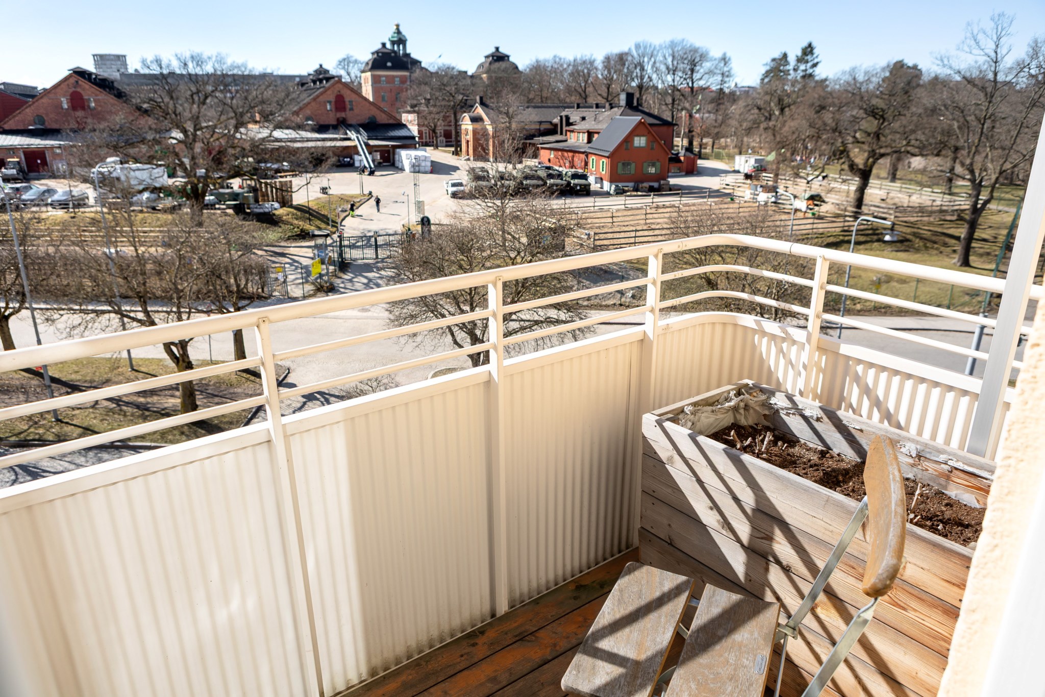 Balkongen är en av bostadens absoluta höjdpunkter. Här kan du njuta av solen större delar av dagen med en grönskande utsikt över de vidsträckta grönområdena, samtidigt som Stockholms puls finns promenad bort. Ett unikt tillfälle att kombinera storstadens bekvämligheter med naturnära lugn.