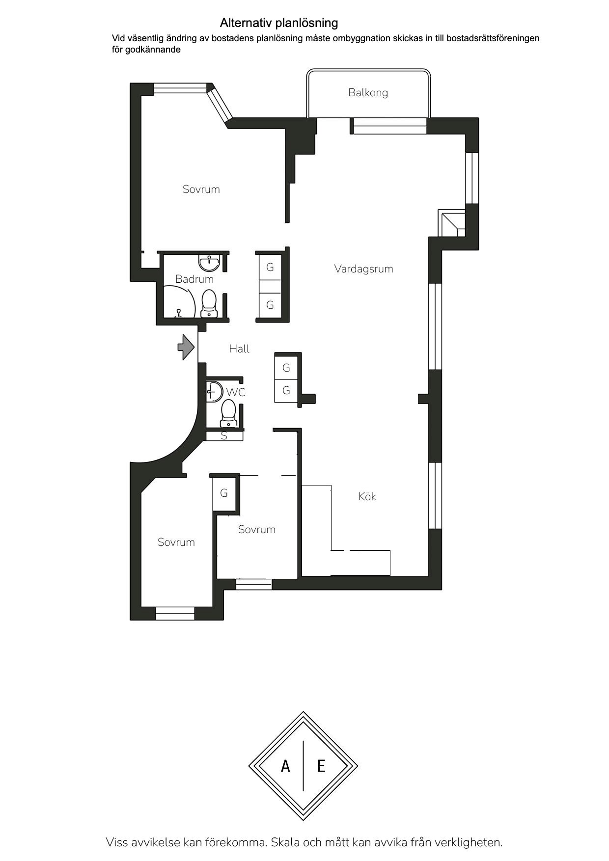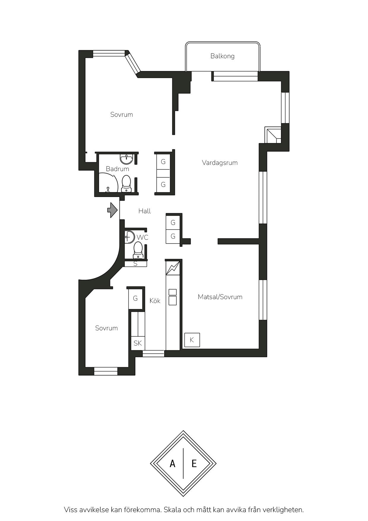 Lägenheten är genomgående tilltänkt layout i gavelläge med flera fönster i fil som gör att lägenheten badar i ljus. Det finns idag två bra sovrum med möjlighet att bygga om till 3 sovrum. Det finns både badrum med wc samt separat gäst-wc för extra komfort i vardagen för hela familjen.