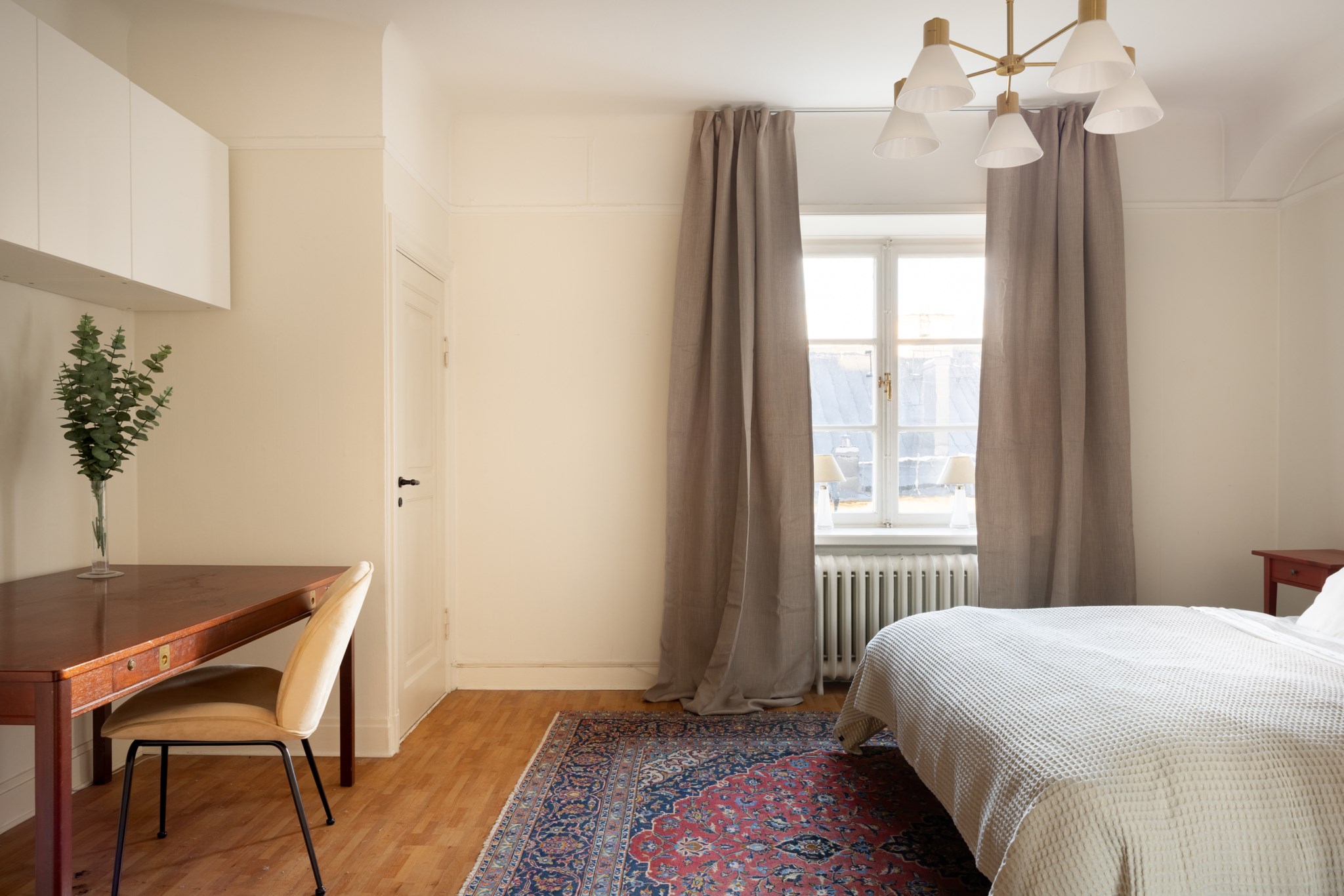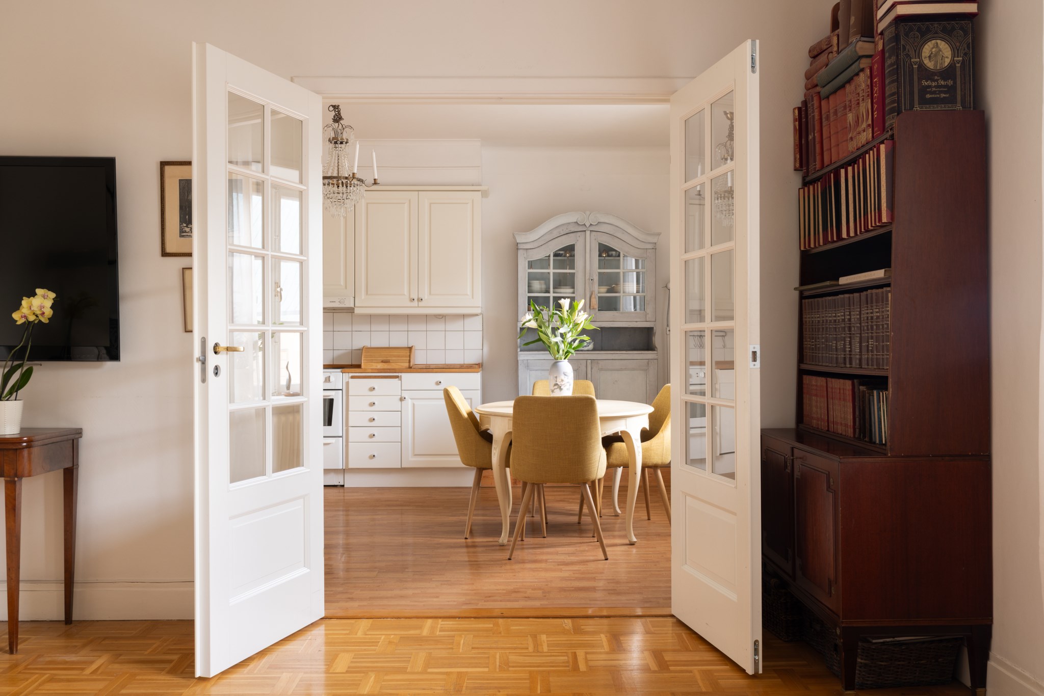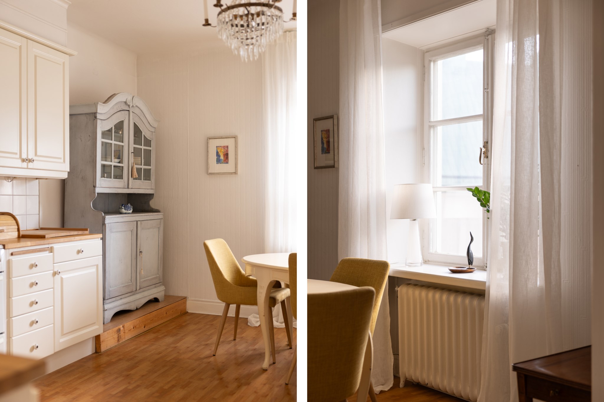 Elegant 20-talsvåning med spröjsade fönster, stora sällskapsytor och lugnt gårdsläge