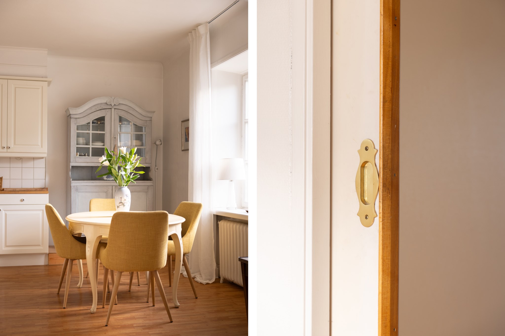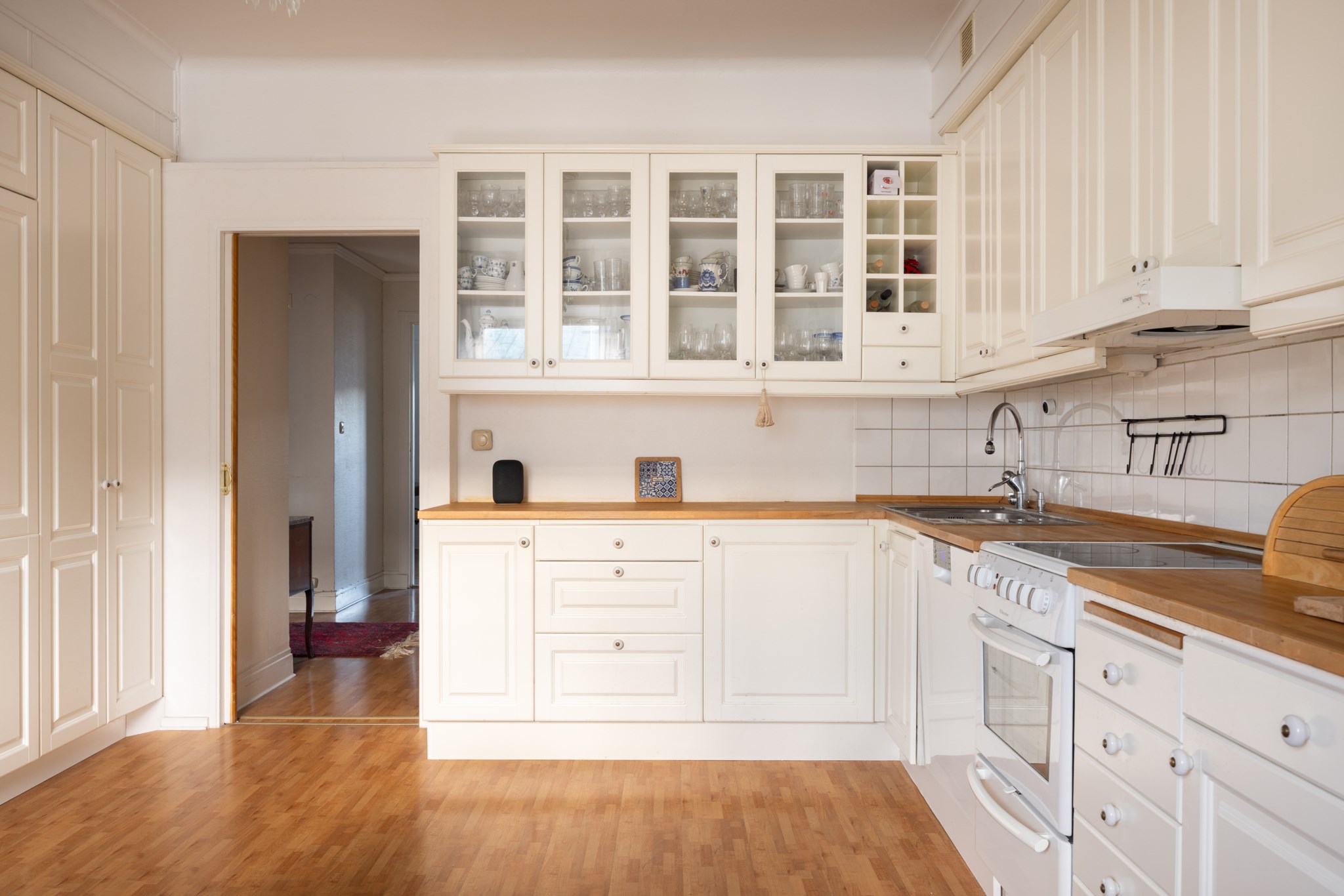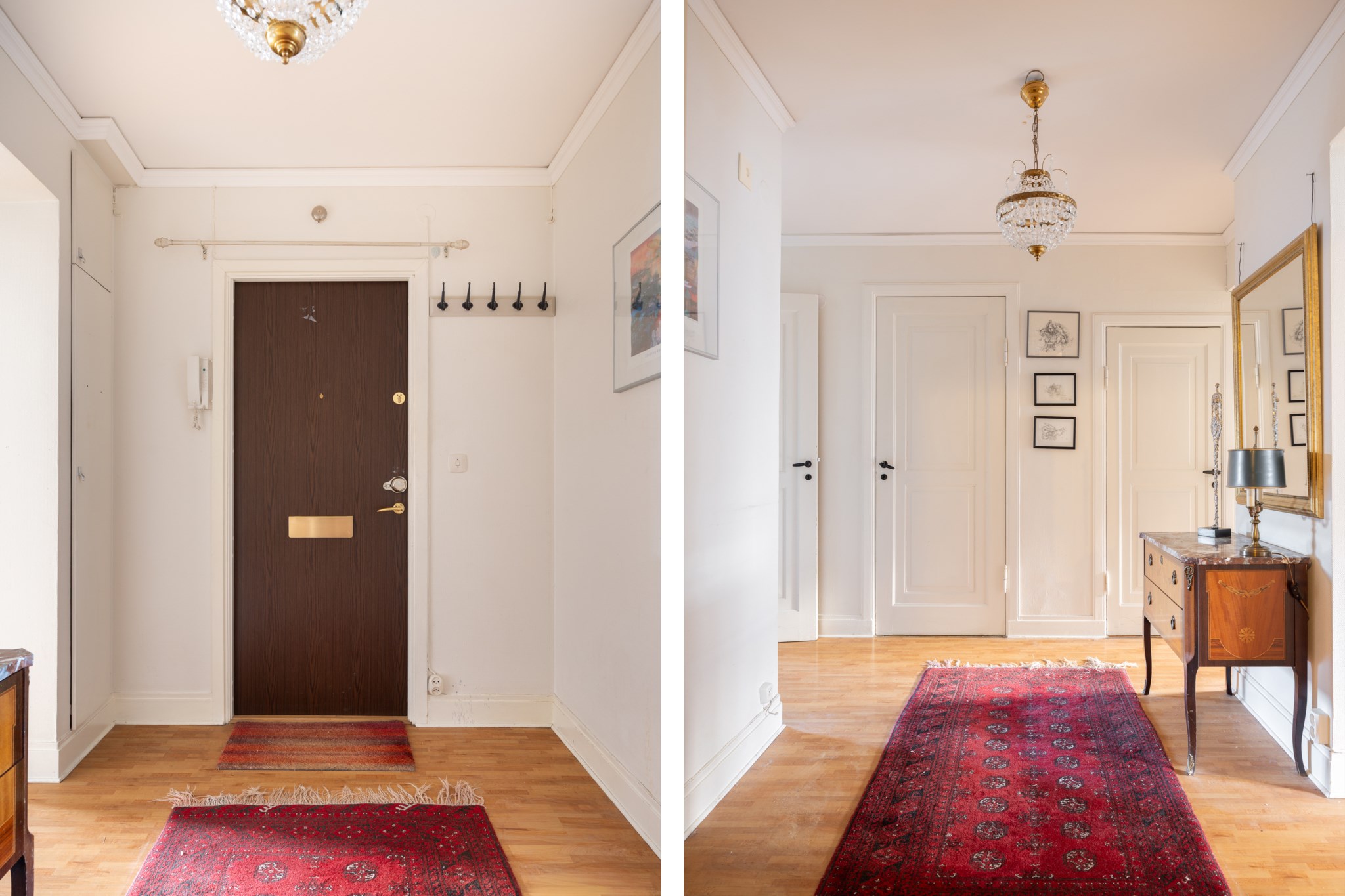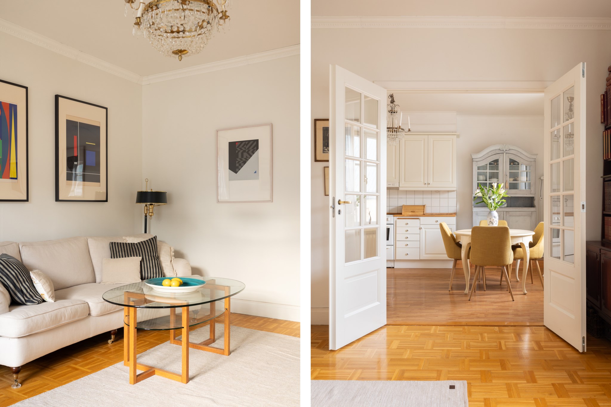 Välkommen till en fantastisk våning på attraktiva Eriksbergsgatan 30, med entré även från Hammargatan 2. Här möts klassisk 1920-talscharm och modern funktion i en genomgående tvåa om hela 80 kvm. Lägenheten präglas av vackra spröjsade fönster i två väderstreck och tidstypiska detaljer som spegeldörrar, stuckaturer och parkettgolv. De stora sociala ytorna vetter mot gatan – ett luftigt vardagsrum och ett väl tilltaget kök som inbjuder till middagar och umgänge. Från sovrummet har du en rogivande vy över en lummig innergård – helt utan insyn. Flertalet bevarade originalgarderober erbjuder praktisk förvaring med charm, och badrummet är helkaklat i tidlöst vitt kakel – ett harmoniskt inslag som kompletterar bostadens klassiska stil. Här bor du med en känsla av elegans, ljus och hemtrevnad – i ett vackert 1920-talshus med historia och själ.