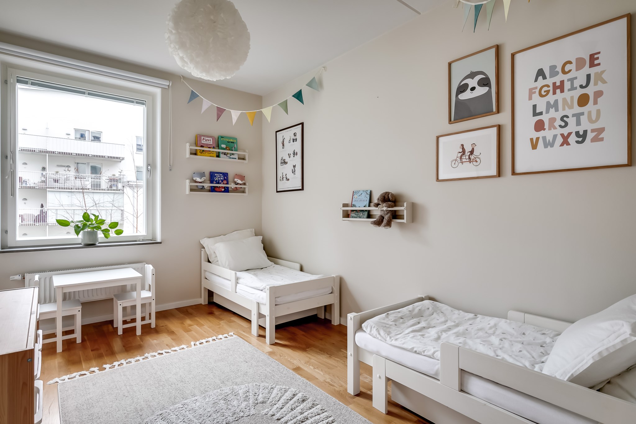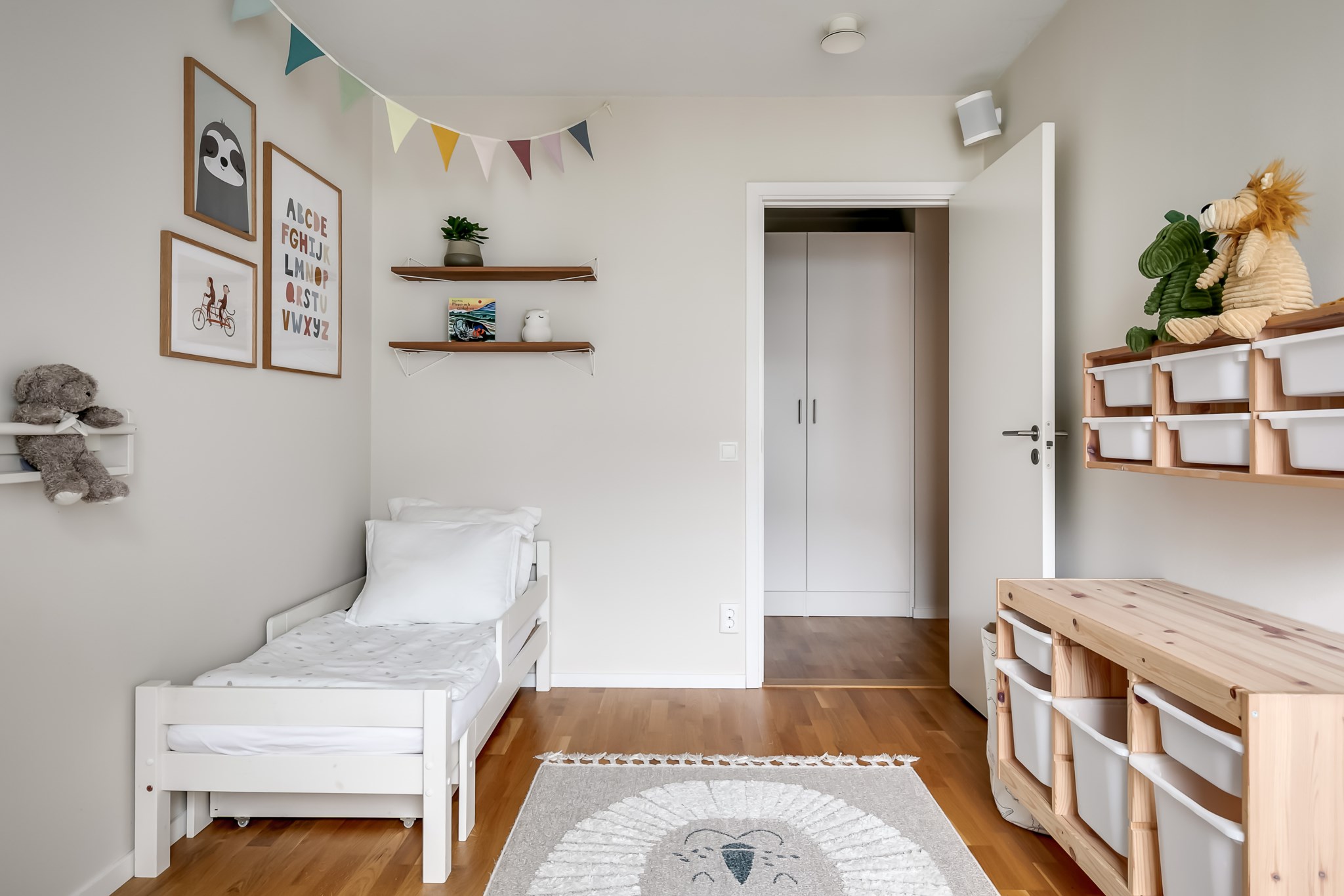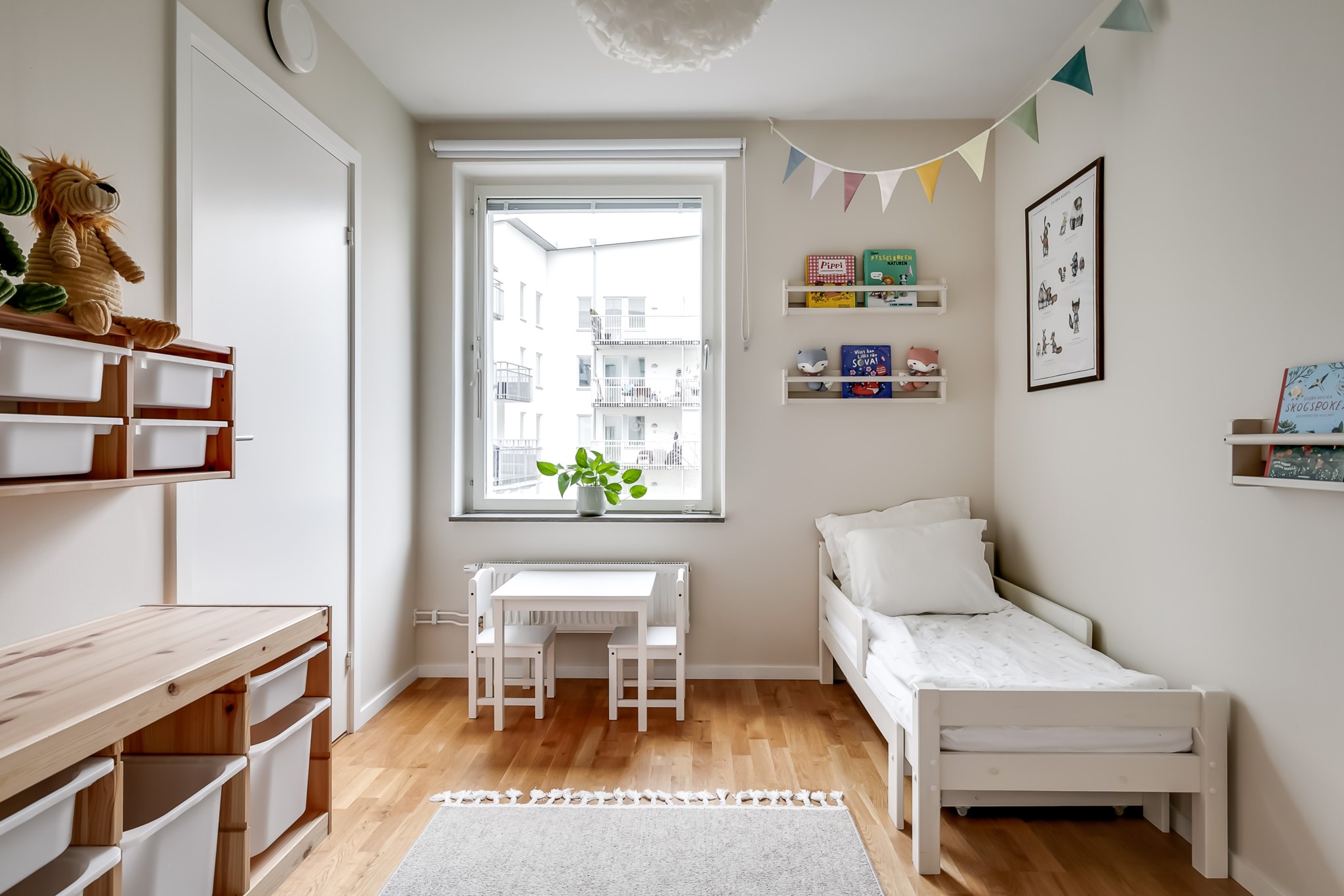 Mysigt sovrum som i dagsläget nyttjas som barnrum och bjuder på ett fint ljusinsläpp samt utsikt över den lugna innergården. Rummet erbjuder plats för säng, sängbord och ytterligare möblemang efter behov. Tillhörande klädkammare ger praktisk och lättillgänglig förvaring. Ljusmålade ytskikt och parkettgolv.