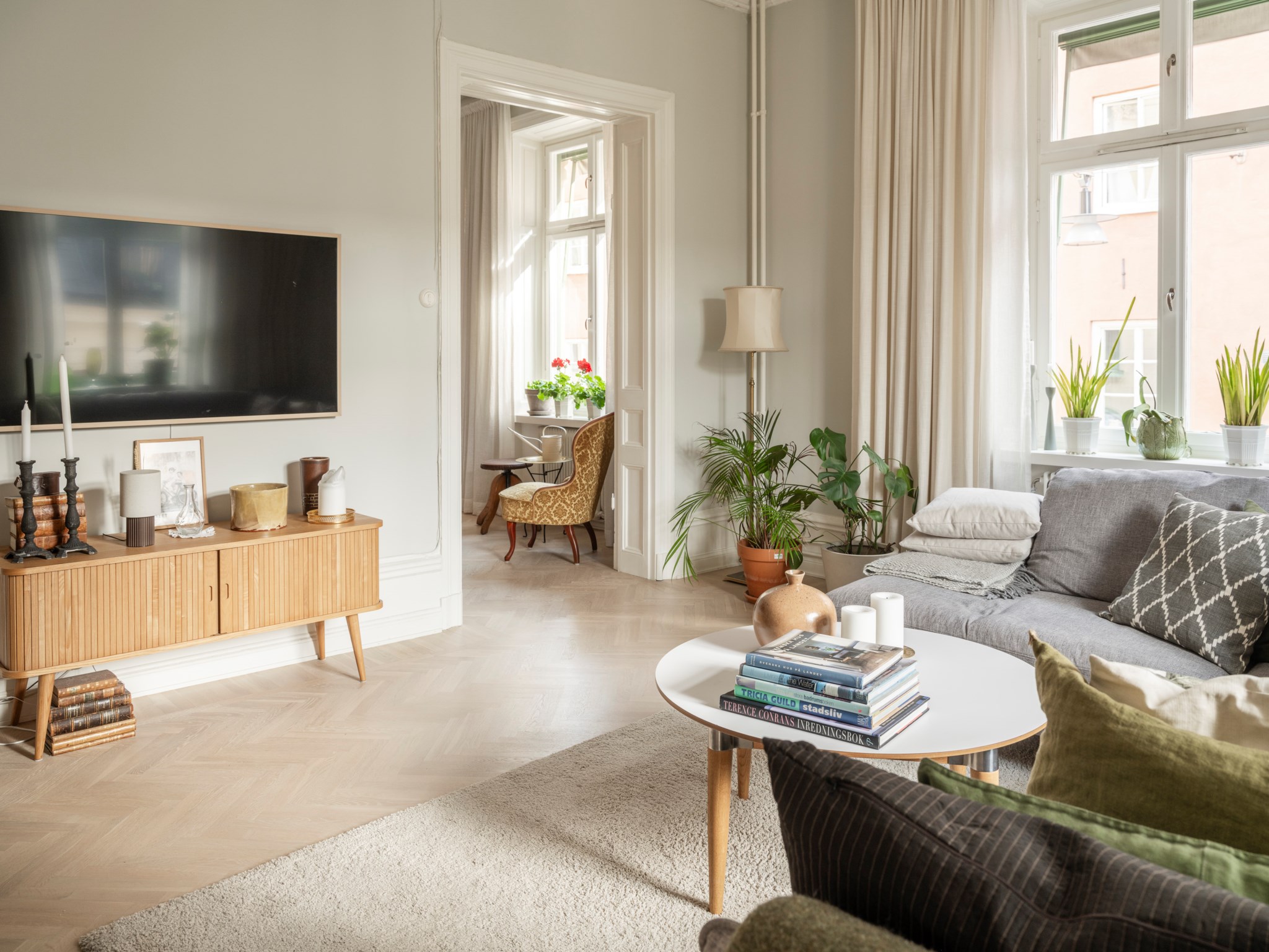 Högt upp på anrika Kvarnberget, strax ovanför Mariatorget, finner du denna sekelskiftespärla som tilltalar även den mest kräsne. Här möts charm, elegans och funktion i en harmonisk helhet. Bostaden erbjuder en flexibel planlösning med möjlighet att skapa 4 rum och samtidigt behålla två WC. De tidstypiska attributen är många – generös takhöjd, vackra stuckaturer och dekorativa takrosetter. Här finns dessutom två fungerande kakelugnar som förstärker den klassiska känslan, samtidigt som bostadens sociala disposition skapar ett hem perfekt för både vardag och umgänge.